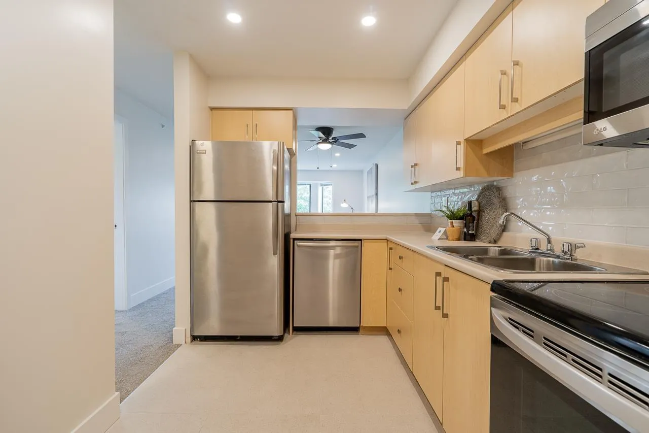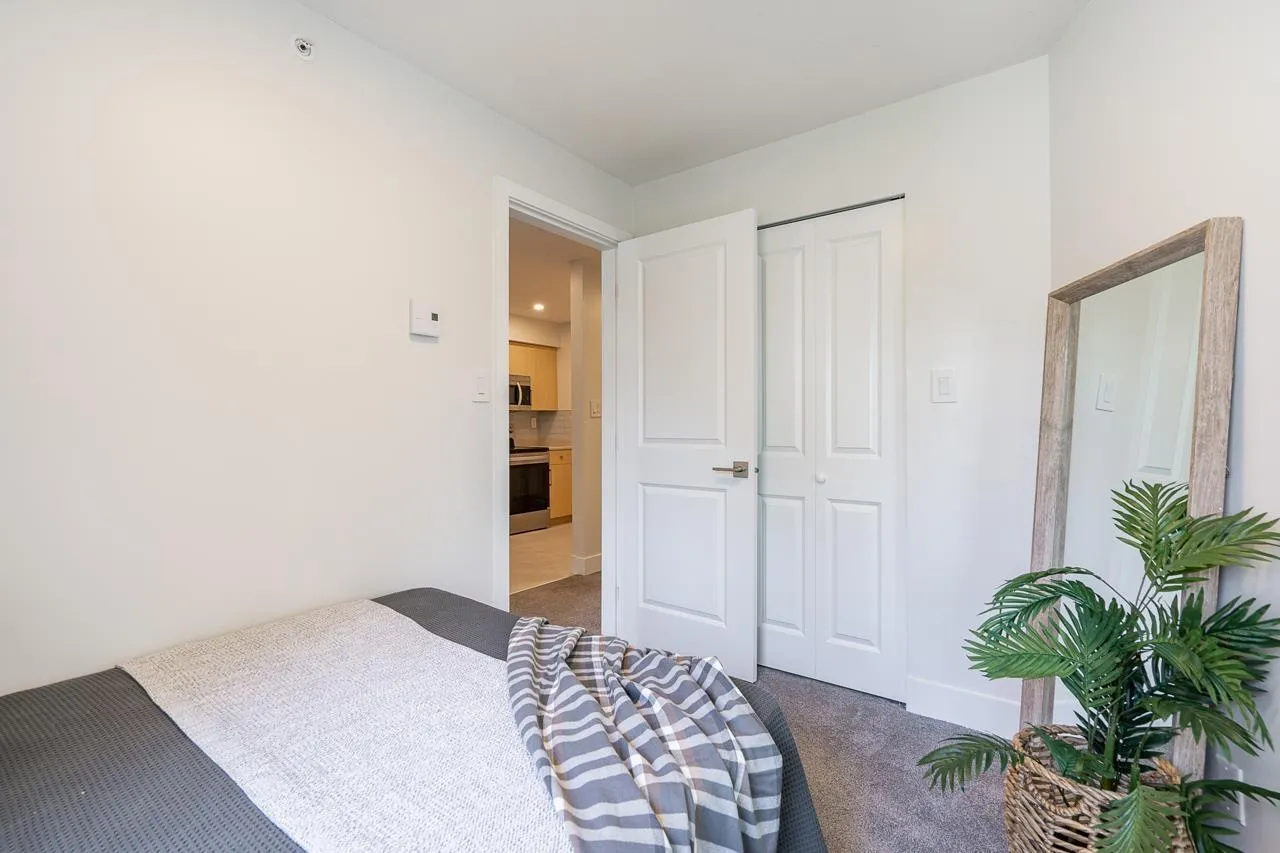 Welcome to this one of a kind top-floor condo with numerous upgrades. Step inside to discover a modern and inviting atmosphere, featuring new carpet, fresh paint, and a completely renovated bathroom. The bathroom boasts a tiled shower, modern fixtures, a light-up LED mirror, and heated floors. The kitchen has been upgraded with modern appliances, a new backsplash, and tile flooring. The upgraded wall features throughout add a touch of elegance to the space. Step outside to a spacious covered balcony, perfect for relaxing or entertaining. Conveniently located near shopping, schools, and transit, this condo offers easy accessibility. It also includes tow parking spots, a storage unit. Don't miss the opportunity to own this stylish and convenient condo with desirable upgrades. (id:27476)