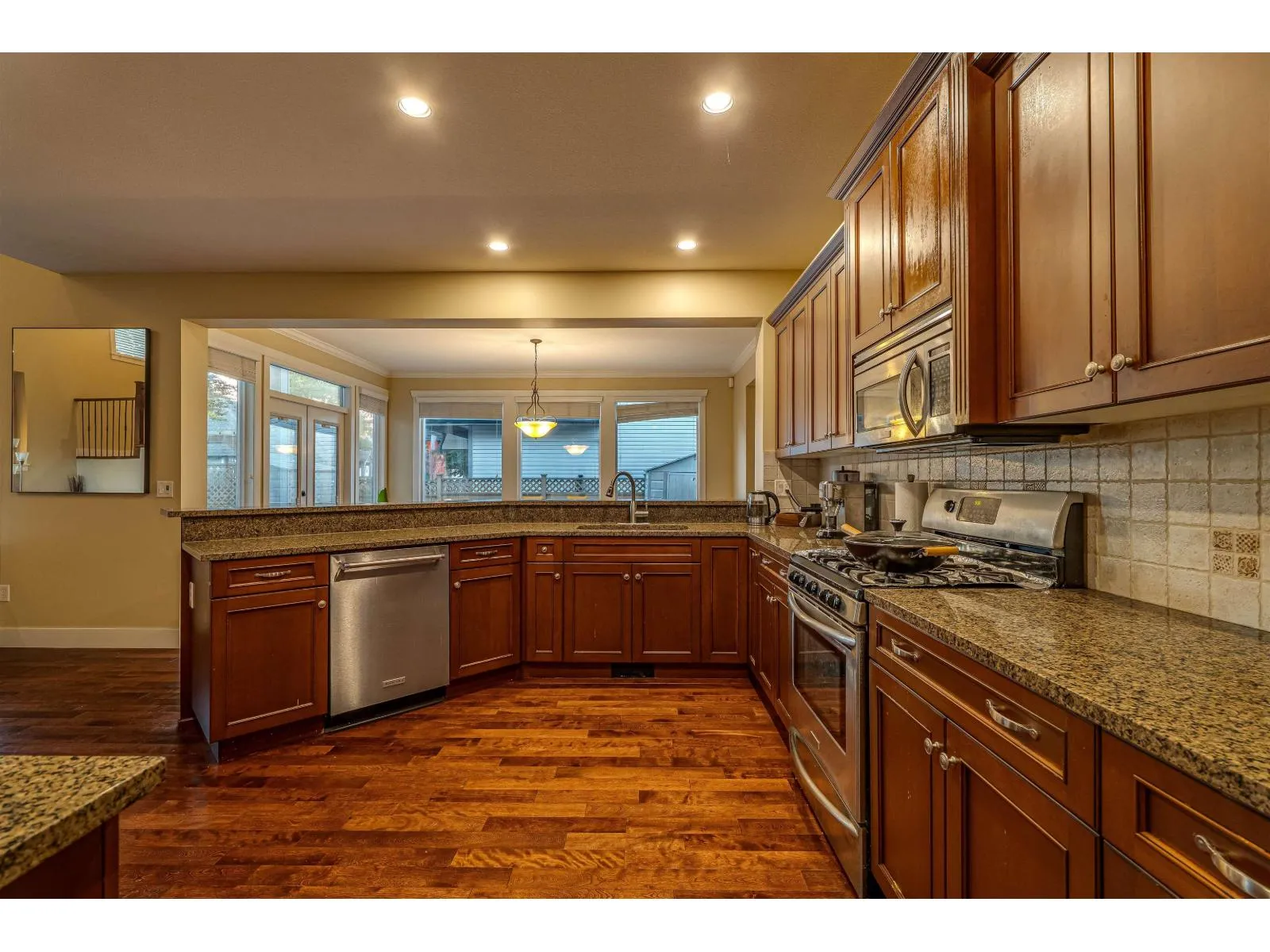 Welcome to this spacious 6-bed, 4-bath home on a desirable corner lot in Yorkson! Offering over 3,850 sq ft of well-designed living space, this home features an open main floor with hardwood floors, high ceilings, and a bright great-room layout that flows to a covered deck and private yard-perfect for entertaining. The kitchen offers stone counters, stainless appliances, and ample cabinetry. Upstairs includes 4 generous bedrooms, while the lower level features a legal 2-bedroom suite with separate entrance. Steps to schools, parks, and amenities, this is an incredible family home in a sought-after neighbourhood. Click the Virtual Tour URL for video and floor plan. (id:27476)
