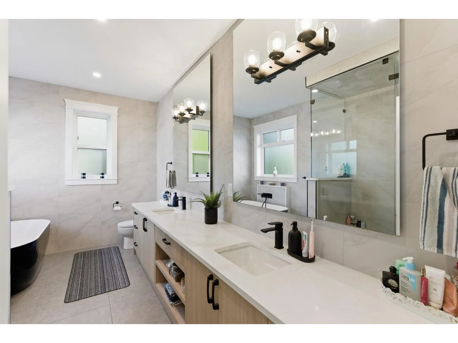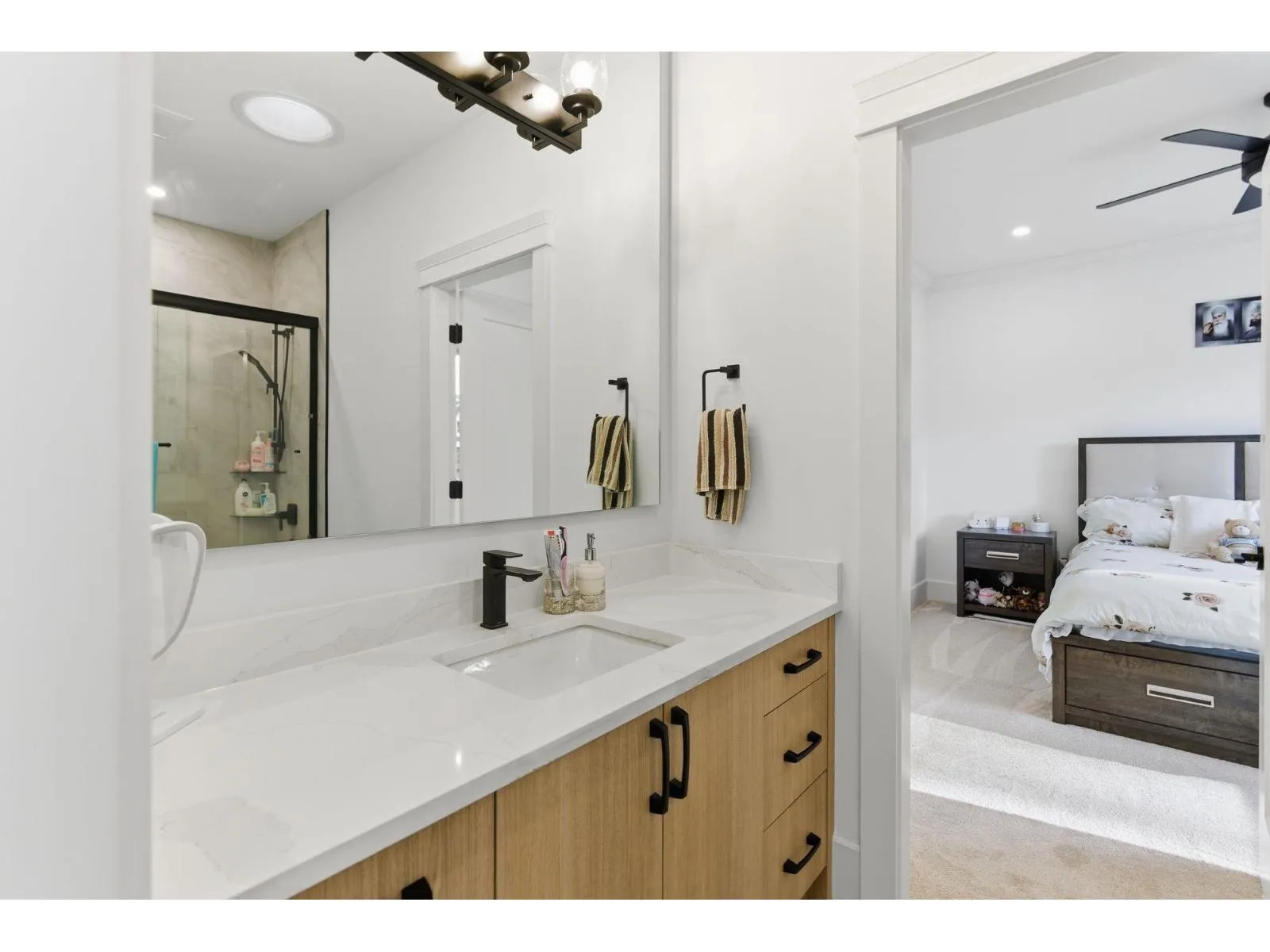Built by English Willow! 1 Year New, single family, detached home located 5 mins from Murrayville. Beautiful great room-kitchen area, with white shaker style cabinets contrasted with white oak. Quartz counters with waterfall edges on the 7'x5' island, Frigidaire Professional 36''gas range and industrial sidebyside fridge/freezer. S/S farm style sink. An oversize 60"linear gas fireplace, w/overgrouted stone, white oak mantle and moody Iron Ore paint creates a one of a kind great room. Four large bdrms up, all with ensuite access. Primary bdrm with walk in closet and 5piece ensuite with soaker tub and frameless glass steam shower. Bonus open/flex room up, perfect for the kids to play.270sqft covered deck with composite decking and HOT TUB included,A/C. OPEN SUN Feb 15, 2-4pm (id:27476)