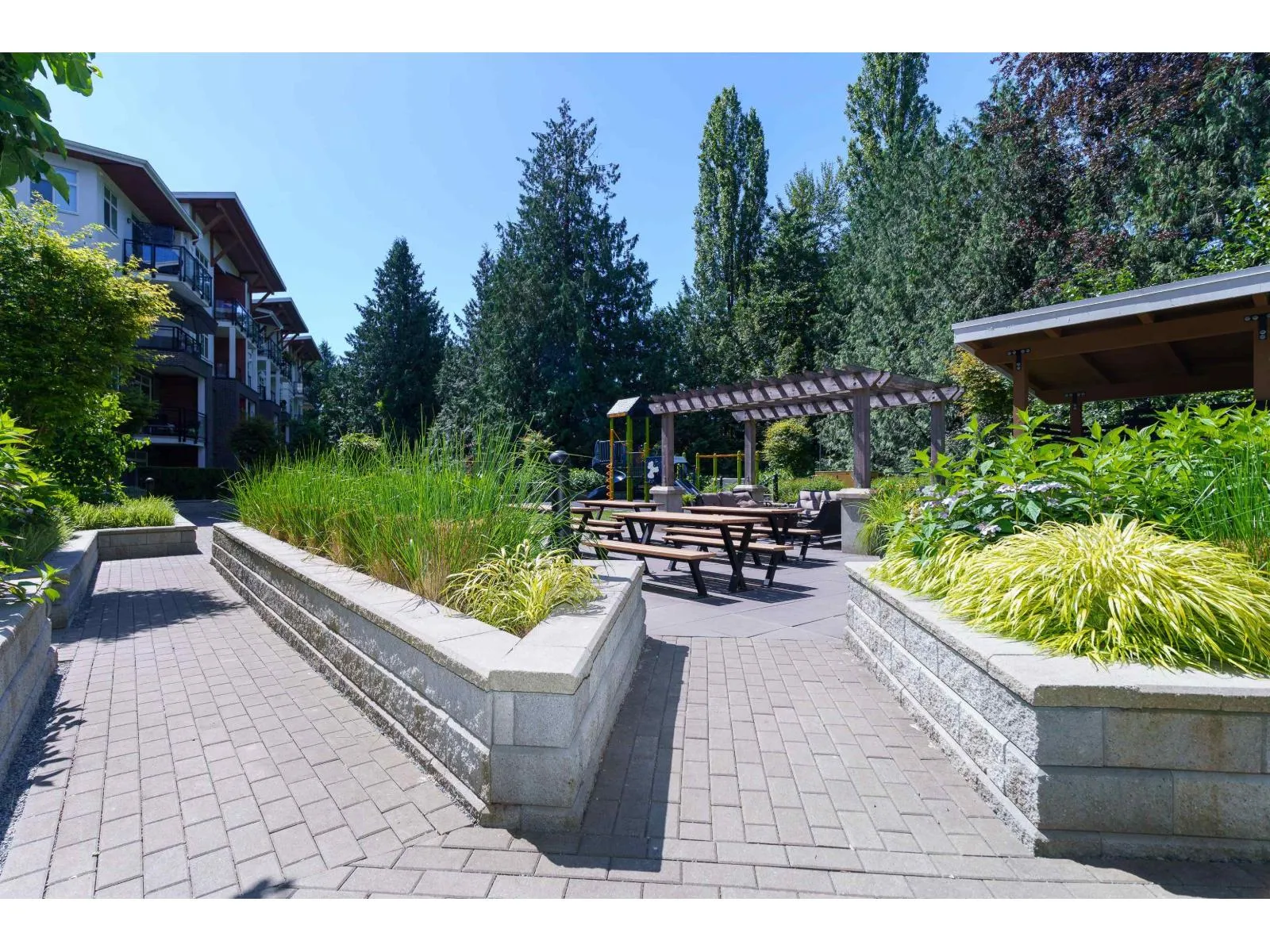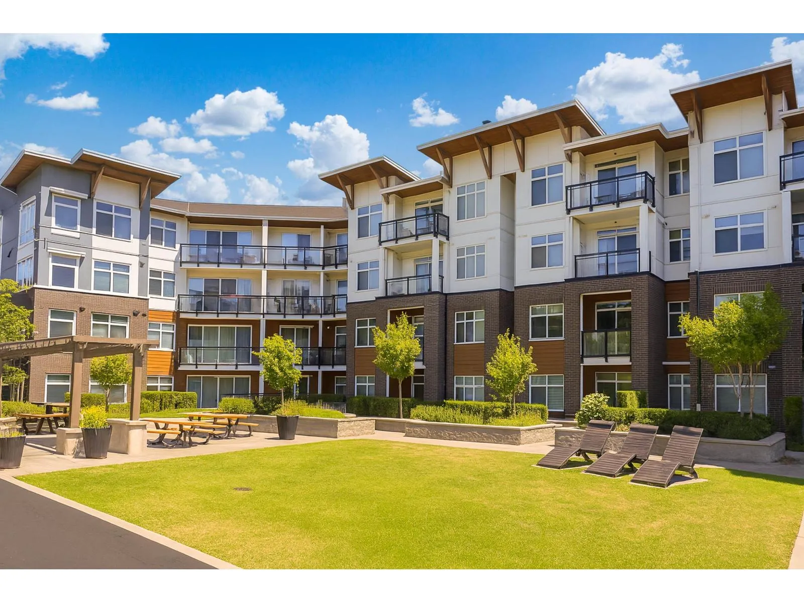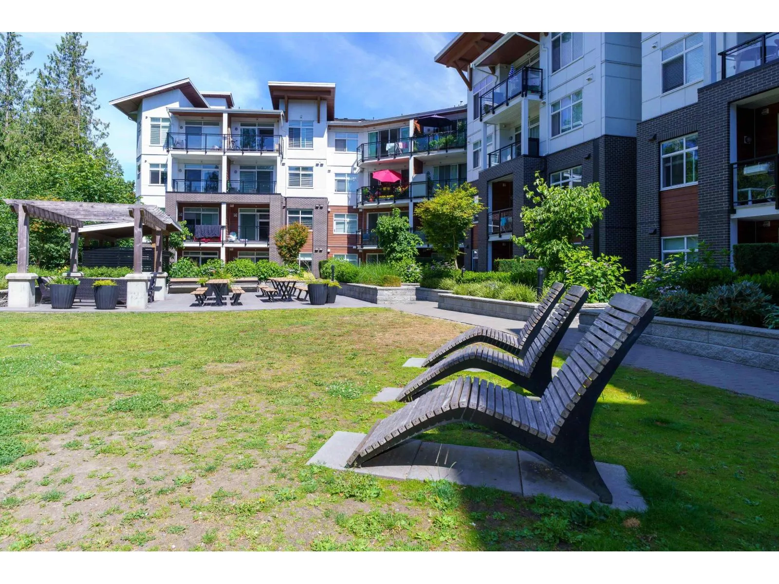 With over 1200 sq ft of living space this bright & spacious 3 bed ground floor unit feels like a home! Enjoy the abundance of natural light, gourmet kitchen with quartz countertops & high end appliances, a big in suite storage room, plus a spacious primary bedroom with walk-in closet & a 5 piece ensuite. A large sliding door opens up to your own private patio leading out to the quiet & secure community courtyard (backing on to protected greenspace) with a firepit, comfy chairs & tables, & a children's play area. Within walking distance to Brydon Park, transit and the new future SkyTrain! The unit comes with 2 parking stalls and bike lockers are available. Amenities include a gym, guest suite, EV charging, and dog wash room. Pet friendly complex, 2 allowed. QUICK POSSESSION available. (id:27476)