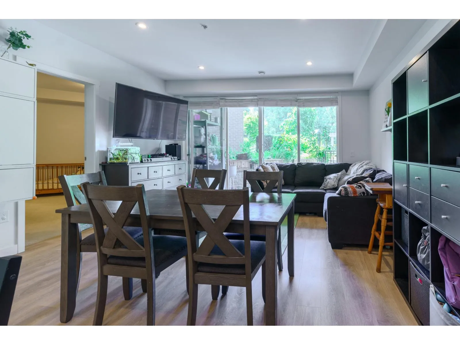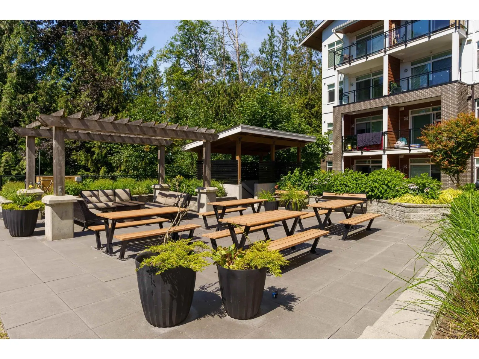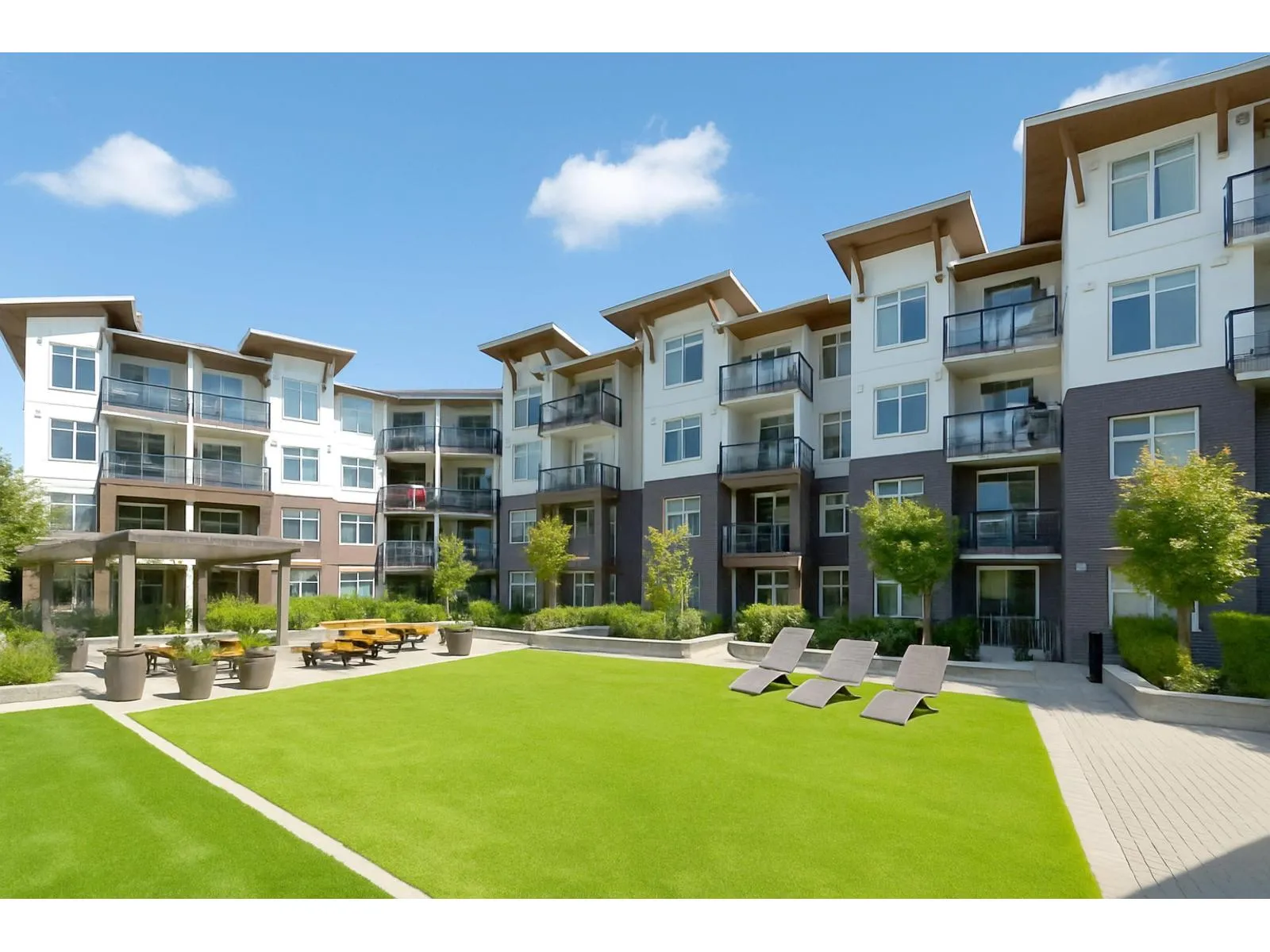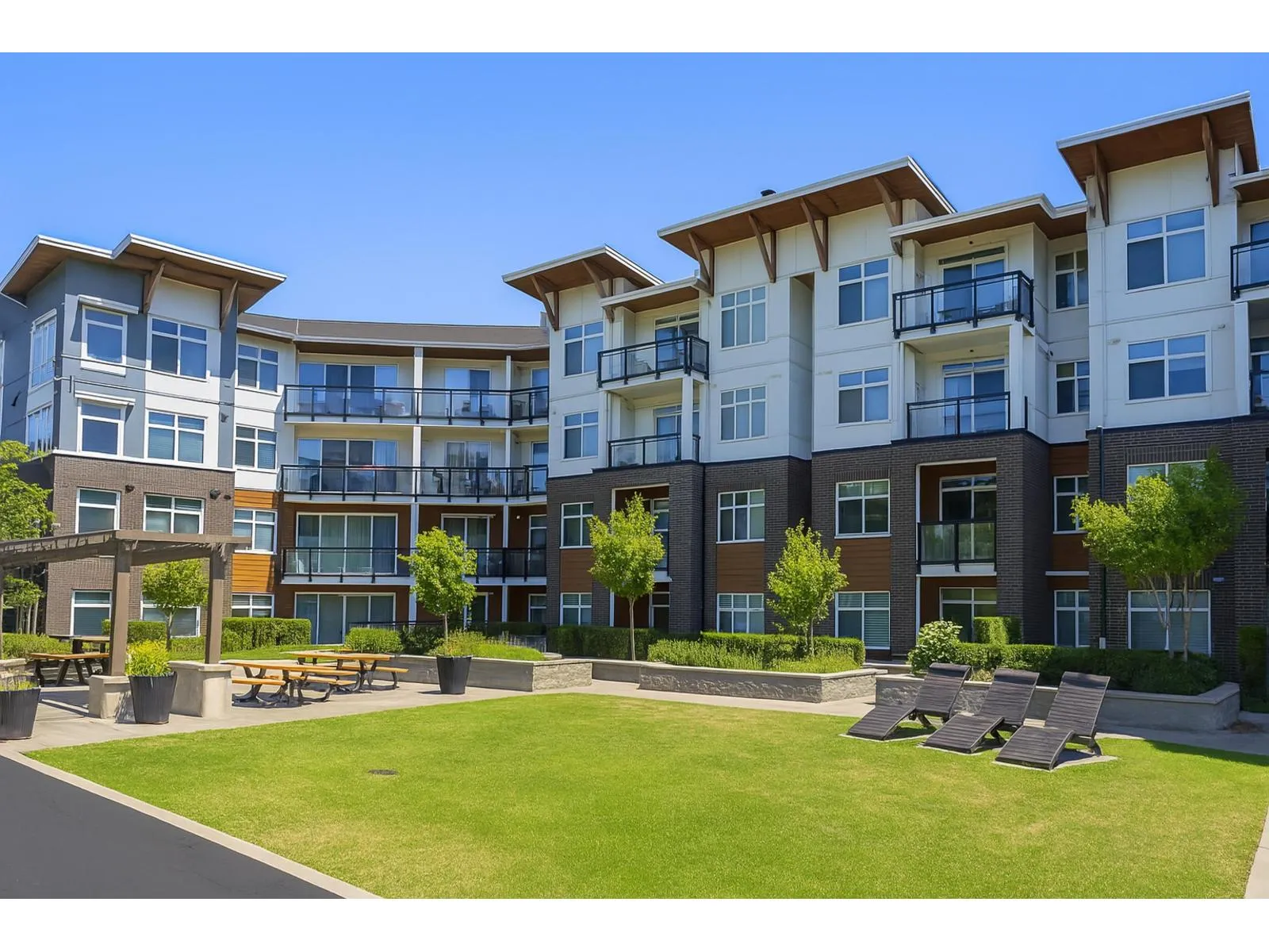 With over 1200 sq ft of living space this bright & spacious 3 bed ground floor unit feels like a home! Enjoy the abundance of natural light, gourmet kitchen with quartz countertops & high end appliances, a big in suite storage room, plus a spacious primary bedroom with walk-in closet & a 5 piece ensuite. A large sliding door opens up to your own private patio leading out to the quiet & secure community courtyard (backing on to protected greenspace) with a firepit, comfy chairs & tables, & a children's play area. Within walking distance to Brydon Park, transit and the new future SkyTrain! The unit comes with 2 parking stalls and bike lockers are available. Amenities include a gym, guest suite, EV charging, and dog wash room. Pet friendly complex, 2 allowed. QUICK POSSESSION available. (id:27476)
