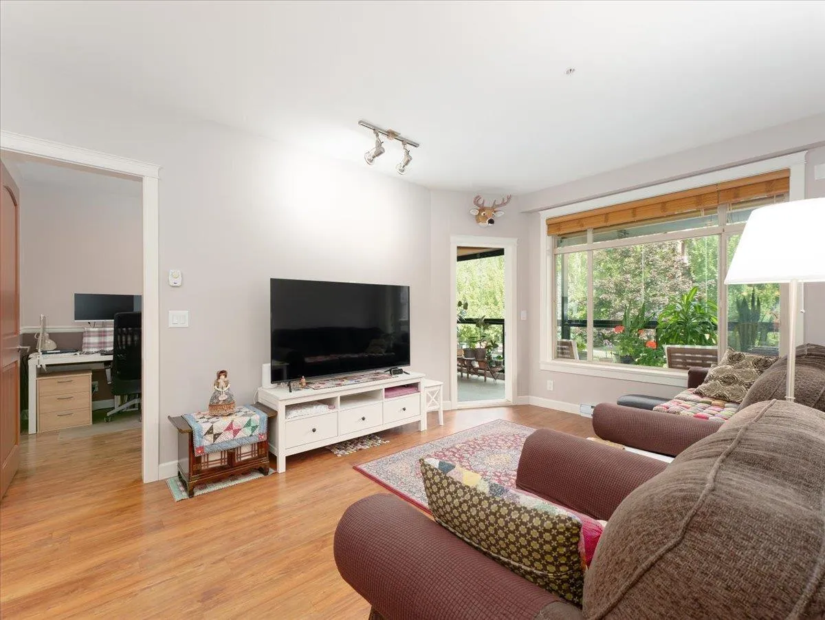 WALNUT RIDGE in Yorkson Creek! This stunning 2 bdrm, 2 bath + den (or 3rd bdrm) is spacious with your ideal floor plan. Kitchen boasts granite counter tops, solid cabinets, stainless steel appliances (newer fridge) perfect for family dinners and entertaining friends. Also includes large pantry. Living room flows in to Large enclosed deck perfect for anytime of the year. Den has closet perfect for office or extra bdrm! Amazing primary bedroom with built in closet organizers. Ensuite includes heated tile floors, anti fog mirrors and rain shower head. A/C and in suite laundry. 2 Parking spots in underground, large secure roll down storage locker right behind your parking spot. Next door to a beautiful parks, walking trail, dog park. Close to schools, HWY access, shopping/rec centres. (id:27476)