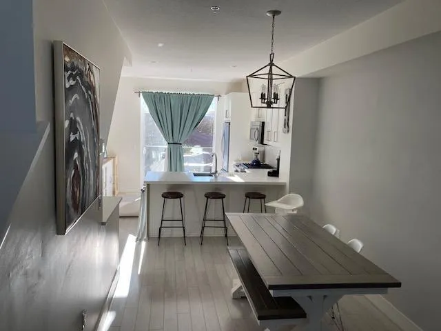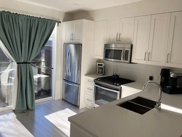 This bright and clean two bdrm plus den townhouse is located in a quiet, walkable, family-friendly area of desirable Willoughby Heights. Just two blocks to the Carvolth bus exchange, plus easy access to Highway 1 makes this a perfect location for commuters. Also close to trendy shops and services, schools, spray park, and the huge new Yorkson Community Park. This air-conditioned home features beautiful quartz countertops, stainless steel appliances with gas range, kitchen bar, and patio right off the kitchen. Great street-front location. OPEN HOUSE SUNDAY FEB 15, 2 TO 4 PM. SEE YOU THERE! (id:27476)