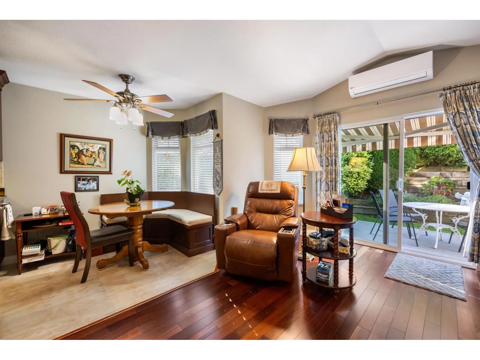 Beautiful 1772 sf end unit townhome in highly sought after Churchill Park gated community. This unit has the best floorplan with traditional living & dining areas that are perfect for entertaining. Bright & open kitchen has an oversized island, banquette seating & family room that opens onto a private south facing garden. Spacious Primary bedroom on the main floor features walk in closet, huge ensuite with double sinks, separate shower & walk in bath tub. Upstairs offers 2 bedrooms & full bathroom. Over $200,000 spent in upgrades including flooring, windows, bathrooms, kitchen & A/C split unit in kitchen/family room. Well run strata with $1.7M contingency fund. Resort style amenties with pool & clubhouse. Quick & easy access to walking trails, shopping & freeway. Quick possession possible (id:27476)