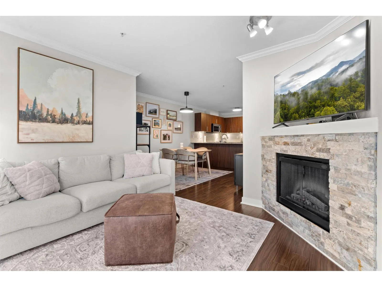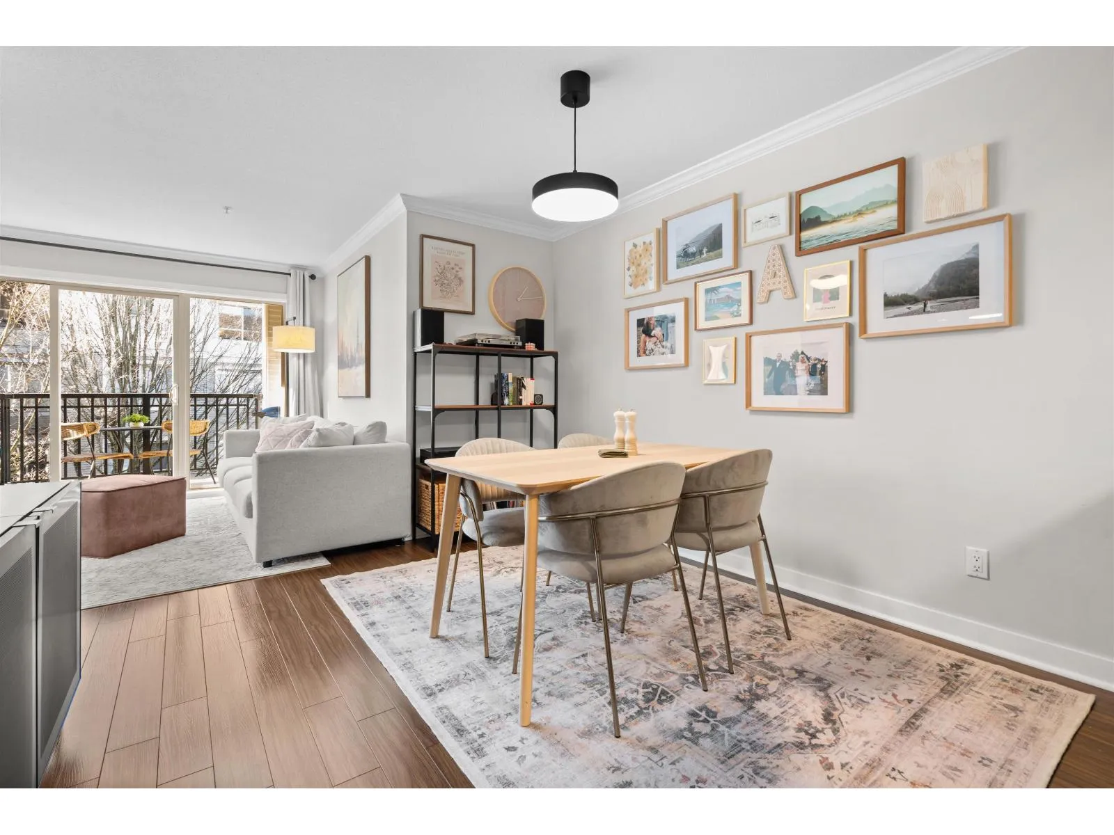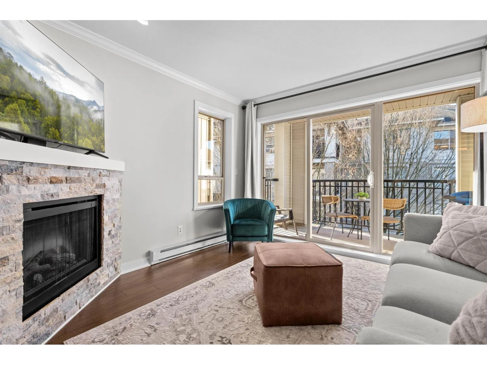 Welcome to The Grove in desirable Walnut Grove. This bright 7202 sq ft 1 bed + den home features a spacious open layout with the living area set slightly apart from the dining space. The kitchen is finished with stainless steel appliances, granite counters, and a breakfast bar, plus a covered west facing balcony overlooking the quiet central courtyard, perfect for BBQs or unwinding after work. Includes 1 parking and 1 storage locker. Unbeatable location just off Hwy 1 with the walkbridge steps away to Fresh St Market, Shoppers, fitness studios, restaurants, shops, trails, and Carvolth Exchange. Close to Dorothy Peacock Elementary. (id:27476)