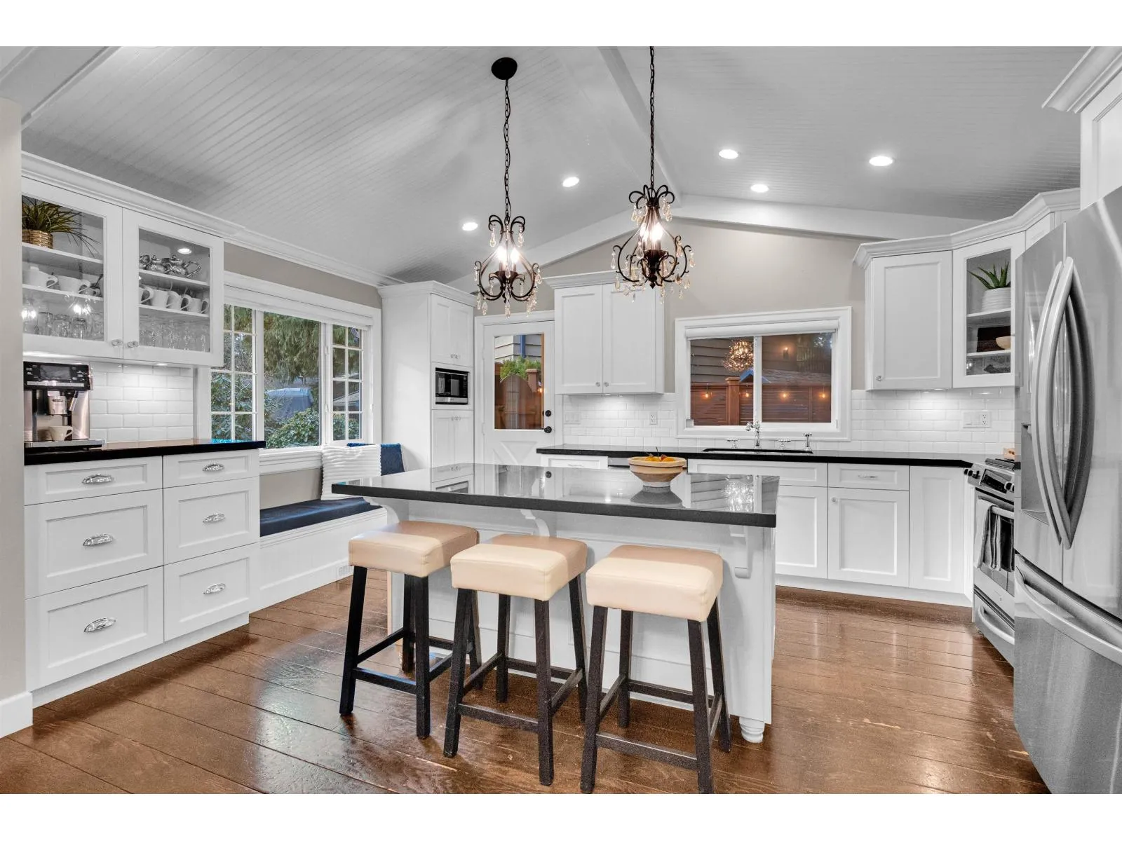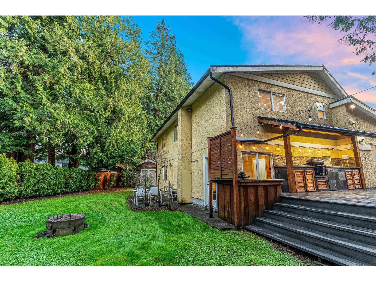 LANGLEY'S MOST UNIQUE HOME - this hidden gem is ideal for family living. Offering 2,937 sq. ft., the unique layout features a bright white kitchen with oversized island, entertainer's dining area with bar, vaulted ceilings, and rich wood floors overlooking a sunken family room. Upstairs includes 3 spacious bedrooms, including a primary with walk-in closet and spa-inspired ensuite. Enjoy a private backyard retreat with a large sundeck, outdoor kitchen/BBQ, water feature, and refurbished playground on an 8,185 sq. ft. lot. Updates include a new roof (2025), cedar fencing, custom cabinetry, and a 1-bedroom side suite. (id:27476)