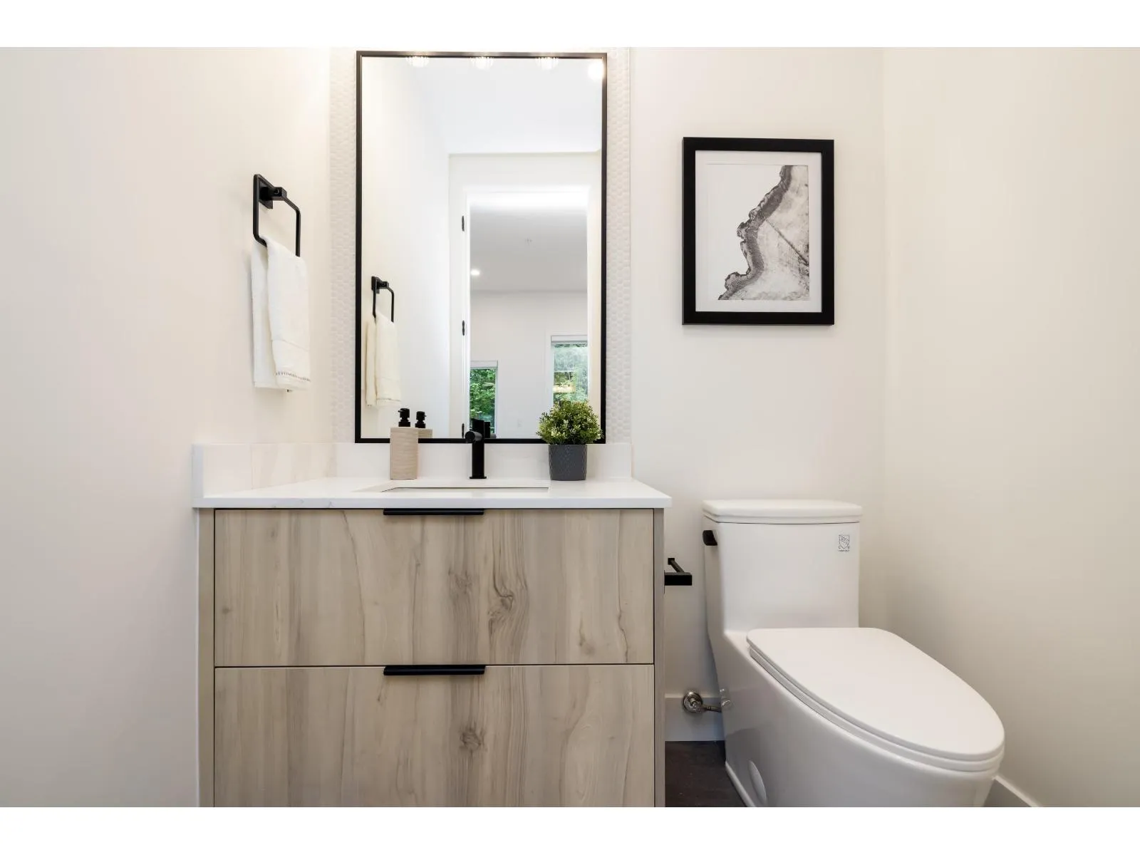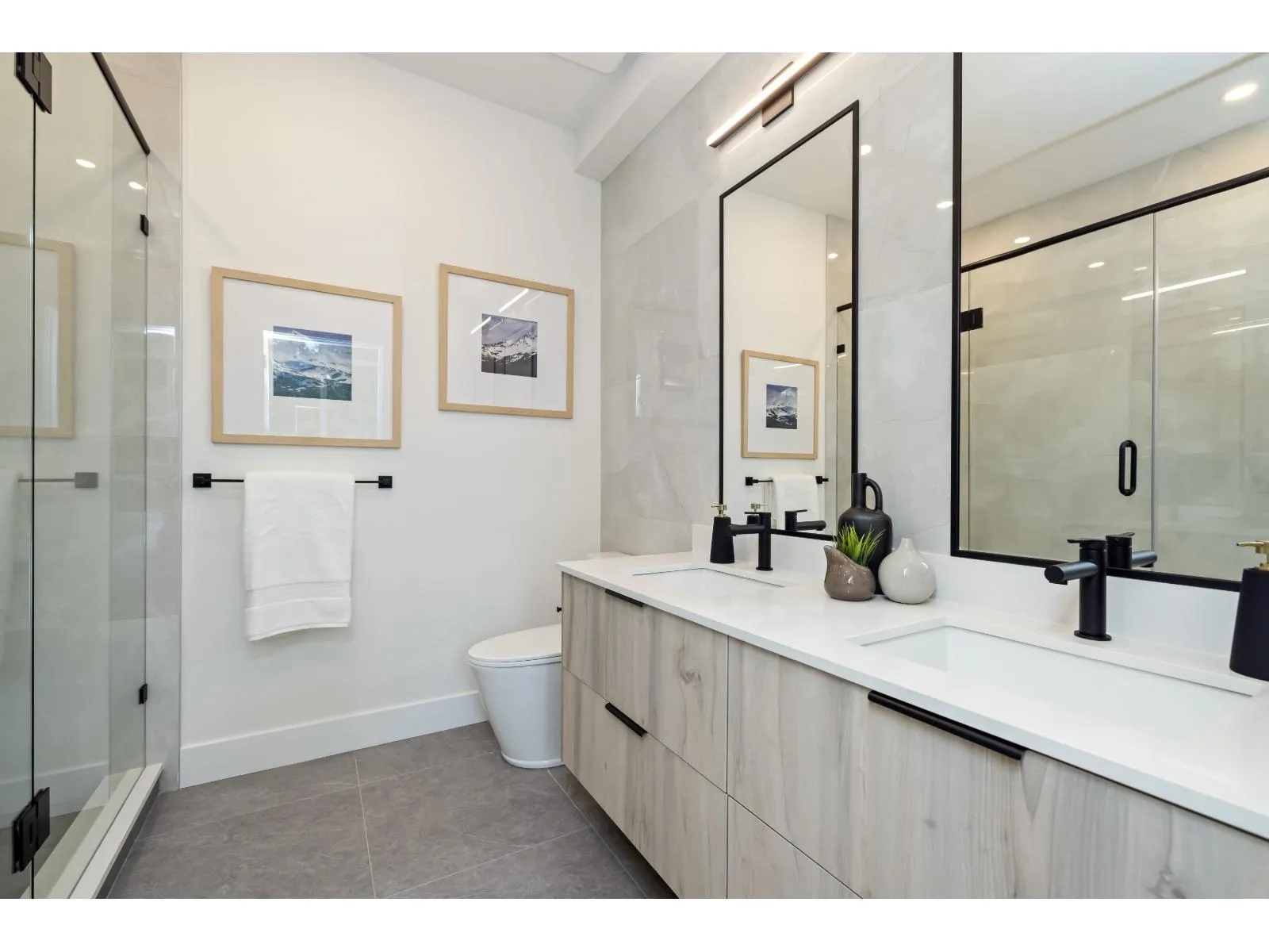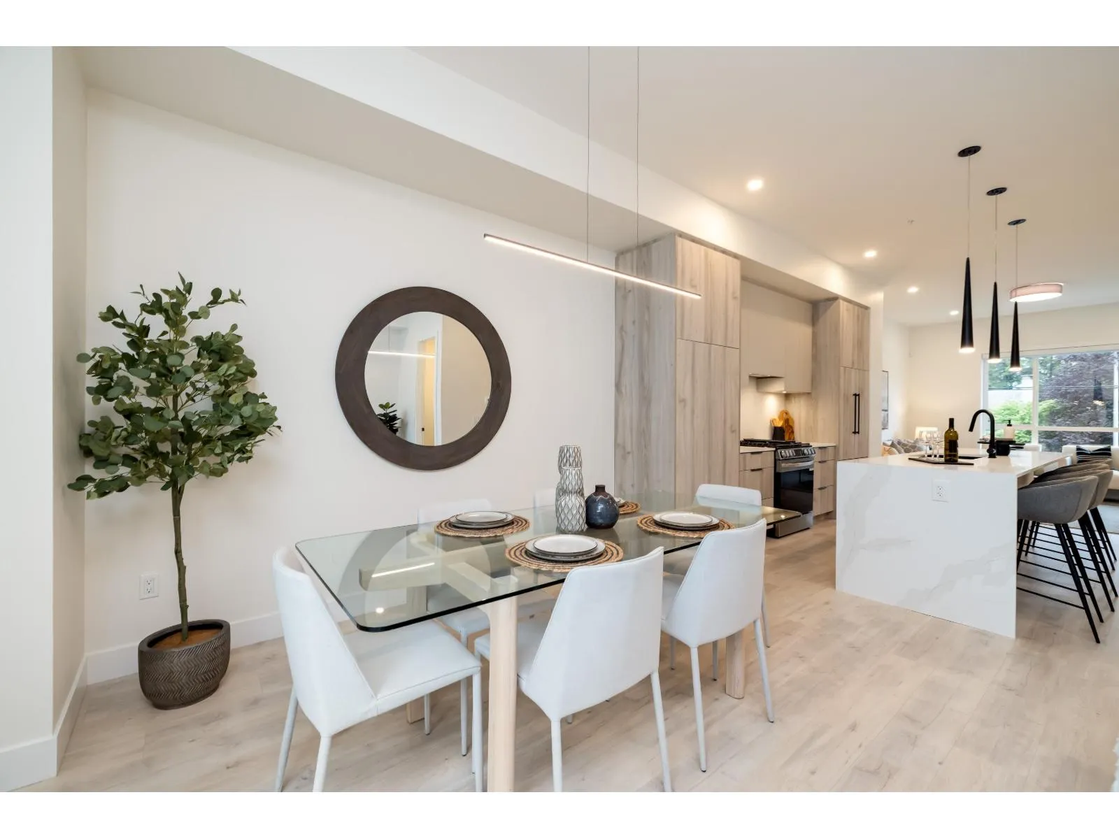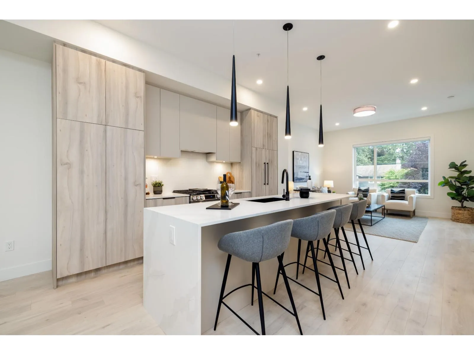 Rare end-unit, fee-simple rowhome with NO strata fees at Oxford Mews by Leone Homes. This brand-new, move-in ready 3-level residence offers 5 bedrooms & 4 bathrooms, including a I-bed in-law suite on the ground level. Enjoy approx. 2,198 sq ft of interior living, side-by-side double garage with EV rough-in, 10' main-floor and 12' bedroom ceilings, central A/C, gas cooktop, quartz countertops, and premium Fisher & Paykel & LG appliances. Smart home features include Google Nest thermostat & Leviton Smart Switches. (id:27476)