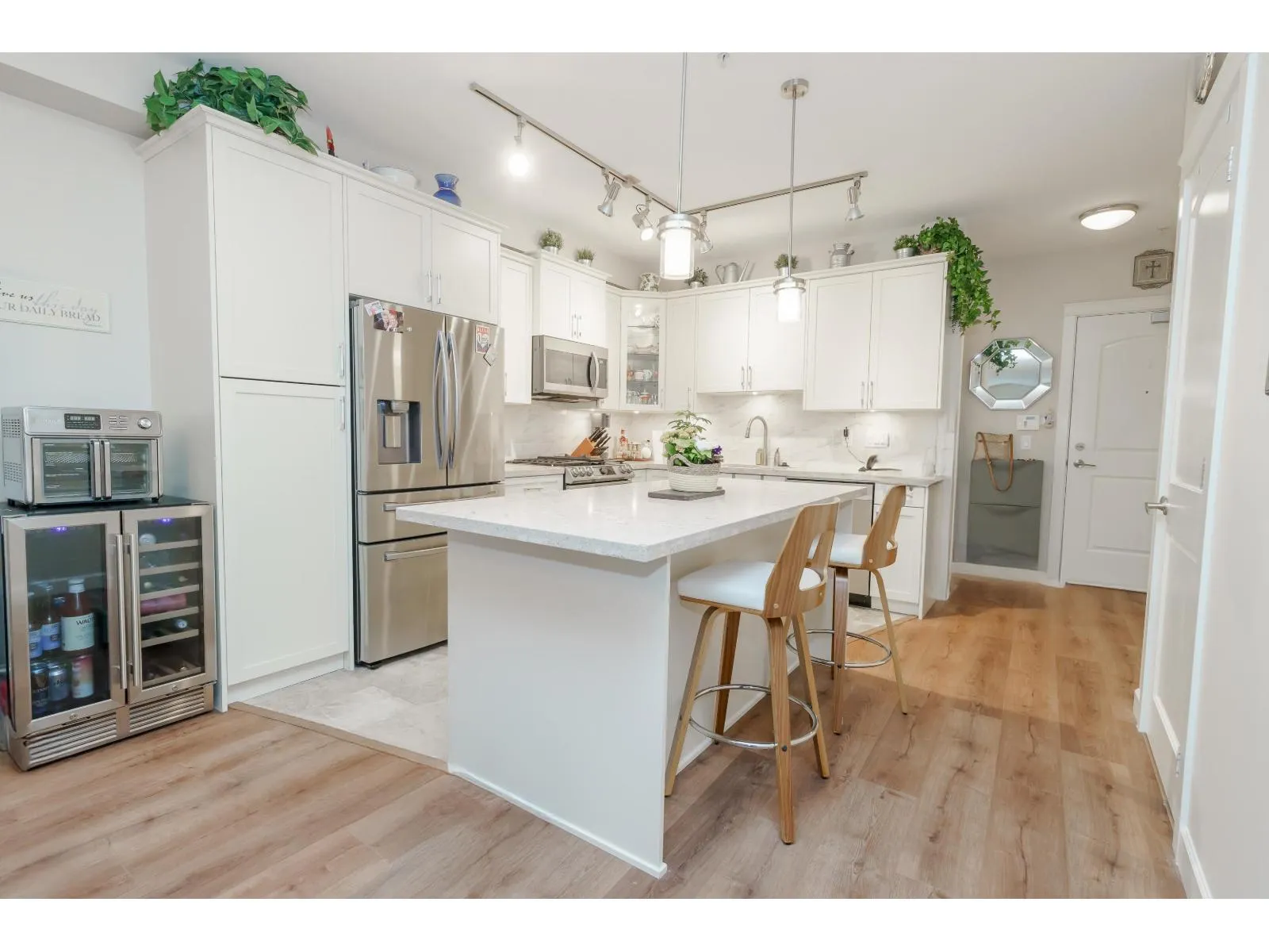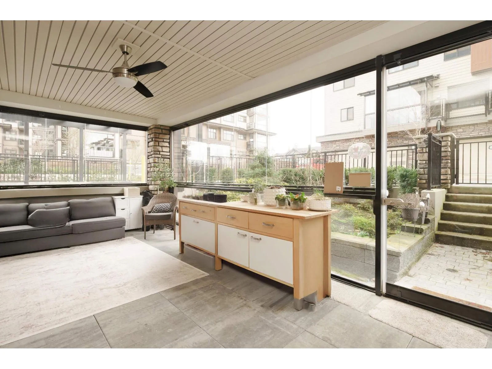 This executive 3 bed , 2 bath ground floor corner unit features a chefs kitchen including a gas cooktop, double oven and soft close cabinets with pull out drawers. The large primary bedroom has a walk in closet and a 4 piece ensuite with double sinks. One of the bedrooms has custom built-in cabinets and a desk, making it an ideal home office. Enjoy BONUS indoor/outdoor living space in the 11'6X21'9 solarium with an electric fireplace. The glass is retractable for summer yet fully enclosed for winter with a lockable door that leads to a laneway for easy guest entry. Outdoor grilling is made easy with the gas hookup on the patio. Included are two underground parking stalls and a rare XL storage locker with roll up door. Amenities include playground, rec room, gym, and community garden beds. (id:27476)