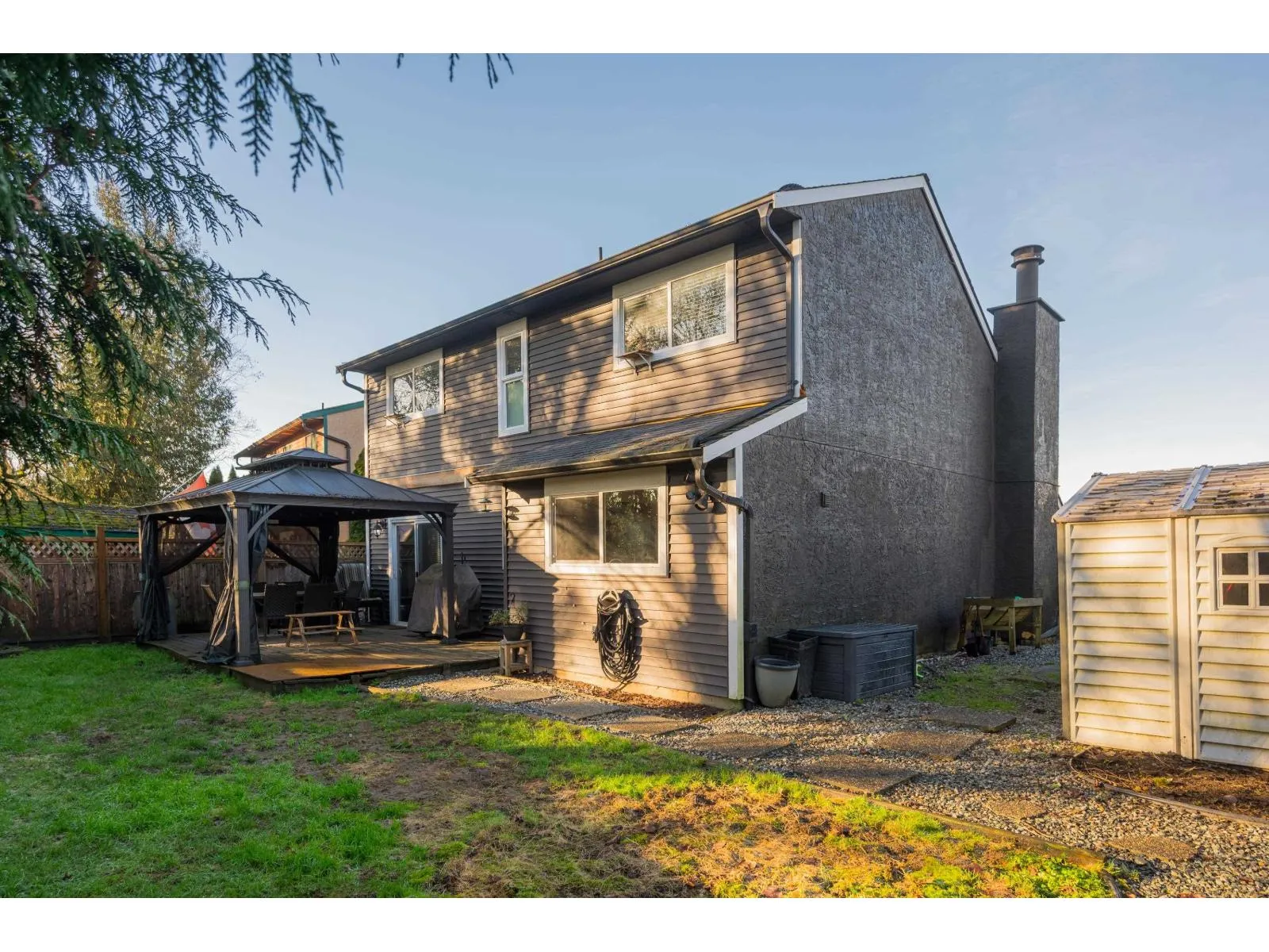 Great, quiet, family friendly home offering 1733 sq ft located on a family friendly cul-de-sac in popular Langley Meadows! Living rm with vaulted ceiling leads to the dining rm & kitchen that includes S/S appliances. Family rm with sliders leads to the large deck ~ enjoy your yard with all new fencing, shed, and privacy with green space behind! There is a 3 pc bth on the main complete with shower! Garage has been turned in to a bonus flex space and includes separate storage space but could easily be turned back in to a garage. Up offers 3 bedrooms, with primary including double closets and there is a 4 pc main bth. Updates include water shut off redone (Pex,) stove ( 2025) D/W ( 2024) siding (2020) Roof (2014) & more! Walk to Langley meadows Elementary, shopping, transit & restaurants! (id:27476)