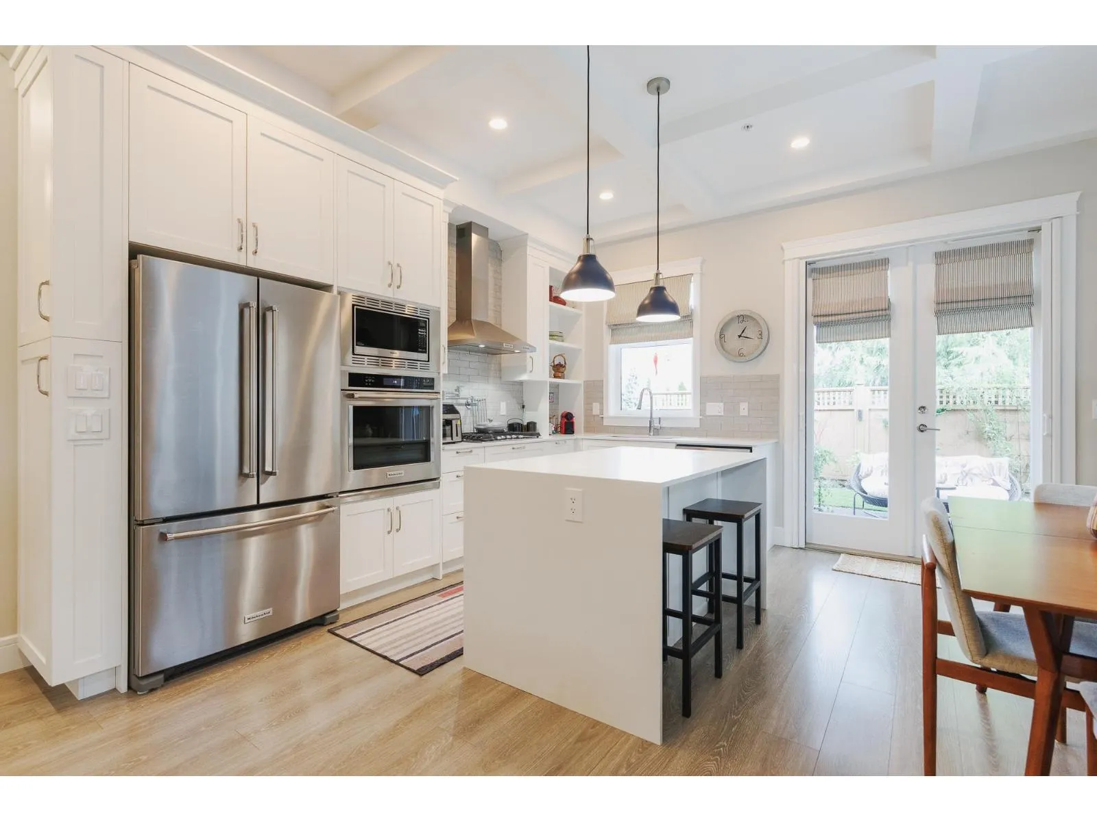 This is your ideal next chapter! Indulge in the epitome of comfort & style with almost 2000 sq ft in this rarely available Rancher with basement in Denby! Murrayville is always popular & is a great community! This end unit, duplex style home has one of the largest yards in the complex & is fenced, private & with a large covered patio, making year round barbequing easy. Stunning Kitchen~ S/S appliances including gas range, pot filler, quartz, stylish backsplash, island & dining area with coffered ceiling! Cozy gas fireplace in the family rm. The den makes the perfect flex space! Primary on the main has walk in closet & beautiful 4 pc ensuite. Head down to find a rec rm complete with wet bar upgrade & an additional huge bdrm with walk in closet & 4 pc ensuite. Double side by side garage! (id:27476)