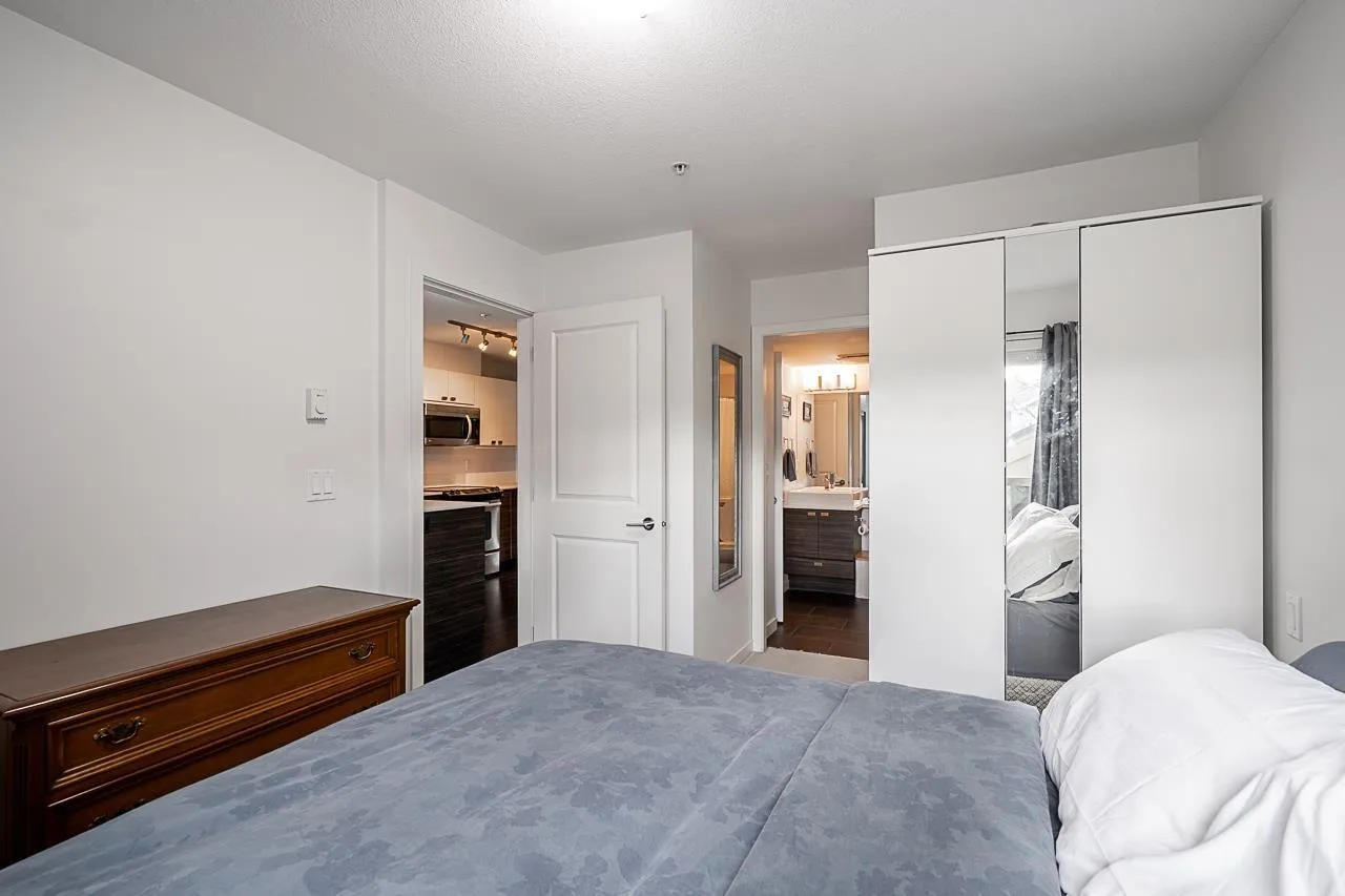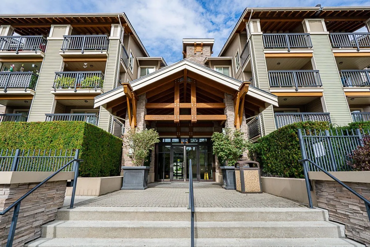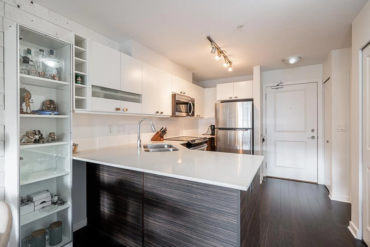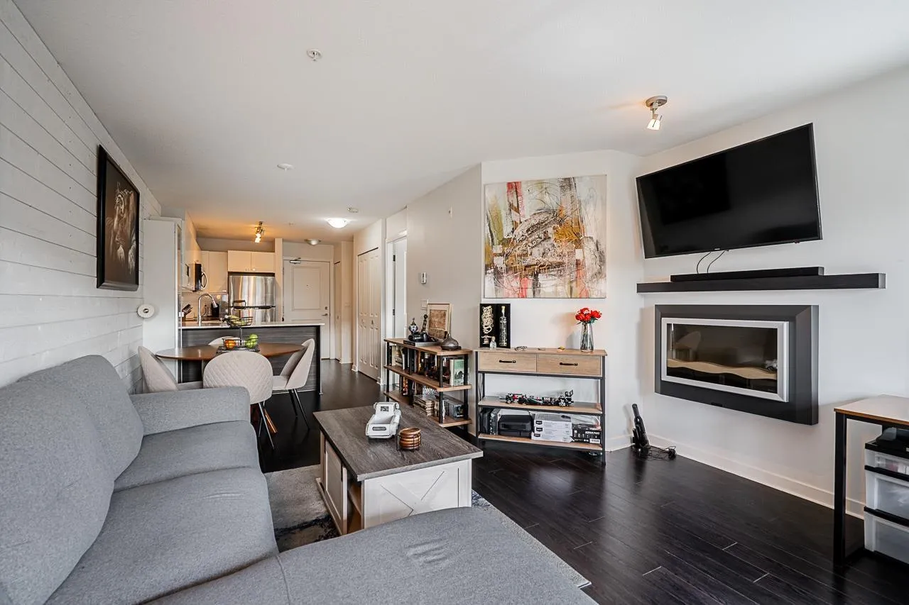 *$30K PRICE ADJUSTMENT* Welcome to Cornerstone - a bright and immaculately kept, sun filled, south-facing 1 bedroom home that welcomes warmth to an open and functional layout. The kitchen features quartz countertops, stainless steel appliances, and a breakfast bar that connects to a cozy living area with an electric fireplace and sliding doors to your 89 sq ft patio. The spacious bedroom includes a walk-in closet and direct ensuite access. With one parking stall, a storage locker, and access to a landscaped courtyard with playground, this home blends comfort and community. Steps to Safeway, Starbucks, Kwantlen Polytechnic, parks, and trails - and minutes to Willowbrook Mall, Safeway, Starbucks, restaurants, and the future SkyTrain - the perfect spot for first-time buyers or investors alike. (id:27476)