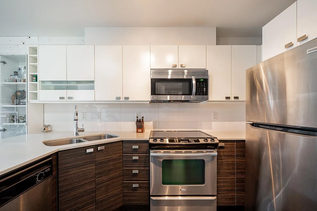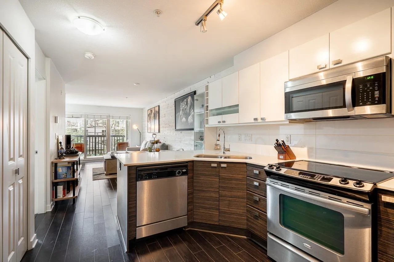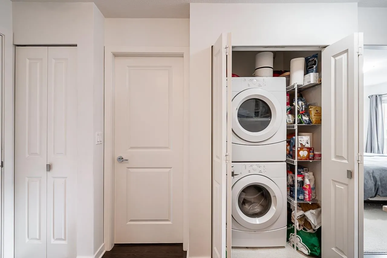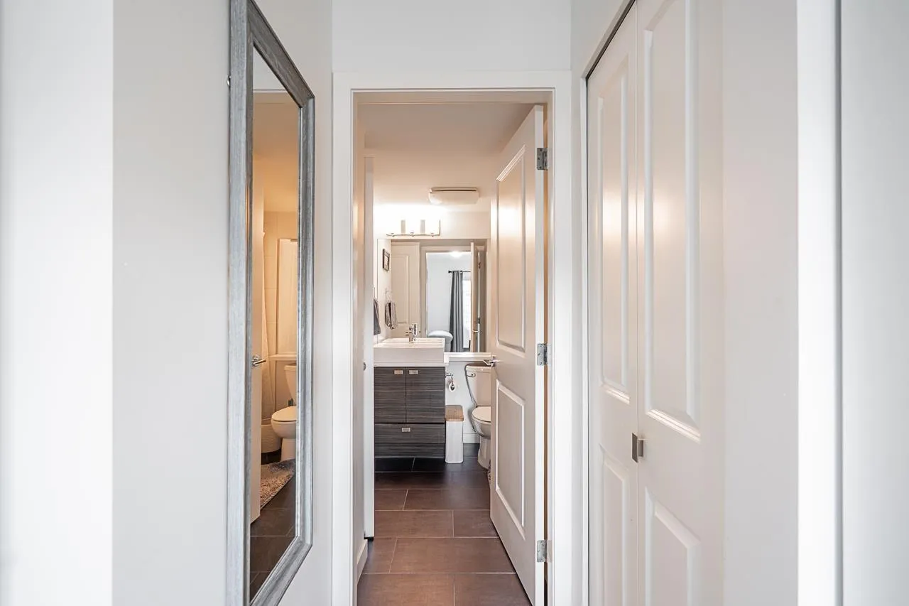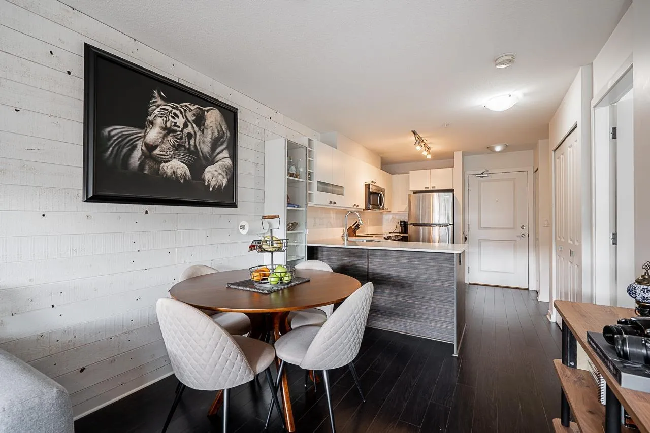 *$30K PRICE ADJUSTMENT* Welcome to Cornerstone - a bright and immaculately kept, sun filled, south-facing 1 bedroom home that welcomes warmth to an open and functional layout. The kitchen features quartz countertops, stainless steel appliances, and a breakfast bar that connects to a cozy living area with an electric fireplace and sliding doors to your 89 sq ft patio. The spacious bedroom includes a walk-in closet and direct ensuite access. With one parking stall, a storage locker, and access to a landscaped courtyard with playground, this home blends comfort and community. Steps to Safeway, Starbucks, Kwantlen Polytechnic, parks, and trails - and minutes to Willowbrook Mall, Safeway, Starbucks, restaurants, and the future SkyTrain - the perfect spot for first-time buyers or investors alike. (id:27476)