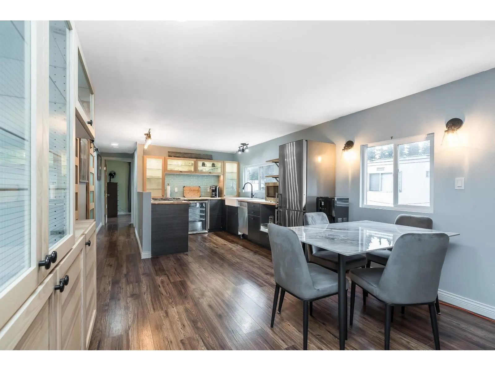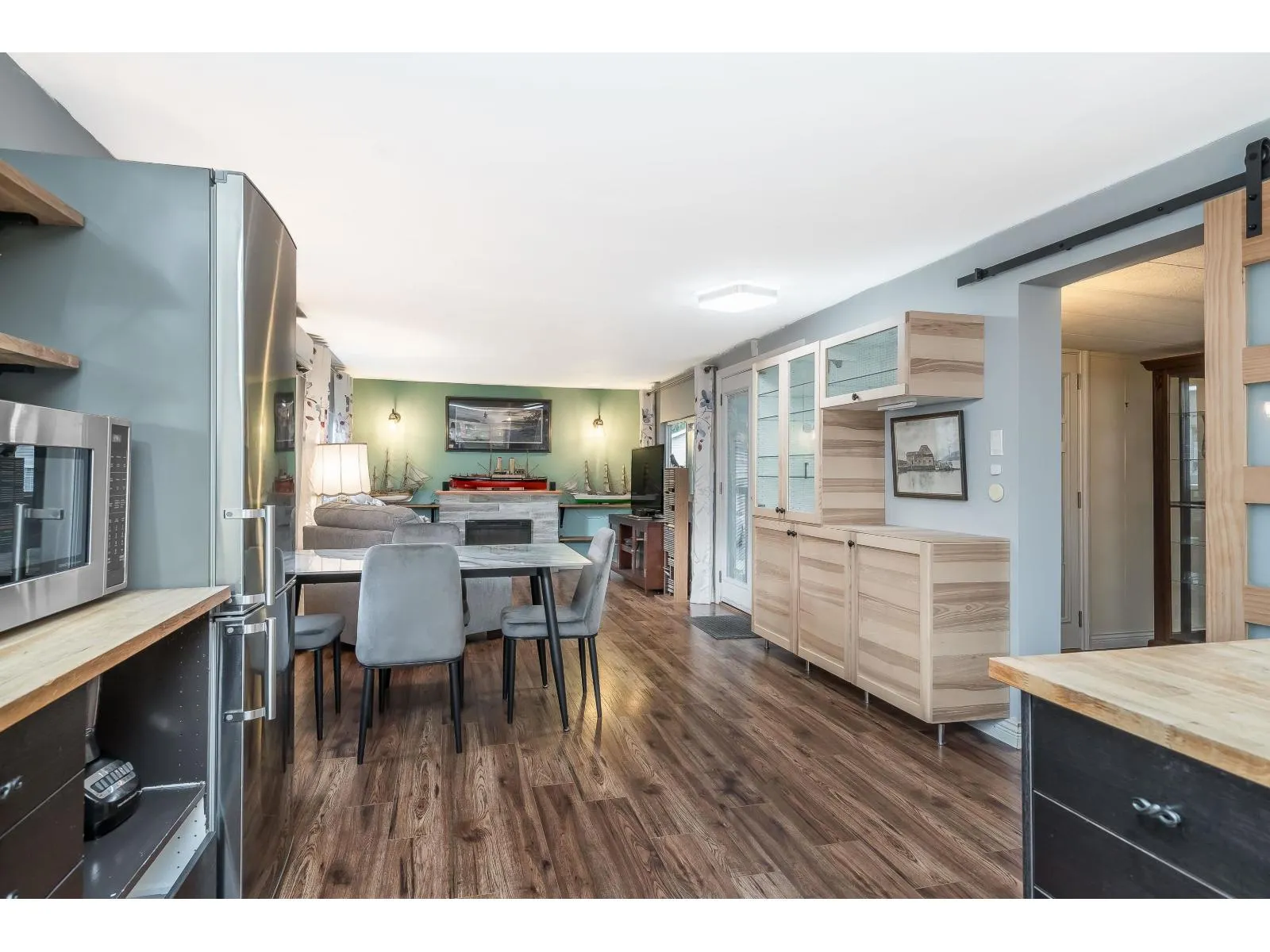 Cozy, welcoming, & move-in ready. This beautifully updated 2-BEDROOM + DEN home offers a fantastic floor plan-just unpack and enjoy. EXTENSIVE renovations include vinyl siding, METAL roof, A/C, HW on Demand, NO Poly-B, VINYL WINDOWS, & laminate flooring thru-out. The bathroom features a large walk-in shower, NEW Floor and updated vanity. The kitchen shines with a gas stove, back-lit cabinetry, beverage fridge, and pine countertops. French doors lead to the patio, while an electric fireplace, covered porch, & private deck off the den add warmth and charm. Other highlights include a walk-in closet w/ large laundry area, ample storage, fenced yard w/ garden shed. Located in a peaceful, park-like 55+ gated community w/RV parking. One small dog or cat welcome, $950 pad, Call NOW to view. (id:27476)