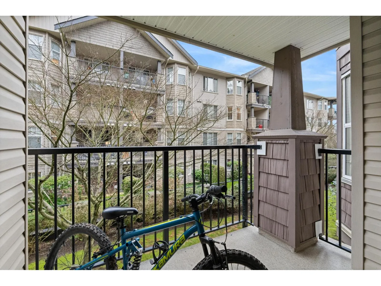Welcome to Brydon Walk! This spacious 2 bed, 2 bath condo offers nearly 900 sq ft of bright, open-concept living in a quiet, private location on the courtyard side of the building. Enjoy vinyl plank flooring throughout, a functional kitchen with large central island, granite countertops, sit-up bar, and stainless steel appliances-perfect for everyday living and entertaining. The oversized primary bedroom easily fits a king-size bed and features a walk-in closet and ensuite. Rare dedicated laundry room with built-in shelving and upgraded Samsung washer/dryer provides abundant storage. One secured parking stall and lots of visitor parking. Professionally managed building with a new roof. Steps to Brydon Park, lagoon, trails, shopping, and the future SkyTrain. Book your private tour today! (id:27476)
