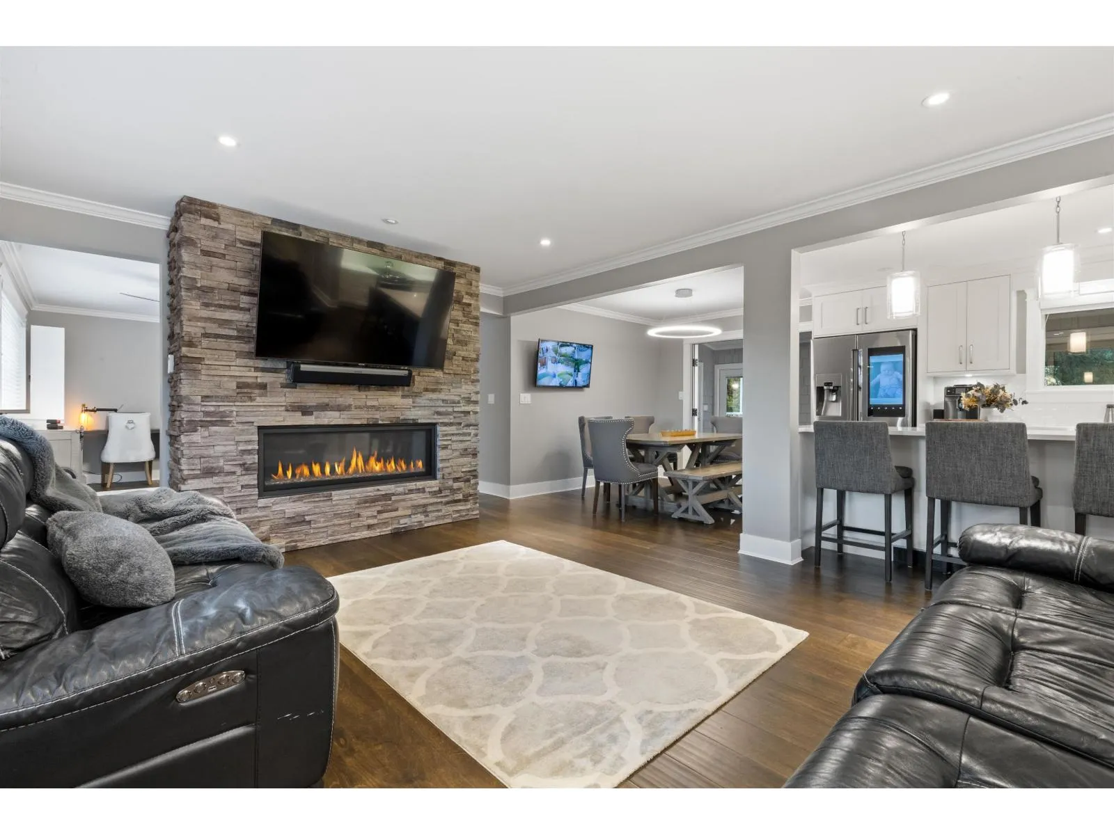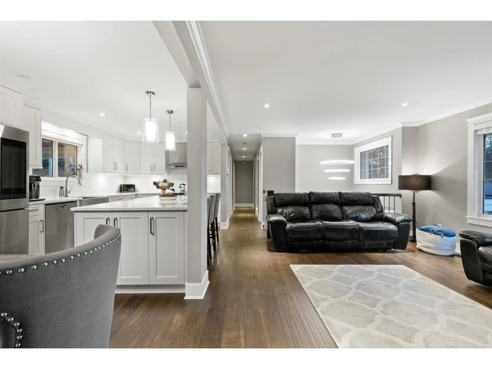 CURB APPEAL THAT WOWS! Welcome to your new home, a fully renovated gem on a serene no-thru road. This remodeled home boasts a stamped concrete driveway with Illuminated lighting & a lush app-controlled irrigated yard. Enjoy evening west facing farm sunsets. Inside, find Pravada engineered hardwood & vinyl plank floors. 1-bedroom basement suite, with its own laundry. Unwind in the primary bathrooms jetted master bath, new plumbing & electrical throughout the home, A/C for summer comfort. 20x20 Detached shop featuring epoxy floors, EV-ready & a heat pump. Double wide garage, Smart tech Nest entry, surveillance, & automated lighting this property blends luxury & functionality. RV parking, new septic field(2025). Nearby walking trails complete the package. Book your private showing today! (id:27476)