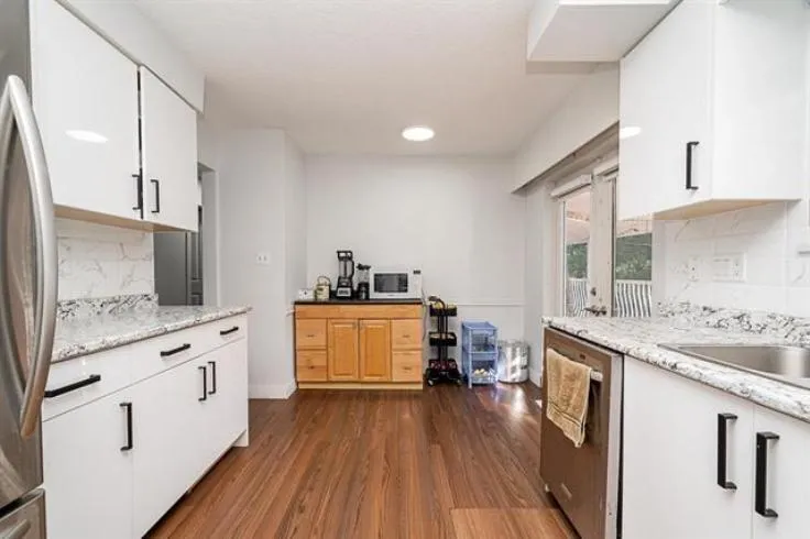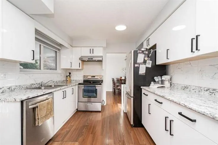 Beautifully updated, move-in-ready home featuring new paint, new flooring, new doors, modern lighting, upgraded windows with new curtains/blinds, and an updated kitchen with new cabinetry. Renovated bathrooms plus major upgrades including a new furnace, hot water tank, and new laundry machines. The main level offers 3 bedrooms and 1.5 bathrooms with a covered sundeck overlooking a private, fenced backyard-perfect for relaxing or entertaining. The lower level includes a 3-bedroom basement suite with 1.5 bathrooms and separate laundry, ideal as a mortgage helper or for extended family. Ample street parking. Walking distance to Simonds Elementary, H.D. Stafford Middle School, transit, and amenities. Prime location and great opportunity! (id:27476)