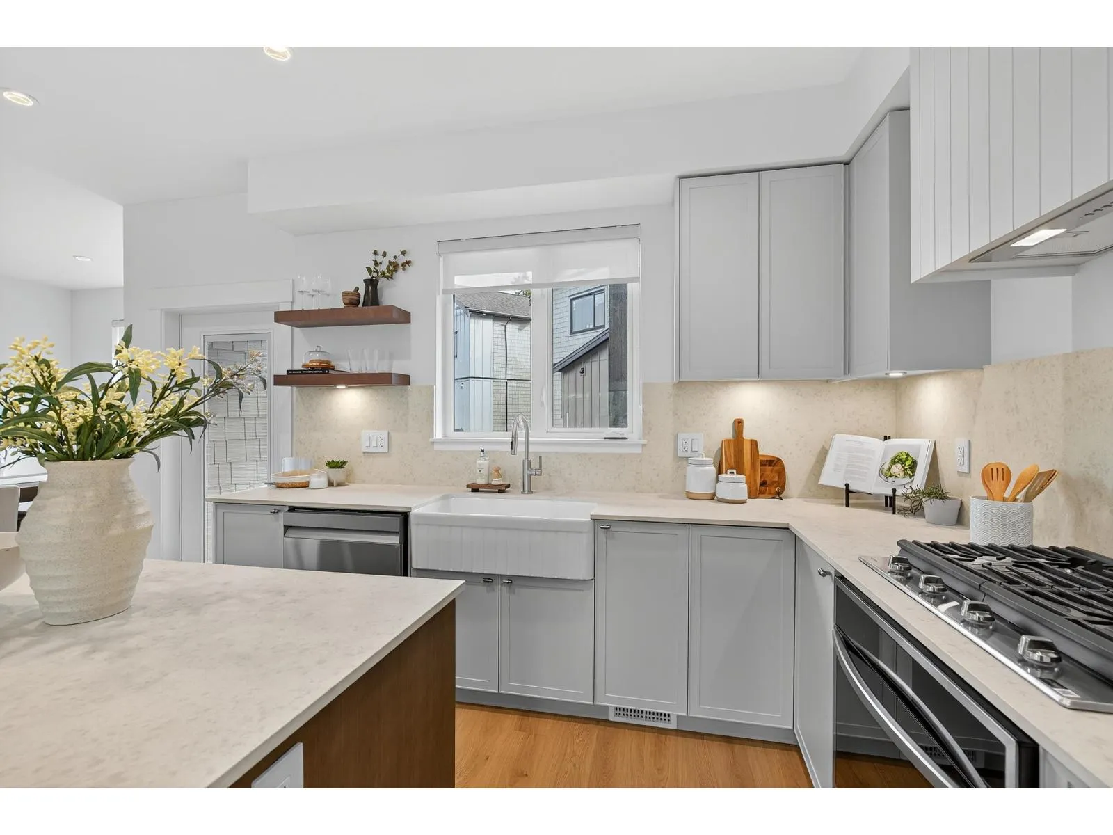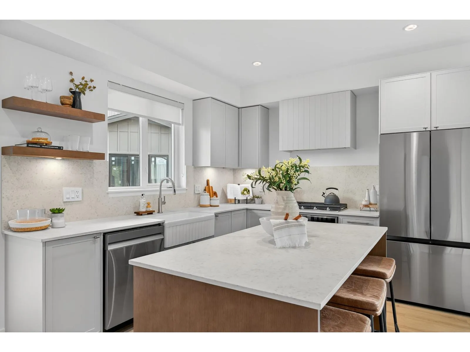 Trailside at Milner offers this beautiful greenbelt-facing townhome with 4 bedrooms and 3 bathrooms, including a versatile ground-level space-perfect for a student, guest, or home office. Enjoy a fenced yard and an oversized sundeck off the main level, both overlooking tranquil greenspace. The stunning open-concept main floor features large windows, spacious living areas, and durable finishes designed to last. The chef's kitchen includes a walk-in pantry for added convenience. Upstairs, 3 bedrooms provide room to grow, with a primary suite that feels like a retreat and a huge walk-in closet. A large double side-by-side garage plus driveway parking for 2 extra vehicles completes the package. Visit our Sales Centre at #2, 6828 208A Street. (id:27476)