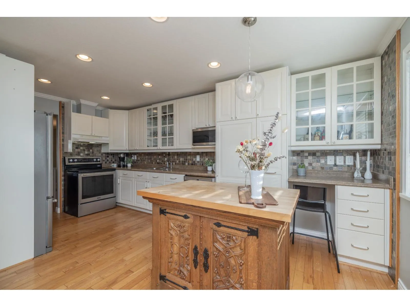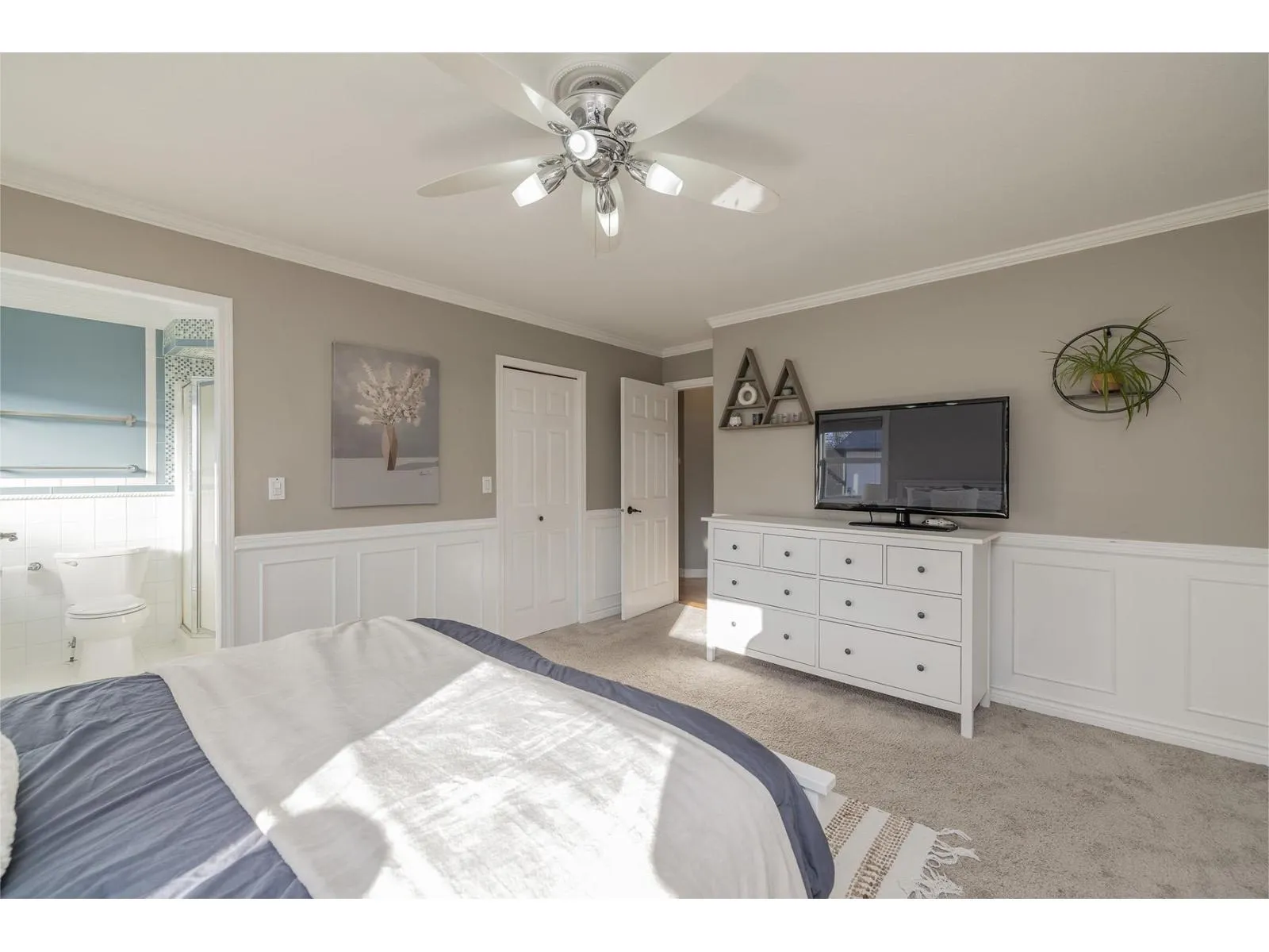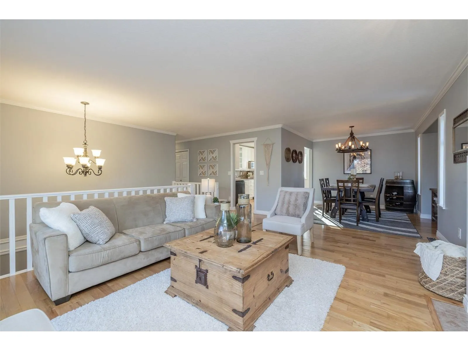 Terrific basement entry home on a corner lot in a quiet, family-friendly Murrayville neighbourhood. Foyer w/ open staircase leading to the spacious main (upper) floor w/ hardwood floors, crown molding, large living room w/ feature gas fireplace, & adjacent dining area. Kitchen w/ white raised-panel shaker cabinets, tile backsplash, stainless appliances, & eating area w/ access to the covered deck & south-exposed rear yard. Primary bedroom w/ 4 pc ensuite & walk-in closet, 2 add'l bedrooms, & 4 pc main bath. Grade-level basement w/ laundry & bedroom/den off the foyer. Bright & open 1 bedroom suite w/ separate laundry, covered patio, & private side yard. Plenty of storage w/ crawlspace, double garage, & shed. Covered RV parking & plenty of add'l parking! Close to schools, parks, & shopping. (id:27476)