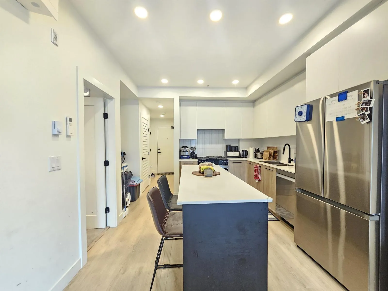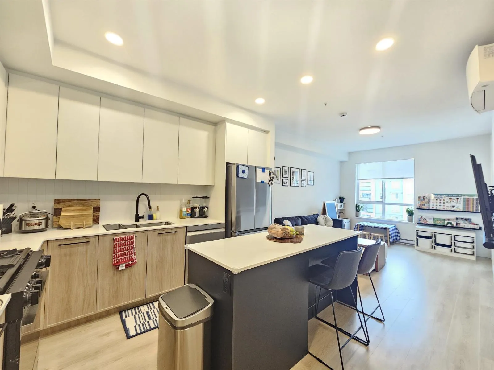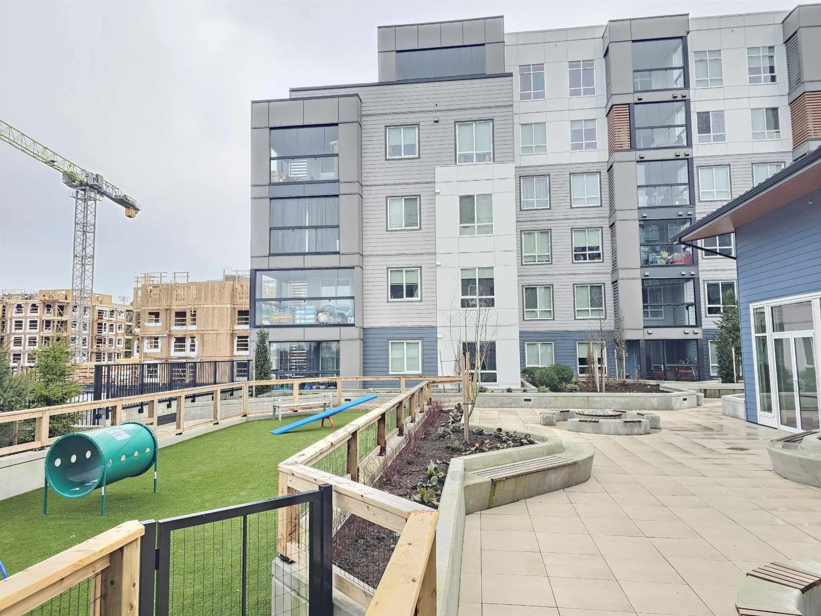 Urban living at Hayer Town Centre in one of Langley's premier neighborhoods. This 1 bed + den, 1 bath home offers 662 sq ft of living space plus a 119 sq ft solarium with gas BBQ outlet, perfect for year-round use. Features include 1 parking, central A/C, a classic colour scheme, and a modern kitchen with large island, quartz countertops, soft-close cabinetry, and high-end stainless steel appliances. Enjoy top-tier amenities such as concierge service, rooftop decks, a live vertical garden, fire pits, games and party rooms, dog park, and 35,000 sq ft of shops,restaurants and services. Close to shopping, transit, schools, and quick access to Hwy 1. (id:27476)