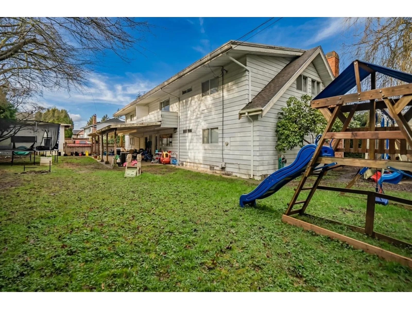 Large 2 storey house on 14,636 sf private corner lot with potential to subdivide! 2 lots meeting all SSMUH criteria-3 STORIES ALLOWED -8 units total- 4 per lot. Possibility for 3 lots with variance. Charming Cape Cod-style home on a corner lot, featuring a bachelor suite above the attached garage for positive cashflow & a 632 s/f out-building with one side tall enough for covered RV storage, 2nd covered bay parking plus oversize double garage. Situated on a quiet street of well-kept homes in the heart of Aldergrove. Just minutes from the Aldergrove Town Centre, with easy access to Hwy 1, Abbotsford Airport, High Street shopping district. Walkable to sports facilities, schools, & bus routes-an ideal location for convenience and growth. Incredible investment opportunity!! (id:27476)