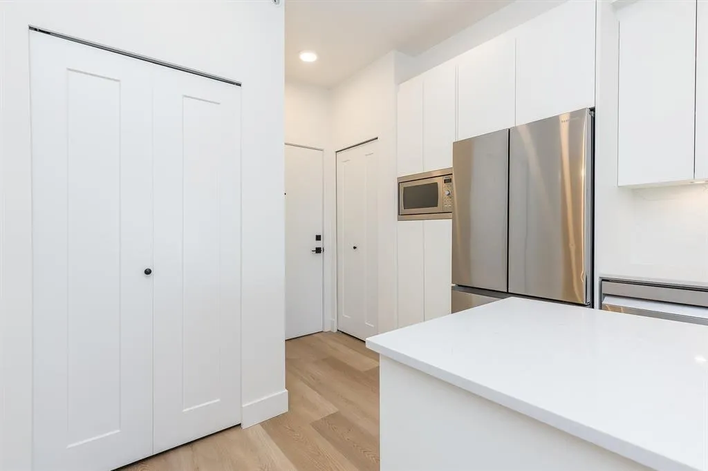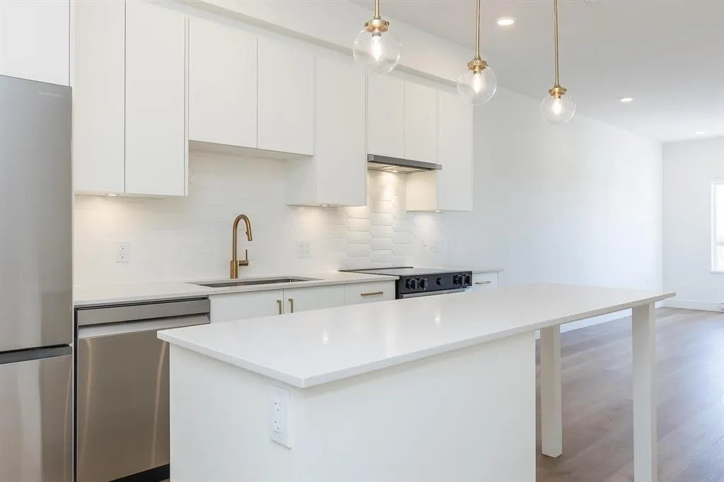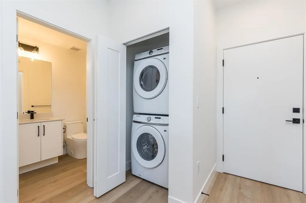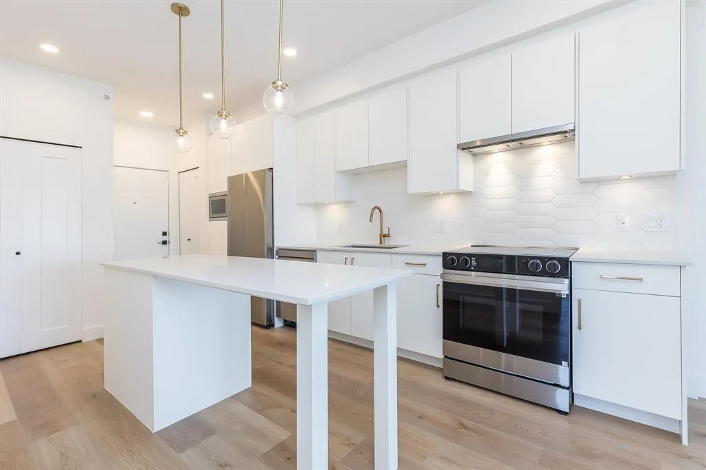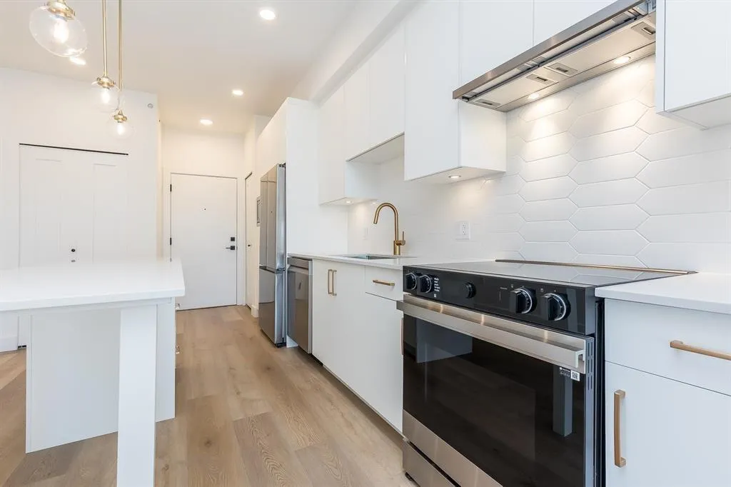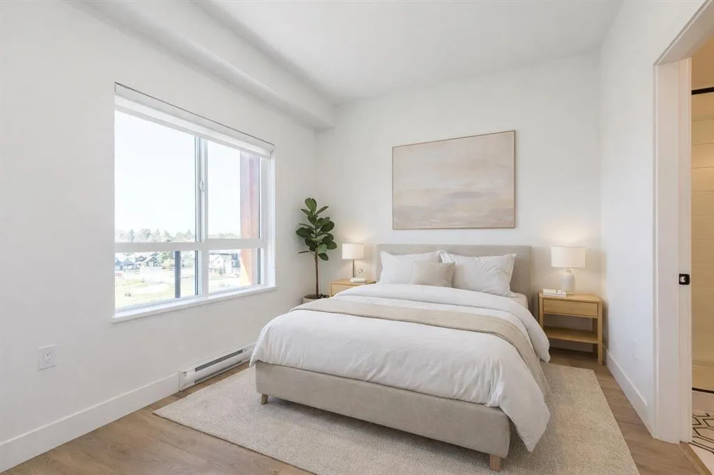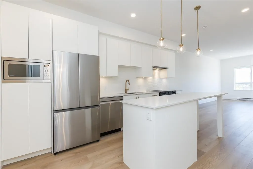 GST INCLUDED. This never-lived-in 2-bedroom, 2-full-bath home offers a bright and spacious 785 sq ft floor plan, a large deck, and stunning west-facing views. Located on the quiet side of the building, this top-floor end unit provides exceptional privacy with no neighbors above or beside. The modern interior features an island kitchen, quartz countertops, Samsung Energy Star stainless steel appliance package, in-suite washer and dryer, wide-plank flooring, roller blinds, and more. Building amenities include a private gym, games room, bike room, party room, and playground. Ideally situated in a prime central location just minutes to all levels of schools, transit, Willowbrook Mall, and everyday conveniences. Flexible possession dates available. (id:27476)