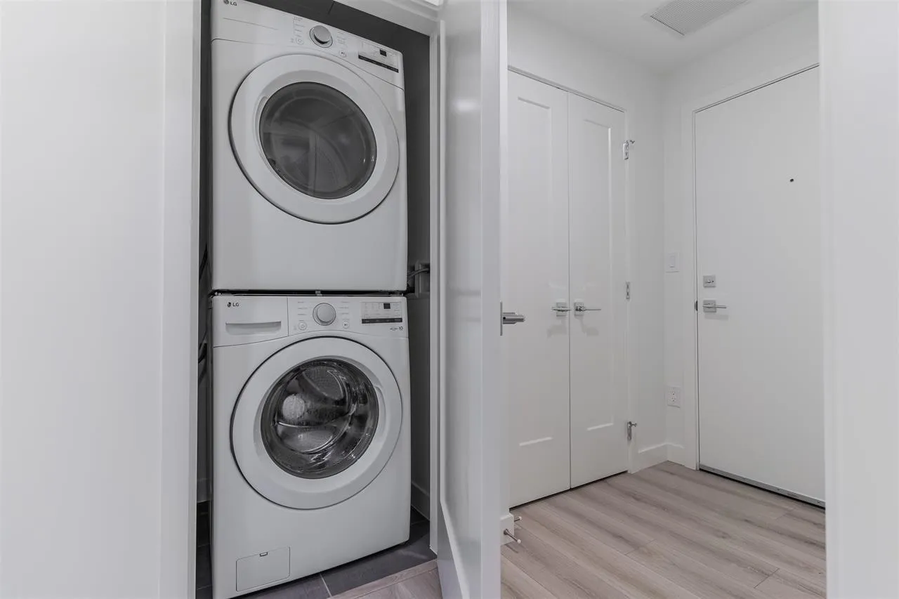 Stunning 1 bedroom + den home in the new Latimer Towers! This is Langley's first concrete high rise building and you don't want to miss out! This spacious floorplan holds 745 square feet of living space in addition to your 265+ square foot wraparound deck which showcases breathtaking views of both the mountains and city. There is an abundance of natural light from all the windows in the home and the concrete framing makes the building virtually soundproof. This unit also comes with a storage locker. Top end amenities in the building including dog wash, enclosed dog park, playground, hobby room/workshop room, putting green, gym and luxury lounge spaces. Not to mention, this building has low strata fees which also includes your gas, hot water and heating in the strata fees!! (id:27476)