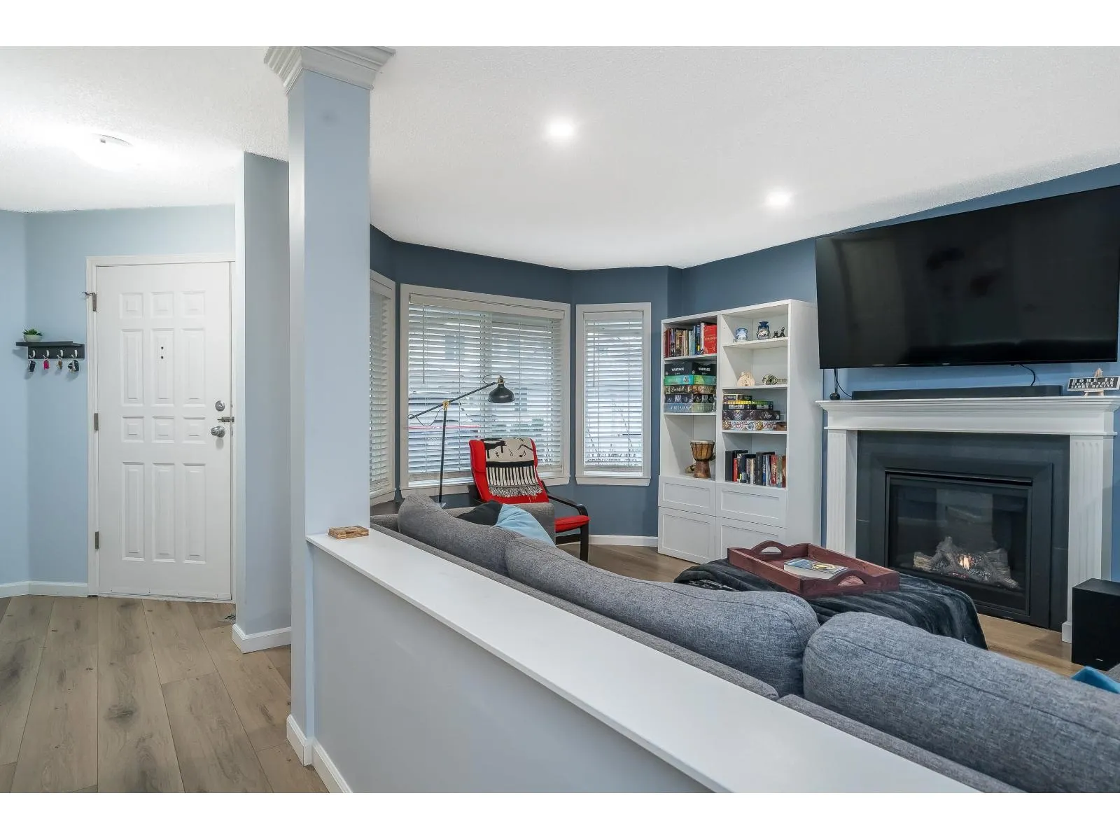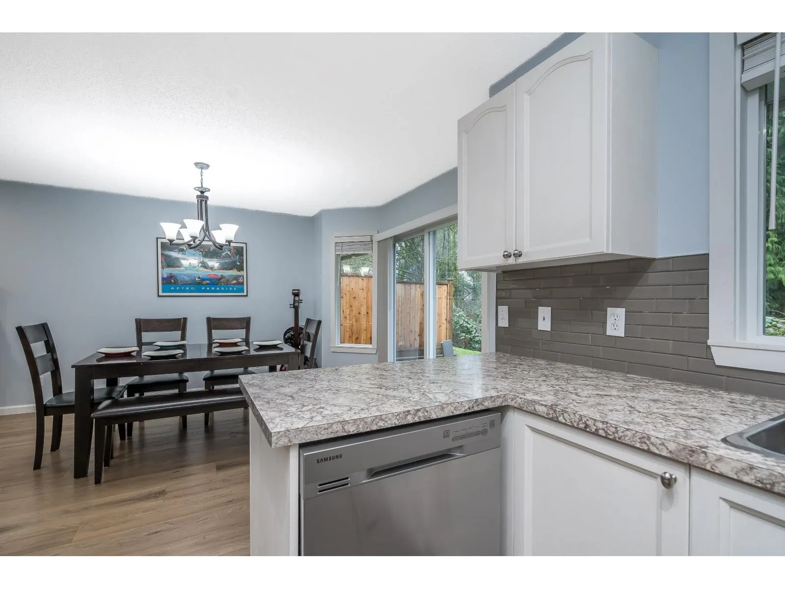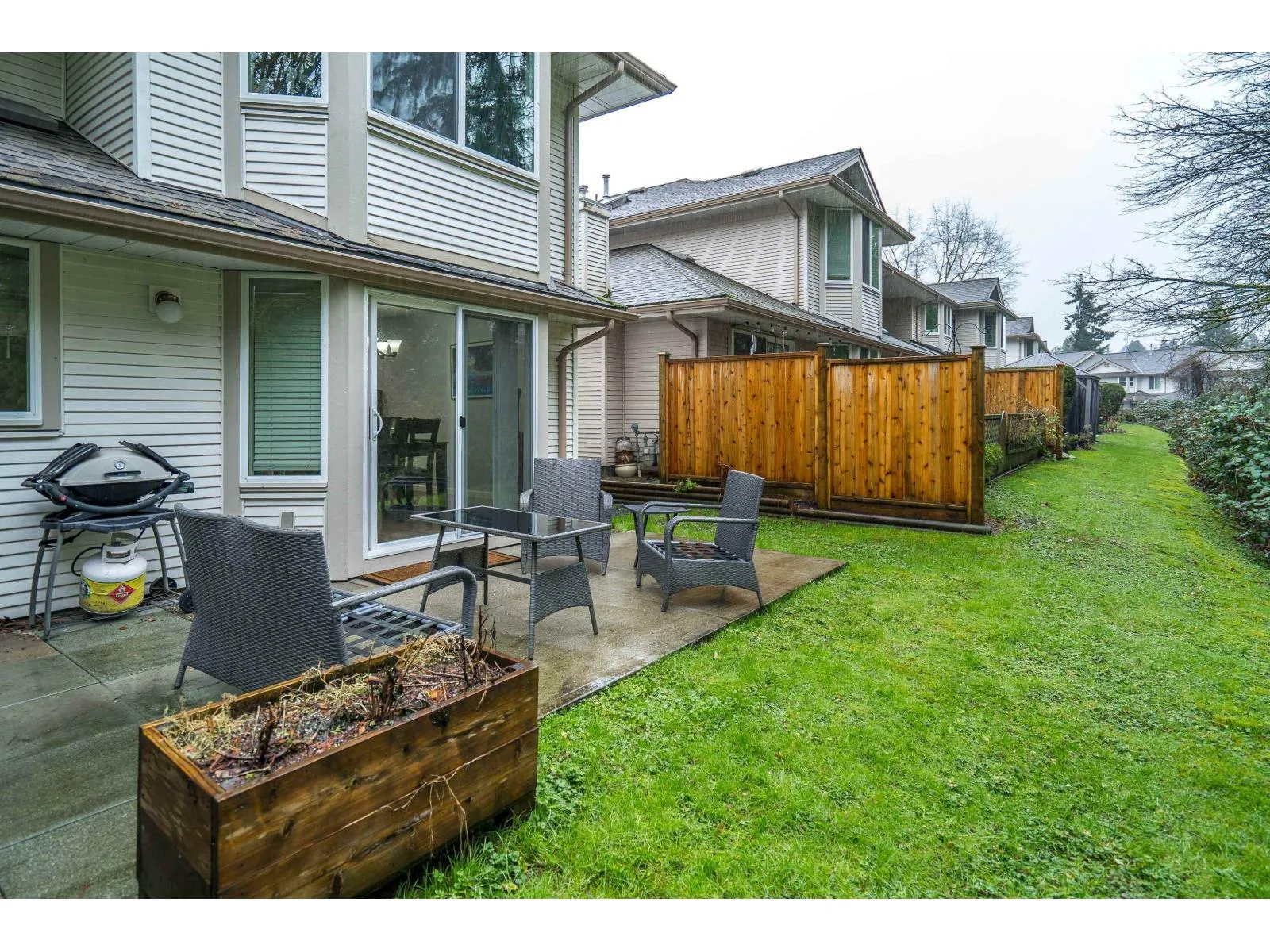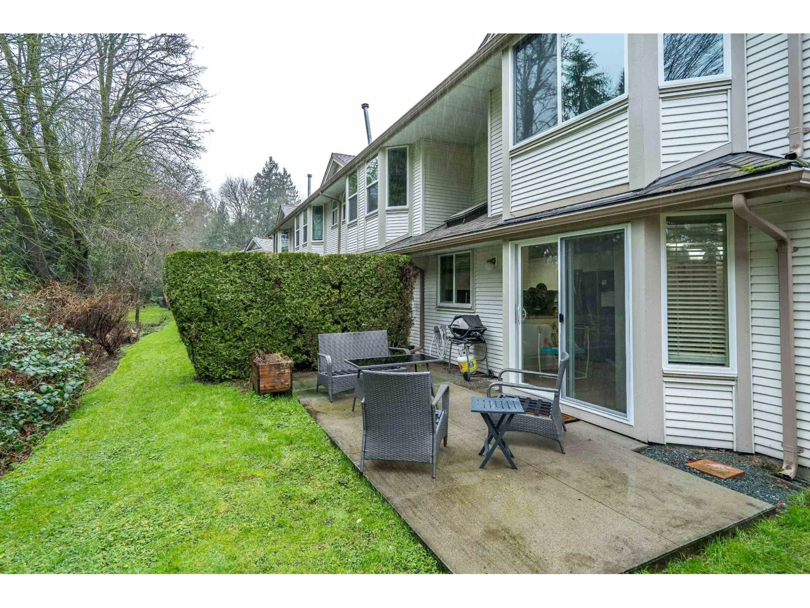 BRIDLEWOODS - in the heart of Walnut Grove. This 1,567 sq. ft. two-storey townhome offers an ideal layout and a preferred end-unit location backing onto a private greenbelt. The main floor features a spacious living and dining area with a cozy gas fireplace, updated laminate flooring, a 2-piece bathroom, and convenient in-suite laundry. The bright kitchen and eating nook open directly to the rear patio and yard-perfect for summer BBQs and entertaining. Upstairs you'll find 3 bedrooms, including a large primary suite, plus 2 full bathrooms. Parking includes a single garage and an additional spot right out front. Family and pet-friendly complex in a prime location close to schools, shopping, restaurants, and parks. (id:27476)