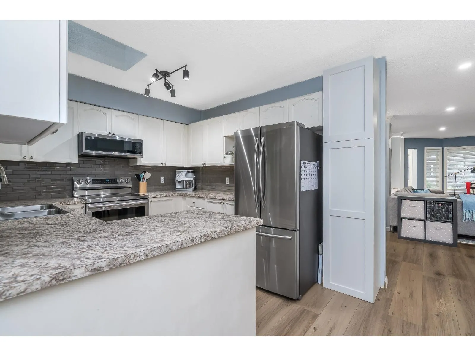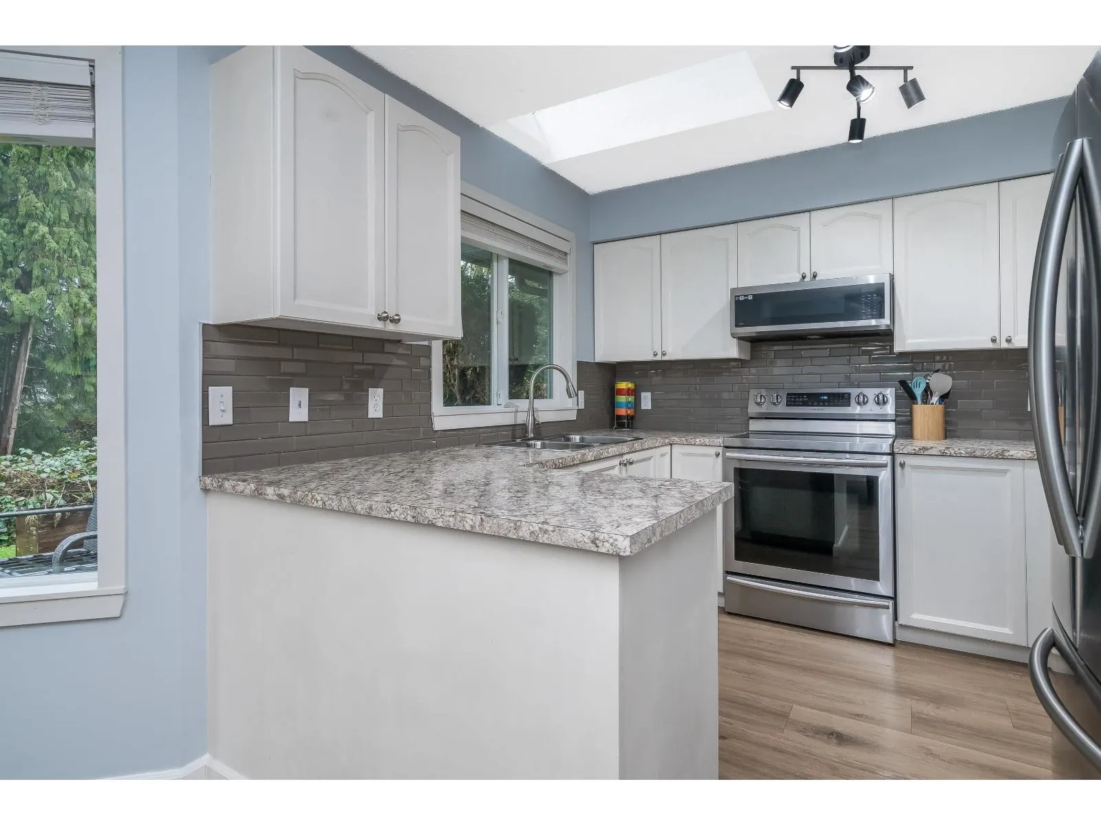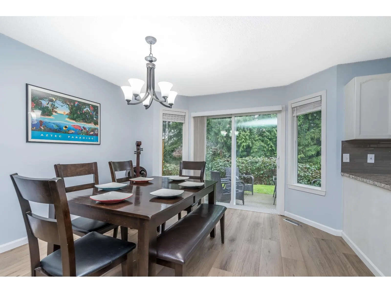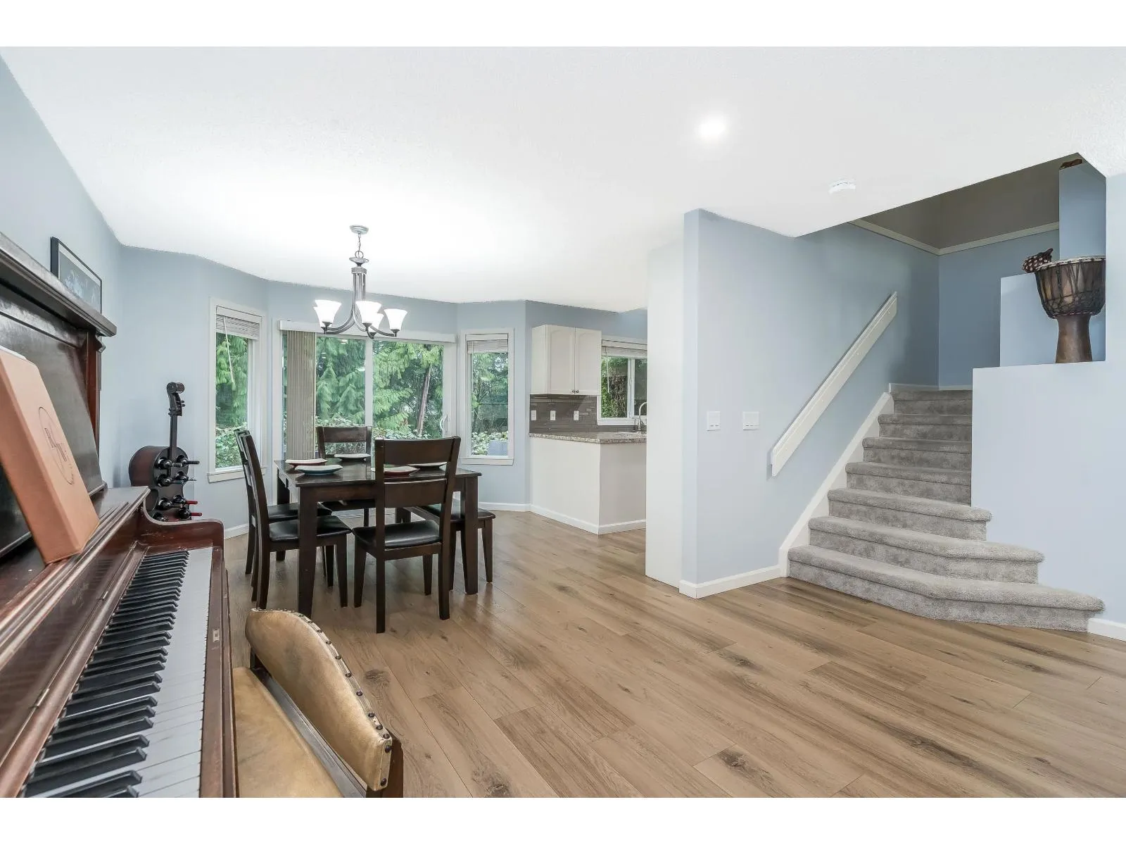 BRIDLEWOODS - in the heart of Walnut Grove. This 1,567 sq. ft. two-storey townhome offers an ideal layout and a preferred end-unit location backing onto a private greenbelt. The main floor features a spacious living and dining area with a cozy gas fireplace, updated laminate flooring, a 2-piece bathroom, and convenient in-suite laundry. The bright kitchen and eating nook open directly to the rear patio and yard-perfect for summer BBQs and entertaining. Upstairs you'll find 3 bedrooms, including a large primary suite, plus 2 full bathrooms. Parking includes a single garage and an additional spot right out front. Family and pet-friendly complex in a prime location close to schools, shopping, restaurants, and parks. (id:27476)
