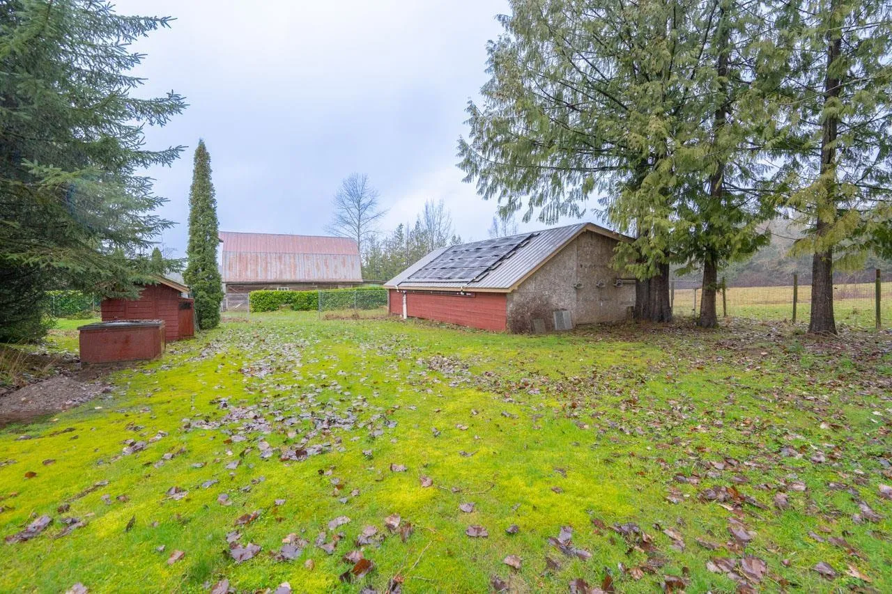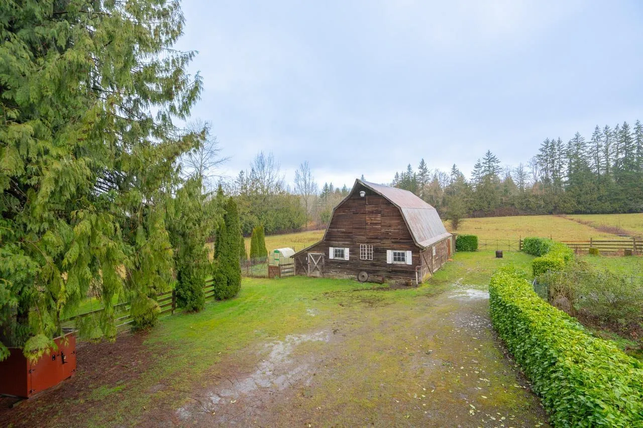 Rare opportunity to own a flat and usable 4.73 acre rectangular property with no creeks, on a quiet no-thru road. Well maintained 3,323 sf 2-storey home with basement, workshop and barn offers privacy and a peaceful country setting. Upper level features 4 beds and 2 baths. Main floor includes spacious living and dining areas, family room, kitchen with nook, laundry and powder room. Basement offers rec room, flex and utility space. Enjoy a 35x17 heated pool with solar panels. Updates include Navien hot water heating, gutters, windows, renovated baths, quality appliances, hardwood floors and granite counters. Bonus 887 sf shop/garage w/50amp service, barn 20amp, and garden shed 20amp. Plus a 620 sf unfinished coach house ready for your ideas. Minutes to Thunderbird, Hwy 1 and Fort Langley. (id:27476)