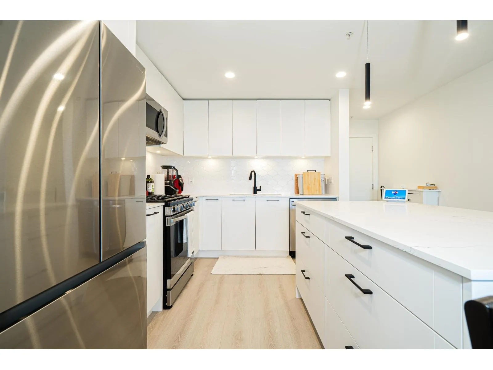 Welcome to Latimer Village by Vesta - a vibrant master-planned community in the heart of Langley. This modern 2-bedroom + 2-bath home offers an efficient open layout with 821 sq.ft. of living space, featuring high ceilings, large windows, and stylish contemporary finishes. The gourmet kitchen boasts quartz countertops, stainless steel appliances, gas range, and ample cabinetry, flowing seamlessly into the bright living and dining areas-perfect for everyday living and entertaining.The primary bedroom includes a walk-through closet and spa-inspired ensuite, while the second bedroom is ideal for family, guests, or a home office. Enjoy year-round comfort with air conditioning and a spacious covered balcony overlooking the community.selling for below presale price! (id:27476)