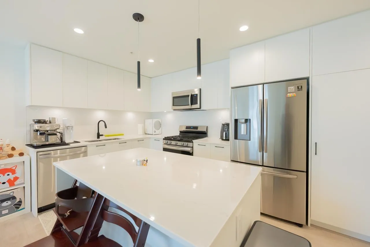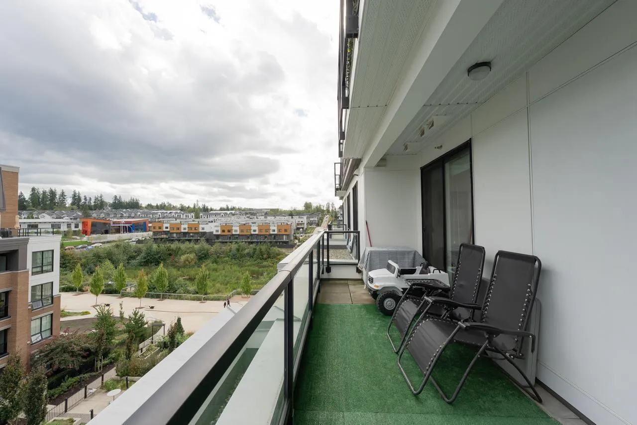 Welcome to Latimer Village by VESTA Properties. This stunning, well-maintained 2-bedroom, 2-bathroom plus den unit offers spacious living with large windows, 9' ceilings, quartz countertops, and high-end appliances. Enjoy the open-concept design filled with ample natural light. The large patio, accessible from both bedrooms, is perfect for sunbathing and enjoying summer days. An oversized parking stall is an added bonus. You'll appreciate the walking distance to Carvolth Exchange, restaurants, Josette Dandurand Elementary, Yorkson Creek Middle School, and R.E. Mountain Secondary. Plus, you're conveniently close to Highway 1, Costco, Walmart, Willowbrook Mall, and Willoughby Town Centre. (id:27476)
