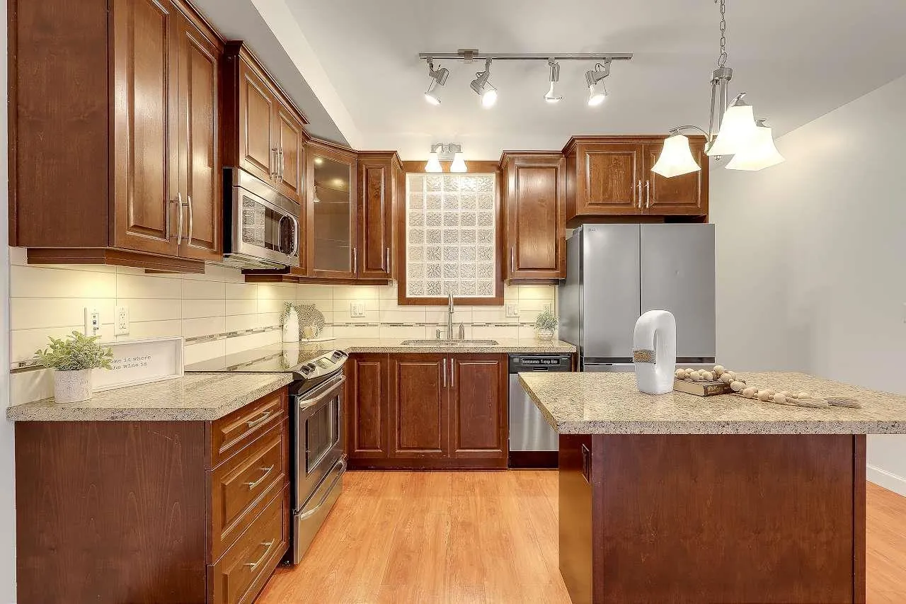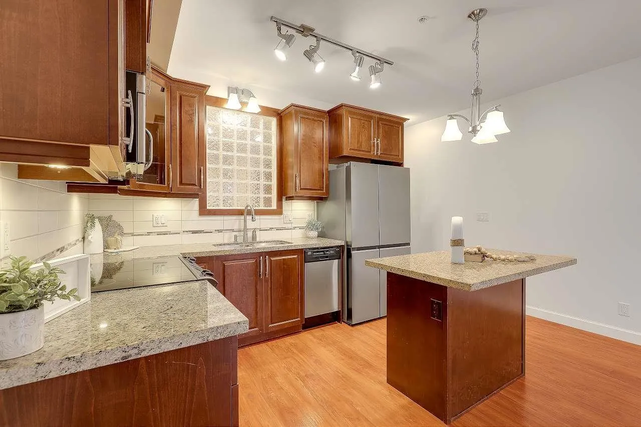 SPACIOUS 585 sqft/ SUB-PENT 1 BED+1 BATH situated in the ever popular Yorkson at Walnut Ridge!! This unit is perfect for first home buyers or investors! Newly painted-Jan 2026 / NEW carpet in bedroom-Jan 2026 & Fridge-Dec 2024. It features an open concept w/gourmet kitchen finished w/granite countertops, stainless steel appliances & island for added seating. Sliding doors in Living Room open up to your very own private South facing solarium, perfect for private relaxation after work. HEAT PUMP/AC , 2 PARKINGS + 1 rolling door storage, EV charger rough-in in the storage, All situated just steps to shopping, amenities, transit, parks, dog parks, schools, trails & much more!! Unit has 2 parking stalls & a separate storage locker w/rollup door & electricity. Ready for quick possession! (id:27476)