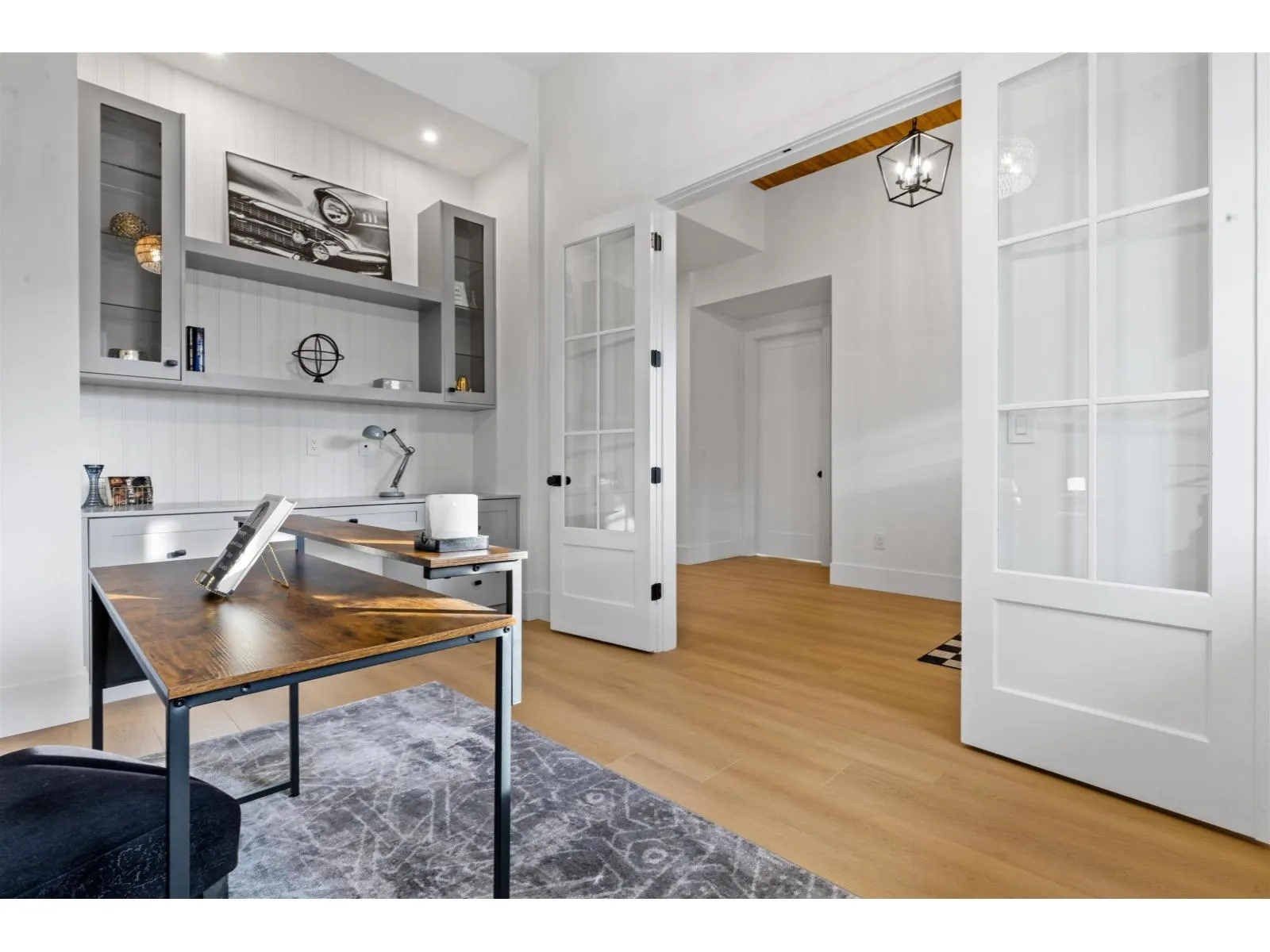 A rare brand new residence offering refined main-level living in the heart of Brookswood, Langley. This modern farmhouse-inspired, rancher-style home with an additional loft and bedroom upstairs is thoughtfully designed with all primary living spaces on the main floor, providing exceptional convenience with no stairs required for daily living. Offering 5 bed & 4 bath, the home is set on a quiet street on a beautifully landscaped and fully irrigated 13,000sf lot. Vaulted ceilings, bespoke millwork, and curated designer finishes define this home. A chef's kitchen with prep kitchen, dedicated office, and seamless indoor-outdoor living with a covered patio and fully equipped outdoor kitchen create an exceptional entertaining experience. Features rare garage parking for 5 vehicles. Bonus shop! (id:27476)