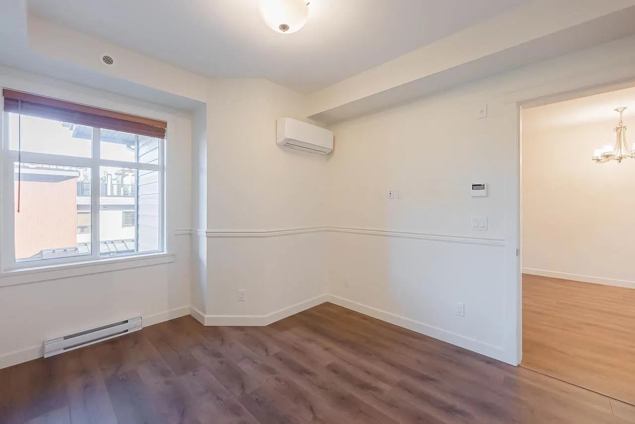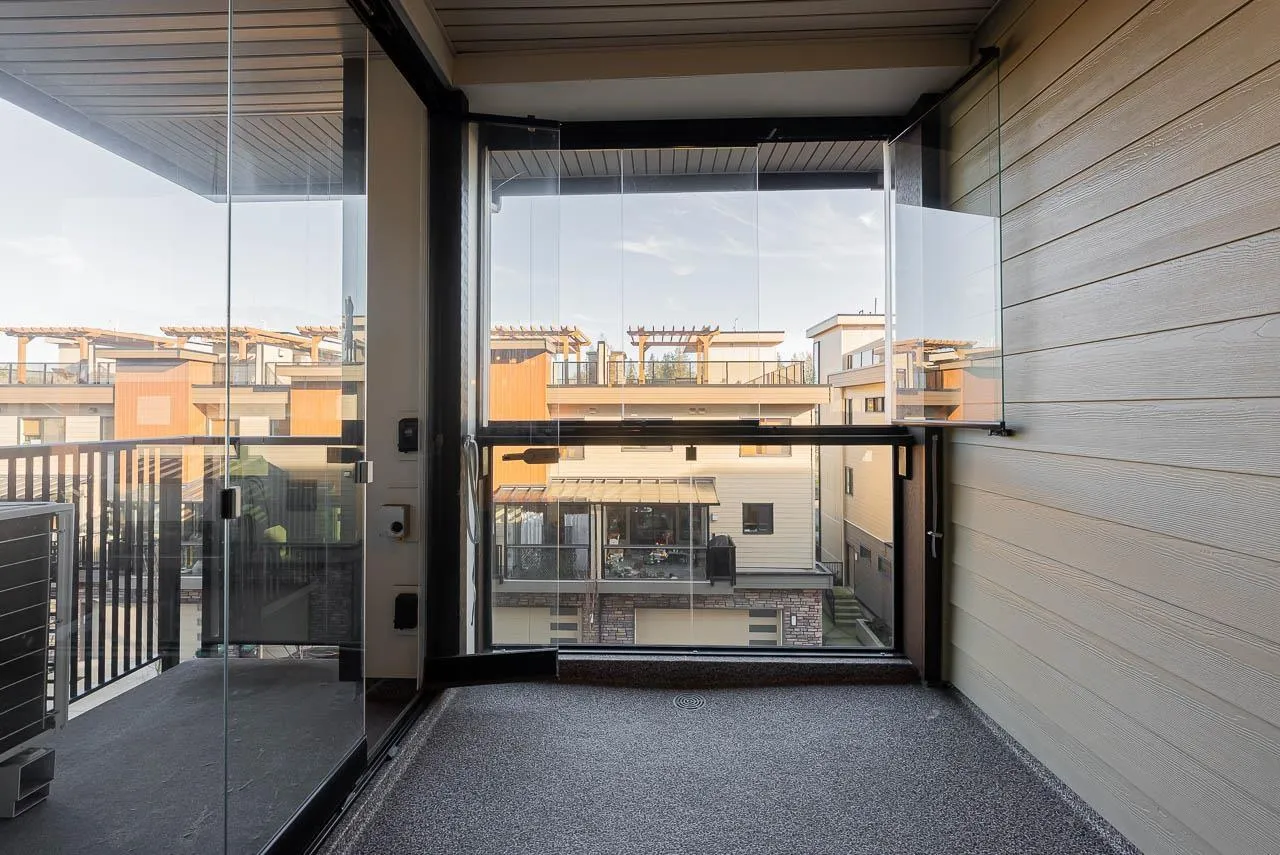 "LIKE NEW" at Yorkson Park! Stunning 2 Bed + 2 Bath + DEN (with door!) featuring energy-efficient A/C HEAT PUMPS in every room for year-round comfort. The highlight is the SOUTH-FACING GLASS SOLARIUM with retractable glass, ceiling fan, fireplace & BBQ hookup-perfect for entertaining in any season. Premium finishings include laminate flooring throughout, heated tile floors in bathrooms & built-in safe. Complete with 2 PARKING STALLS & MASSIVE ROLL-UP STORAGE LOCKER. Excellent complex offering a gym, rec room, playground & water park. Prime location steps to Carvolth Exchange & Hwy 1. A must see! (id:27476)