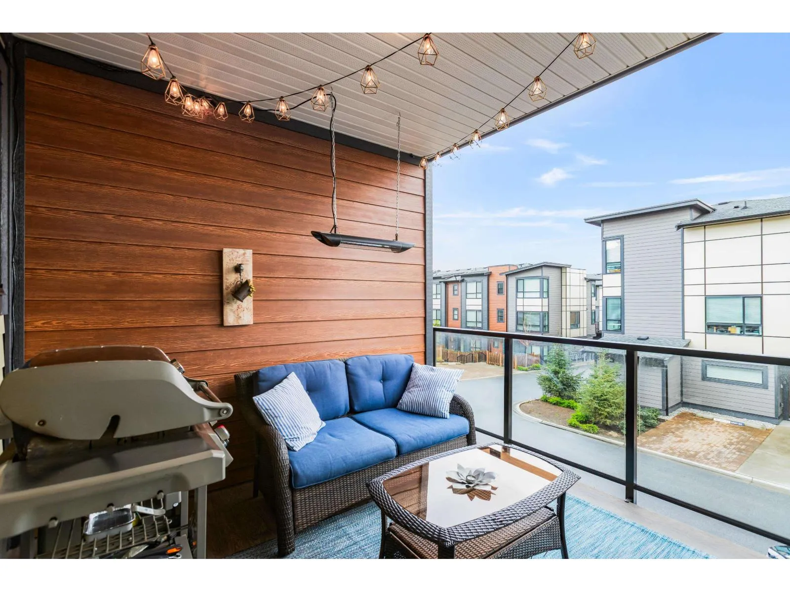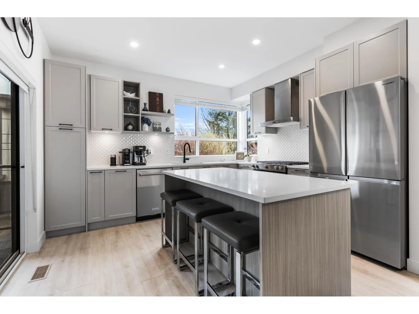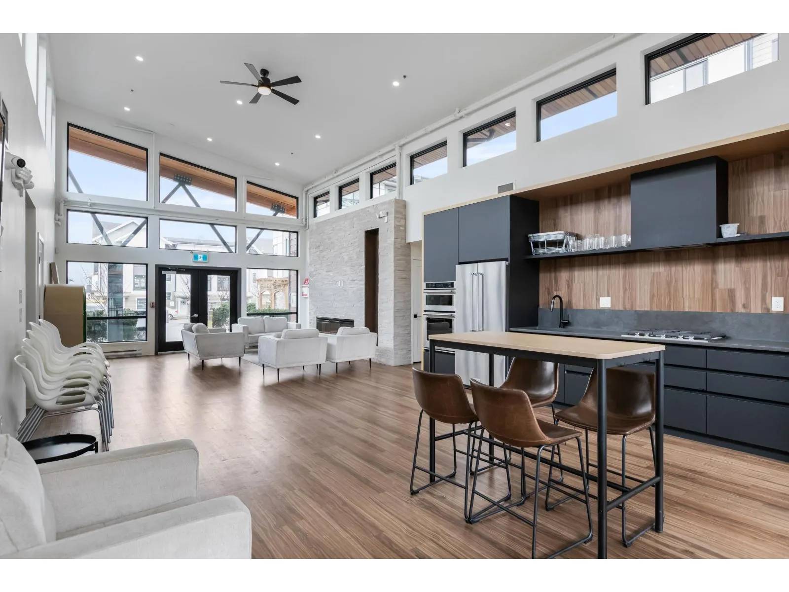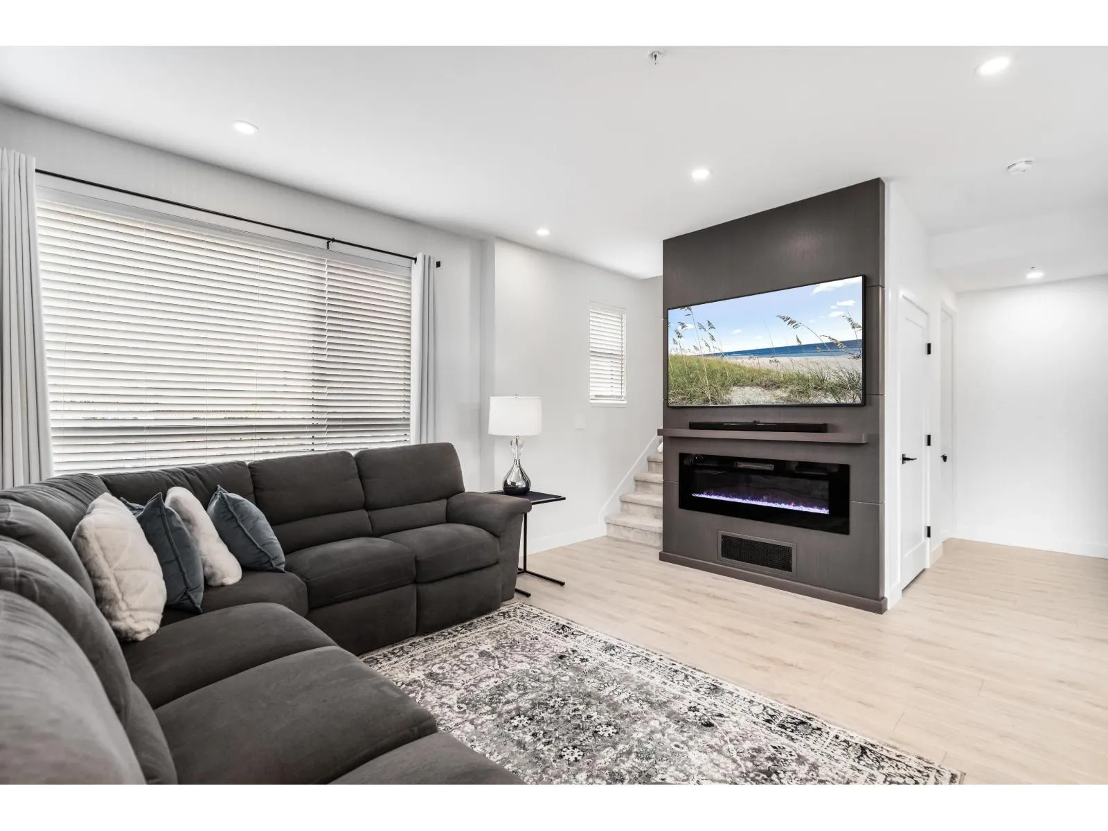 Welcome to Verge, a stunning end-unit townhouse built in 2023 with show-home quality finishes. This 3 bdrm home offers A/C & lower-floor office with built-in desk. The open-concept main floor features a gourmet kitchen with large island, gas stove, S/S appliances, built-in microwave & ample cabinetry & counter space. Built-in dining cabinetry with light-up wine display complements the living room with feature wall & electric F/P. Upstairs, the primary bdrm features a coffered ceiling, wall paneling, chandelier, electric fireplace & walk-in closet with full cabinetry + a luxurious 4 pc ensuite with double sinks & stand-up shower. 2 additional bdrms, 4 pc bath & large double garage with textured floor, cabinets & shelves complete the home. Ideally located in Langley, close to all amenities. (id:27476)