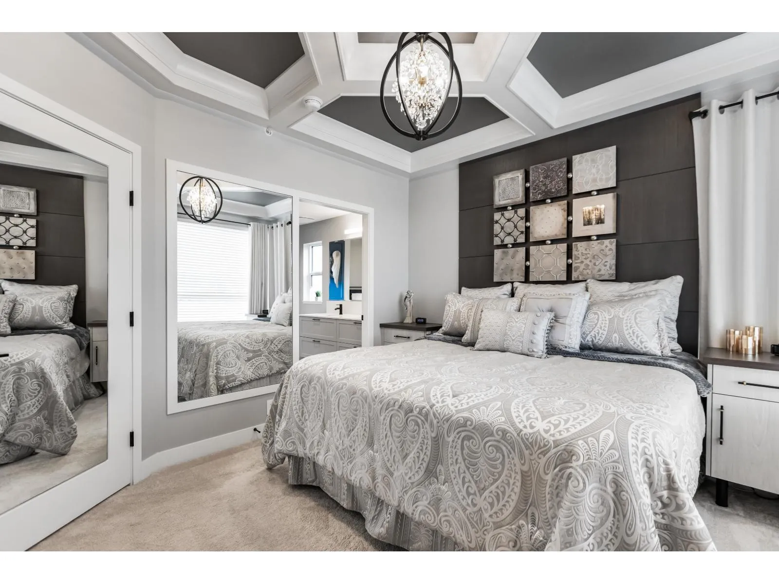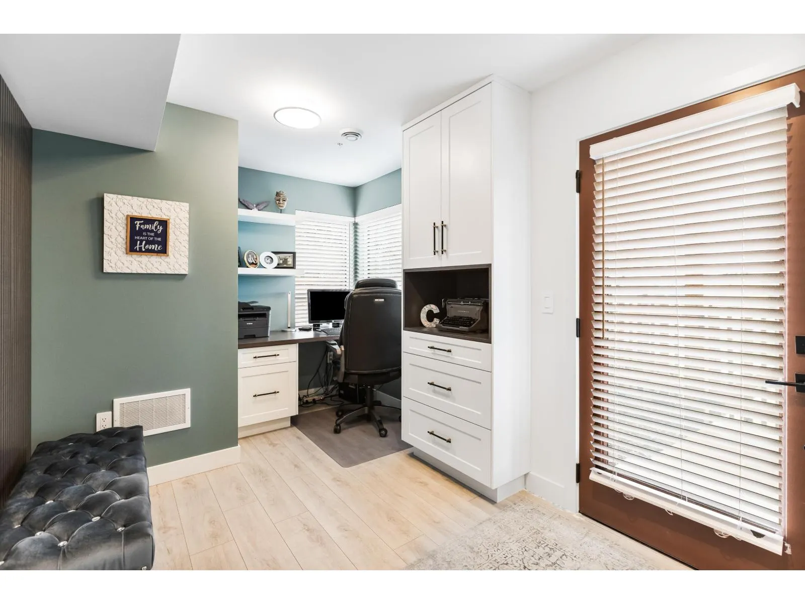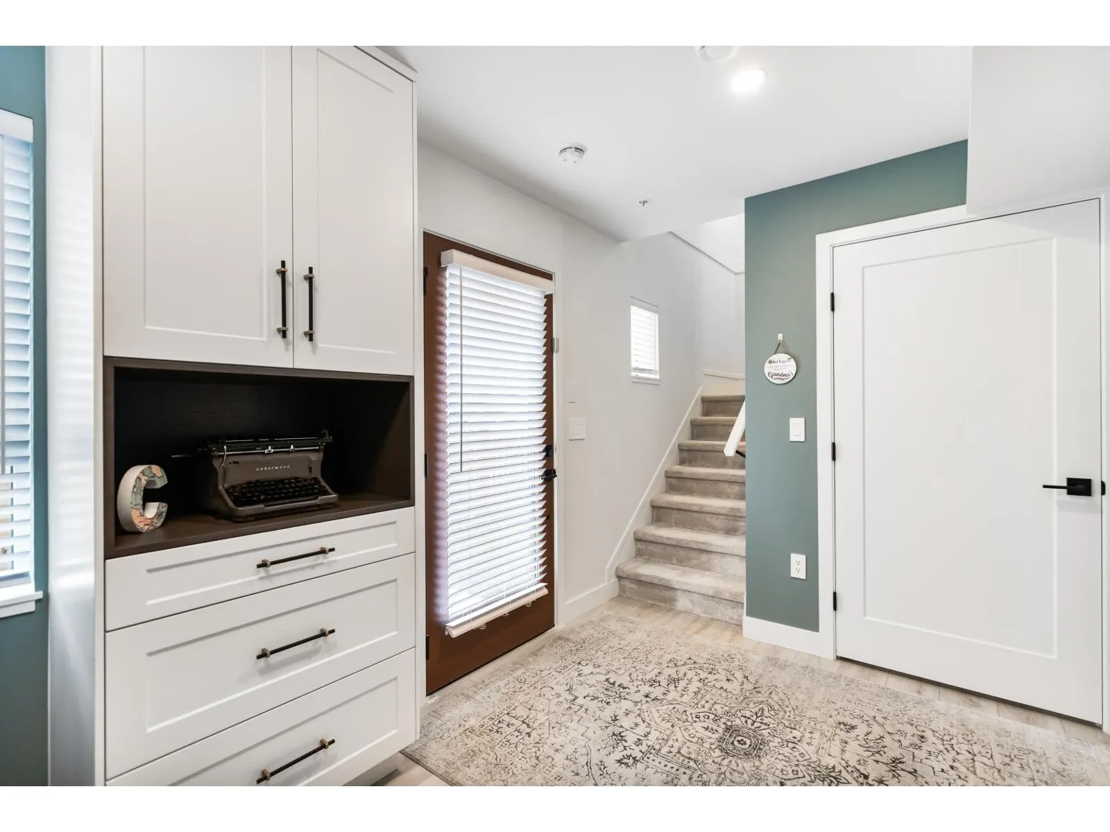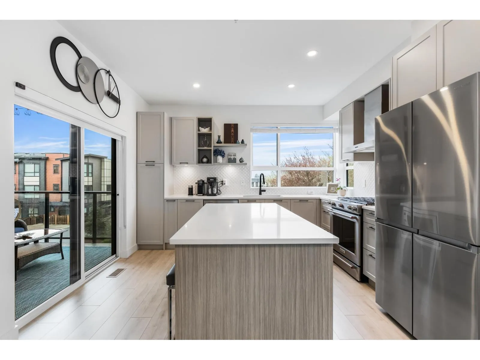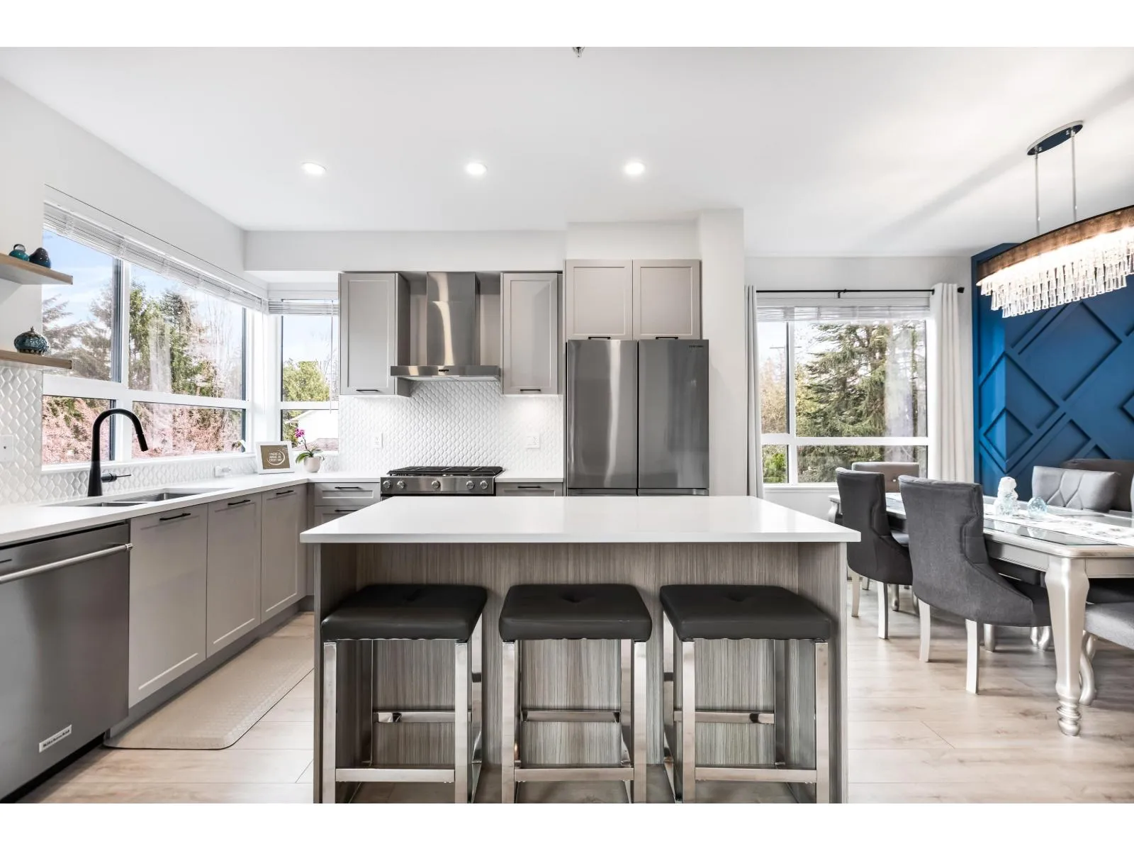 Welcome to Verge, a stunning end-unit townhouse built in 2023 with show-home quality finishes. This 3 bdrm home offers A/C & lower-floor office with built-in desk. The open-concept main floor features a gourmet kitchen with large island, gas stove, S/S appliances, built-in microwave & ample cabinetry & counter space. Built-in dining cabinetry with light-up wine display complements the living room with feature wall & electric F/P. Upstairs, the primary bdrm features a coffered ceiling, wall paneling, chandelier, electric fireplace & walk-in closet with full cabinetry + a luxurious 4 pc ensuite with double sinks & stand-up shower. 2 additional bdrms, 4 pc bath & large double garage with textured floor, cabinets & shelves complete the home. Ideally located in Langley, close to all amenities. (id:27476)