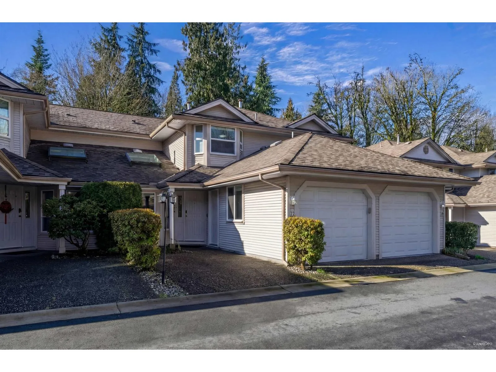 Clean & bright 2 level, 2 bed, 2 1/2 bath, 1500 sq ft townhome in excellent Walnut Grove location in Bridlewoods w/quiet backyard facing greenbelt. This North/South facing home features solid & engineered hardwood flooring, kitchen w/vaulted ceiling & skylight, large living & dining rooms overlooking the patio & greenspace, spacious laundry & powder room on the main. The 2nd level boasts 2 large separated bedrooms w/custom walk-in & office organizers & 2 full baths. Family & pet friendly, single garage & open spot in front. Great location close to James Kennedy Elem, Walnut Grove Sec, Community Centre pool, trails, transit, parks, water park, tennis courts, library, community garden & shopping. Easy access to Hwy #1, Golden Ears Bridge and Carvolth Exchange.Offers as they come (id:27476)