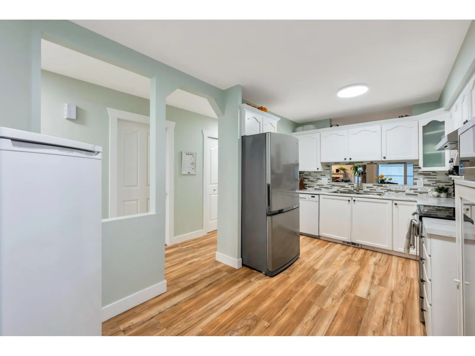 Welcome to this beautifully updated townhome in the Bridlewoods! This 3 bedroom/ 3 bathroom 2-storey home is thoughtfully renovated with modern finishings. Enjoy the refreshed living space with New windows (2023), updated lighting and the popcorn ceiling smoothed for a clean look. Completely repainted and New laminate flooring throughout. The bathrooms have been tastefully upgraded including the main bath with new flooring, vanity & fully remodeled powder room. Other features include a gas fireplace, New hot water tank (2024), New kitchen faucet and single car garage w/ a 2nd parking spot out front. With an amazing central Walnut Grove location this one is a must see! (id:27476)