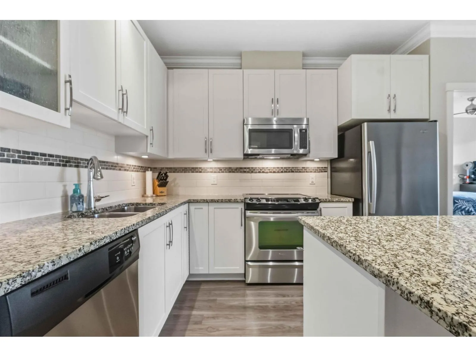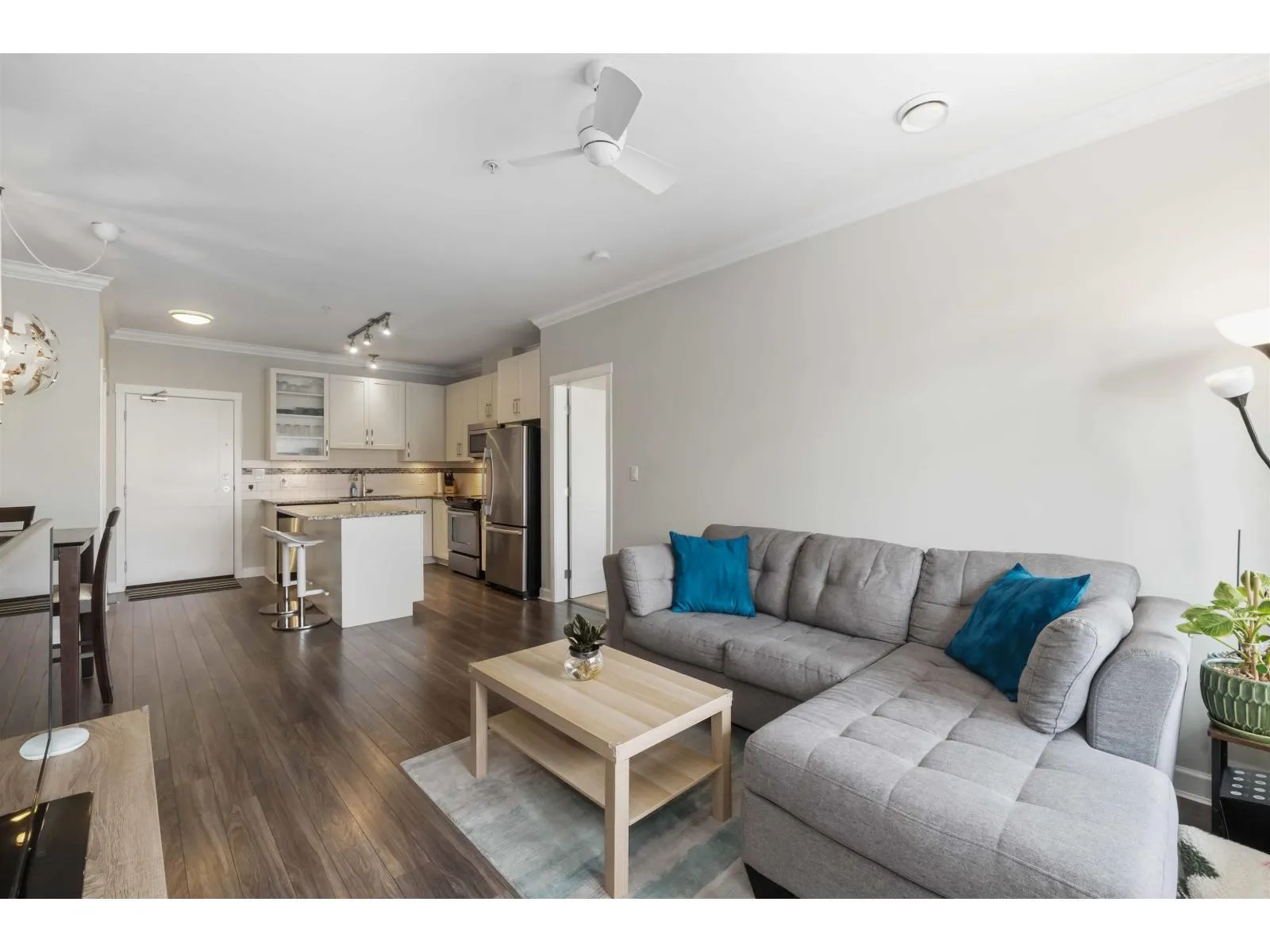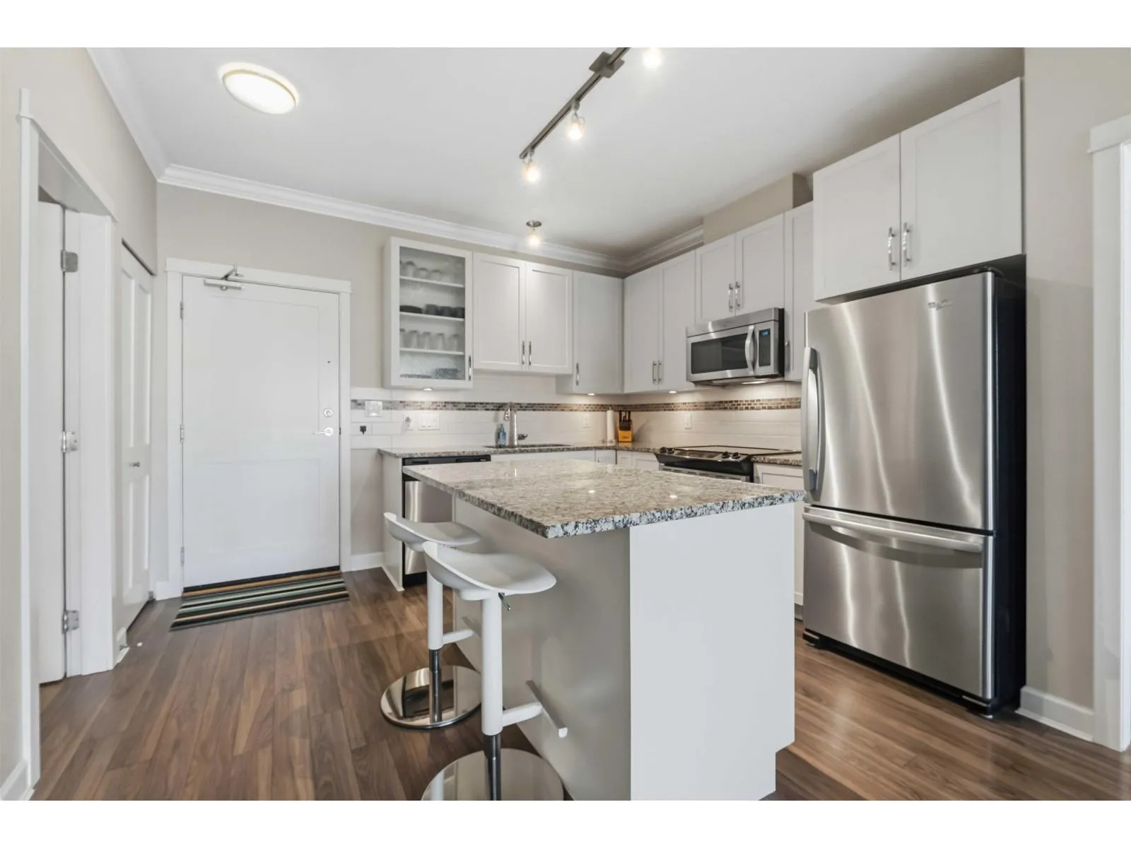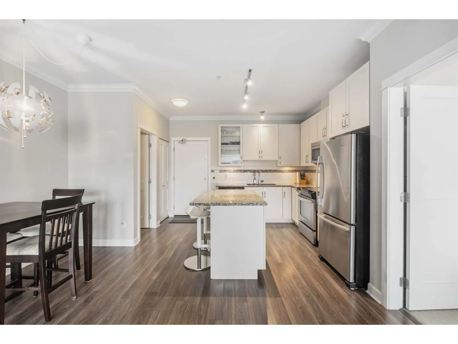 Welcome to the sought-after Athenry Gate in Willoughby Heights. This bright second-floor 2 bed, 2 bath + DEN home offers a smart 942 sq ft layout with 9' ceilings, crown mouldings, granite counters, stainless steel appliances, soft-close cabinetry, and a clean, contemporary colour scheme. The second bedroom is thoughtfully positioned on the opposite side of the suite for added privacy. Enjoy a large balcony, 2 underground parking stalls, a separate storage locker, and 2 high-speed elevators. Pet-friendly (2 dogs, 2 cats, or 1 of each). Walk to Lynn Fripps Elementary, Yorkson Creek Middle, parks, shops, cafes, and transit. Minutes to HWY 1, Willoughby Town Centre, and the Langley Events Centre. Book your private showing today! (id:27476)