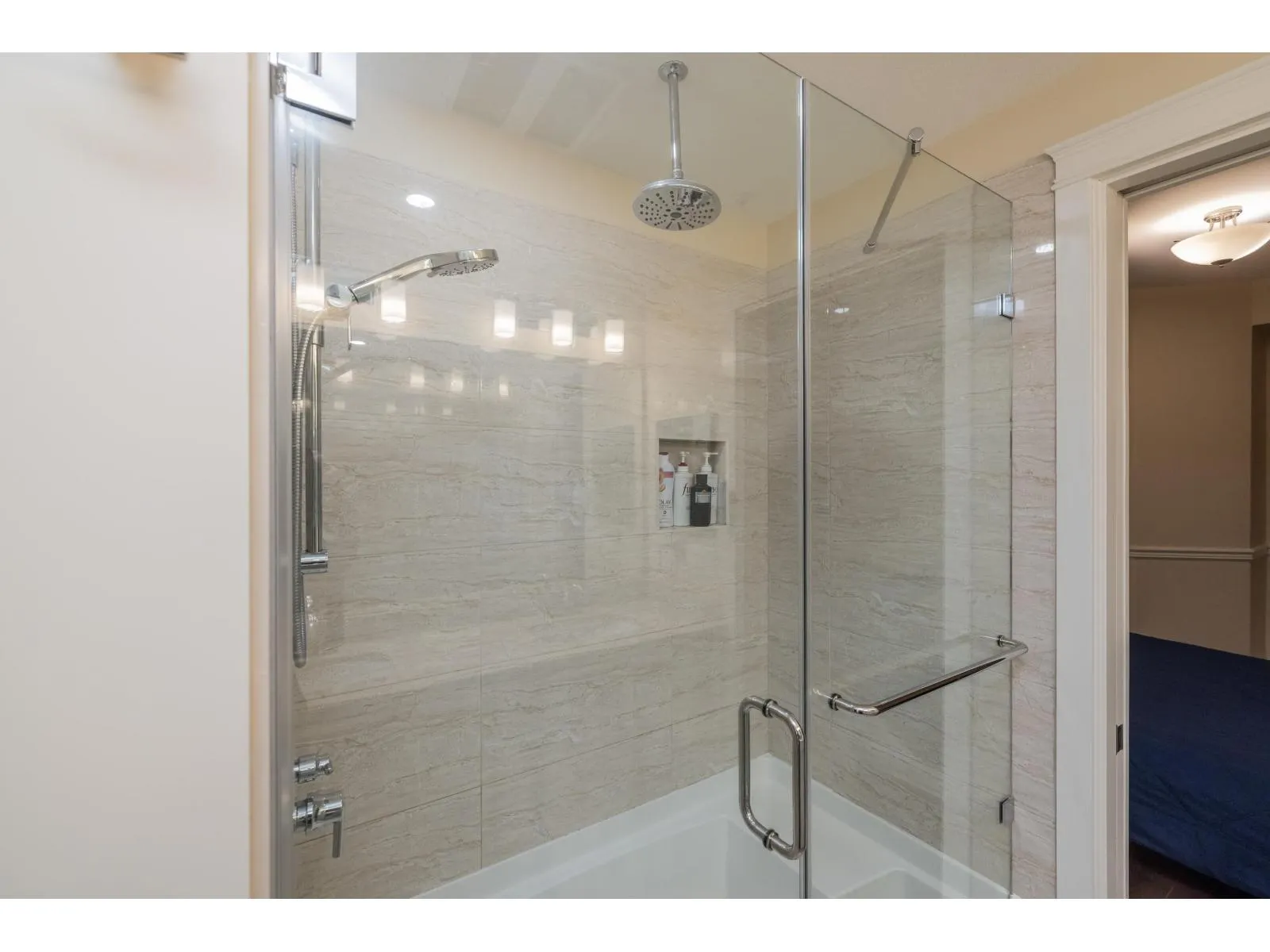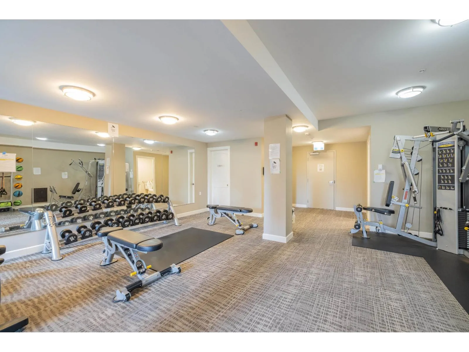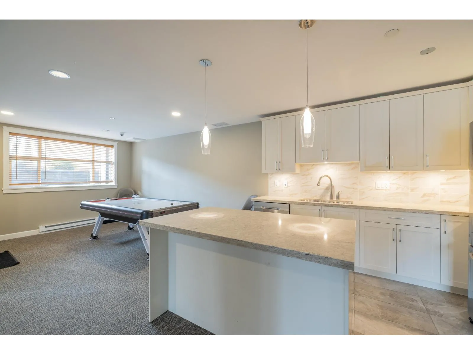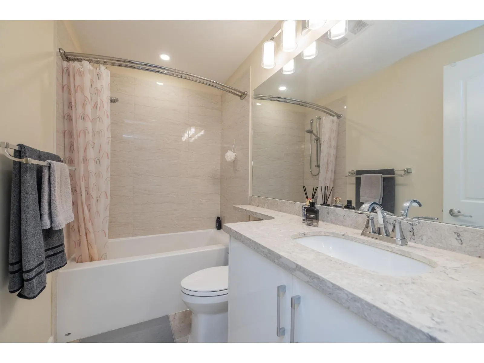 Welcome to Yorkson Park! This 2 bed + flex home offers modern style and smart function in a quality-built, only 4-year-old building. The gourmet kitchen features quartz counters, stainless appliances, and a gas range. Enjoy year-round comfort with A/C, an electric fireplace, and heated bathroom floors. The flex space is ideal for a home office or extra storage. An enclosed solarium expands your living area and overlooks the quiet courtyard. Bonus: 2 parking stalls + secure storage. Steps to shops, restaurants, Carvolth Exchange, and quick Hwy 1 access. (id:27476)