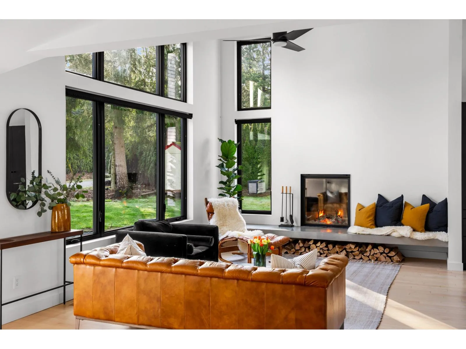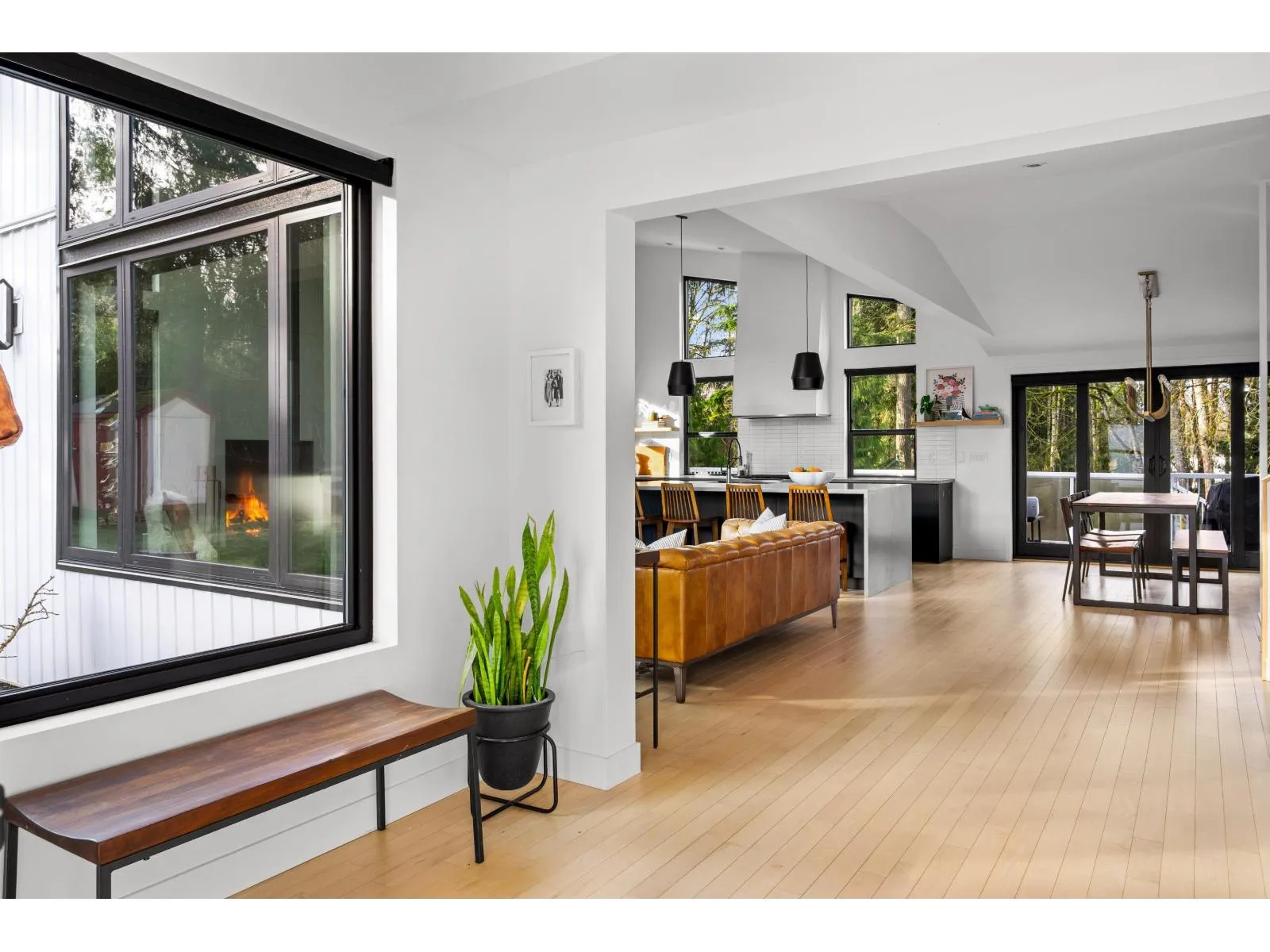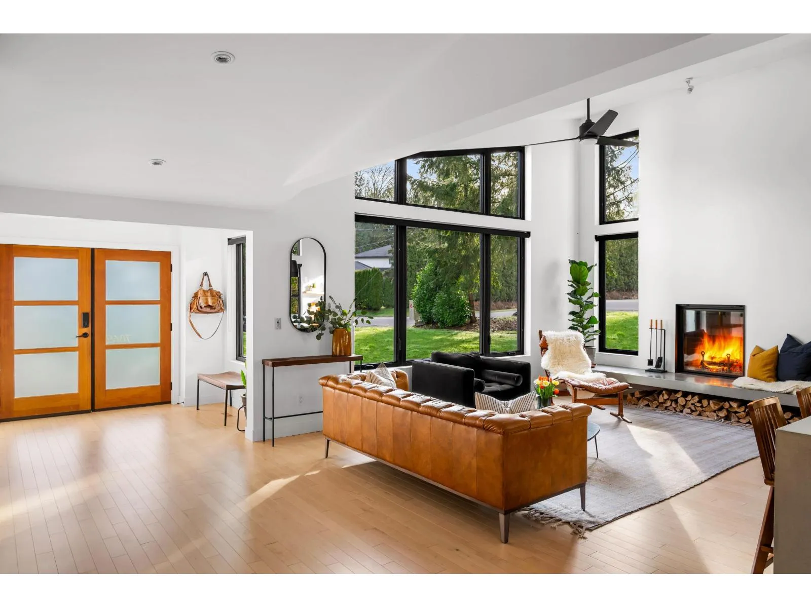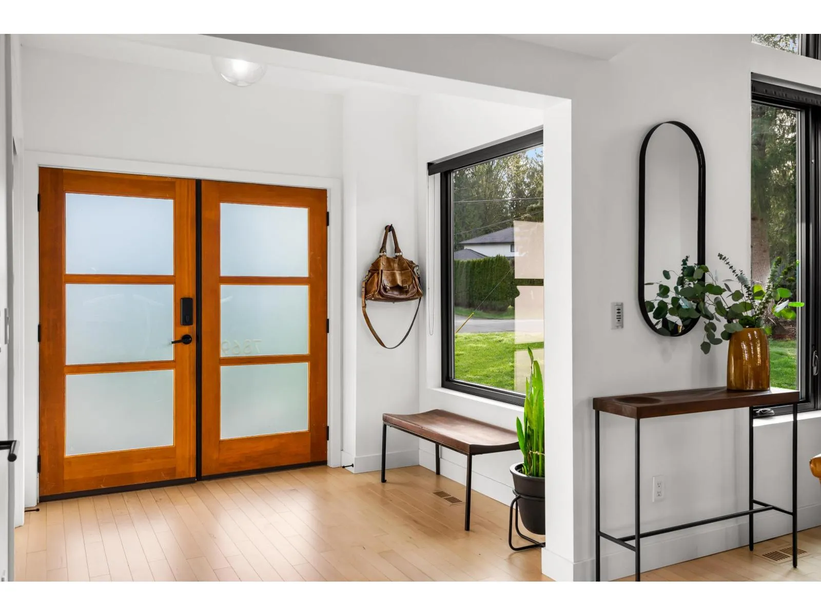 Set in the highly desirable Forest Knolls neighbourhood, this architect-designed home offers peaceful country privacy just minutes from Fort Langley with easy highway access. Natural light fills the home, highlighting maple hardwood floors, designer fixtures, and premium appliances including a Fisher & Paykel fridge, KitchenAid 36-inch dual-fuel range, and Miele dishwasher. The primary suite features a nearly 6-foot solid-surface soaker tub and sunset views through private backyard trees. A separate ground-level entrance offers flexible space for guests, family, or potential revenue. Professionally renovated in 2019 with an attached double garage, updated electrical and plumbing, 200-amp service, RV hookups, on-demand hot water, and a high-efficiency wood-burning fireplace. (id:27476)