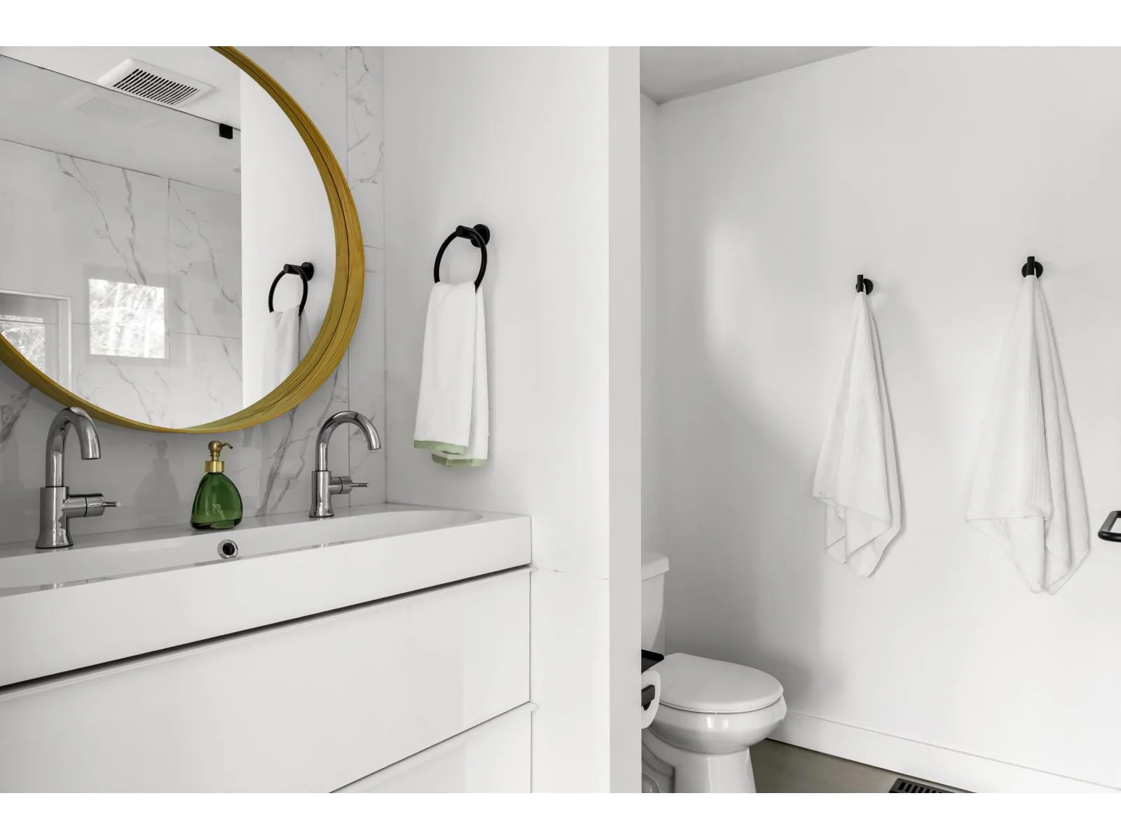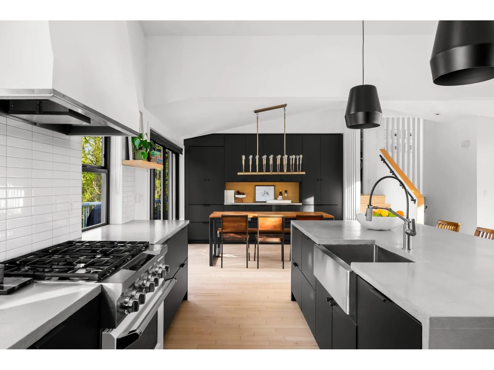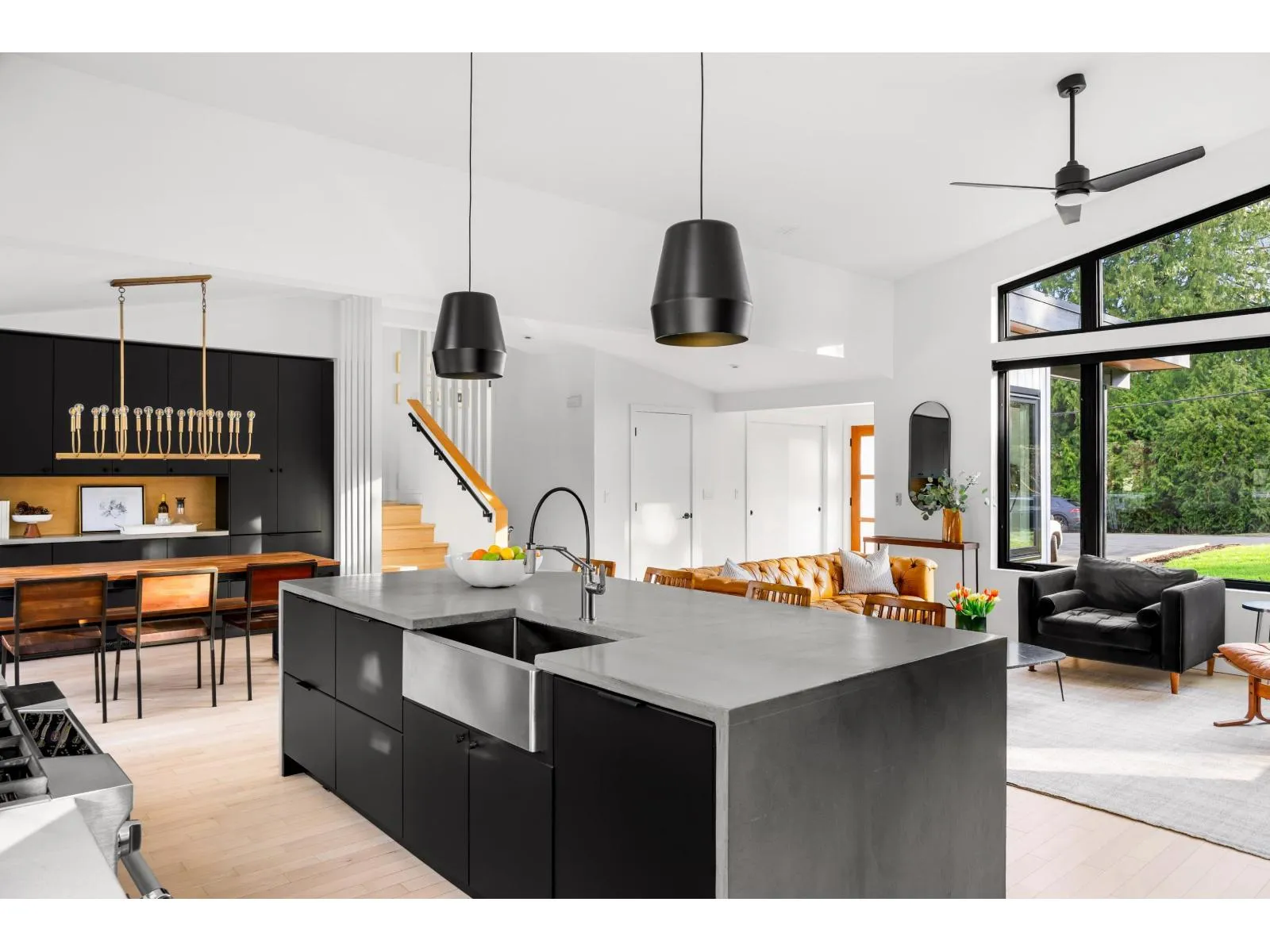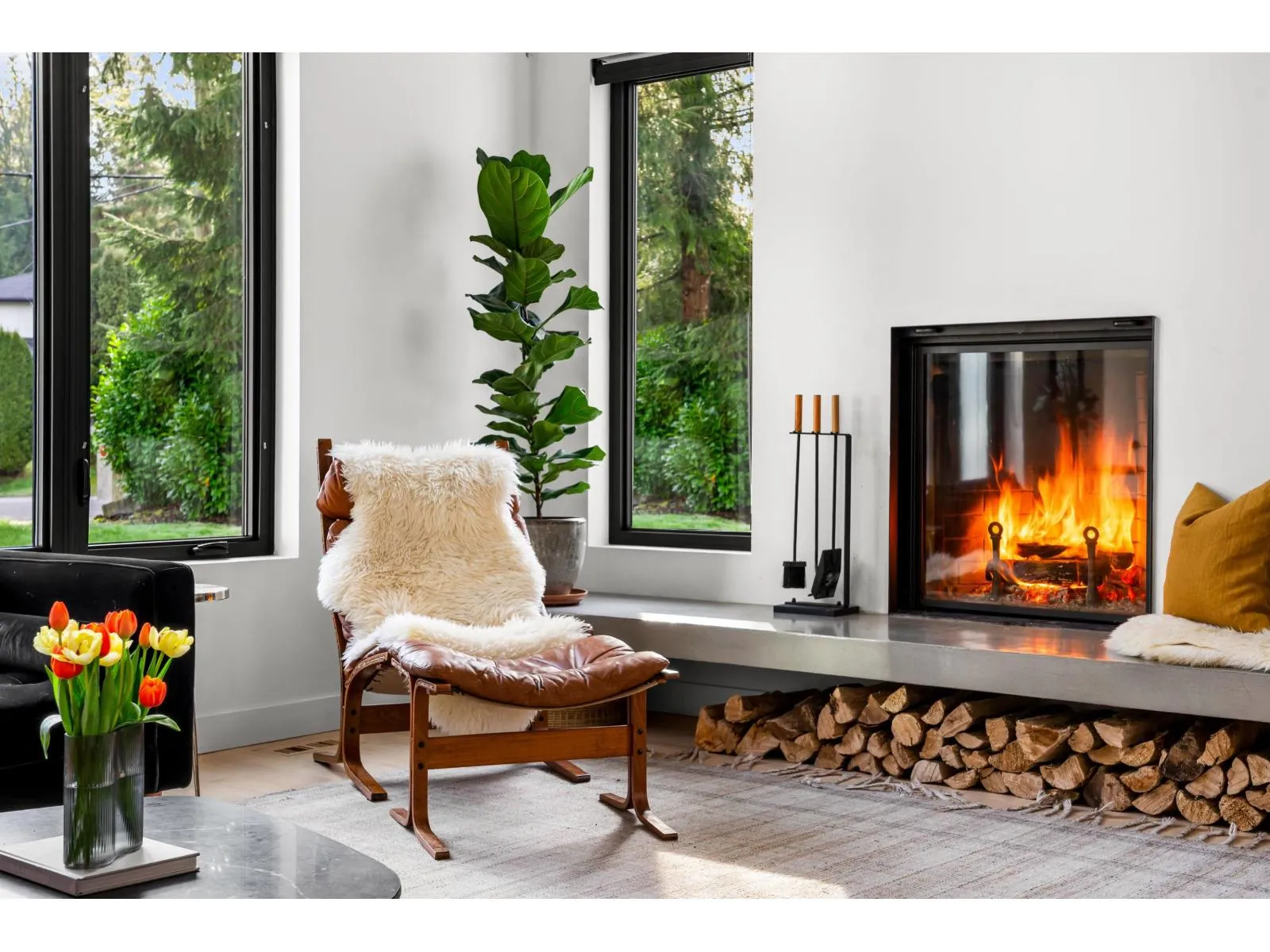 Set in the highly desirable Forest Knolls neighbourhood, this architect-designed home offers peaceful country privacy just minutes from Fort Langley with easy highway access. Natural light fills the home, highlighting maple hardwood floors, designer fixtures, and premium appliances including a Fisher & Paykel fridge, KitchenAid 36-inch dual-fuel range, and Miele dishwasher. The primary suite features a nearly 6-foot solid-surface soaker tub and sunset views through private backyard trees. A separate ground-level entrance offers flexible space for guests, family, or potential revenue. Professionally renovated in 2019 with an attached double garage, updated electrical and plumbing, 200-amp service, RV hookups, on-demand hot water, and a high-efficiency wood-burning fireplace. (id:27476)