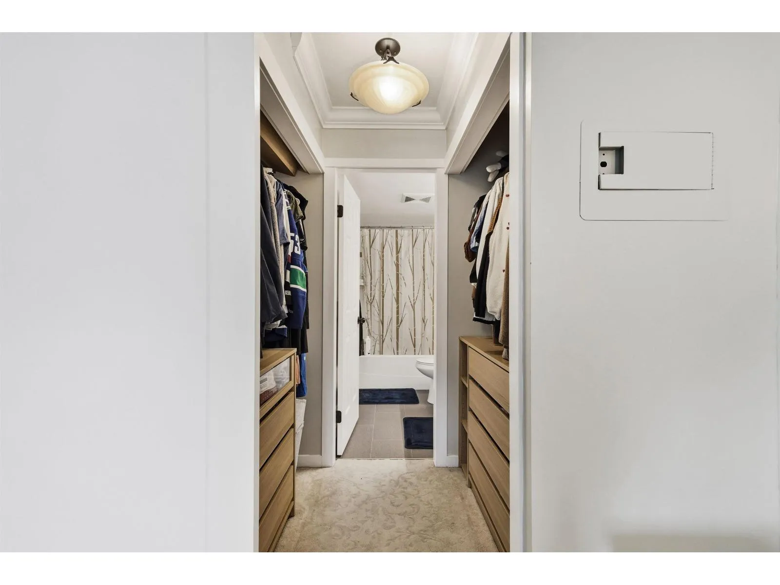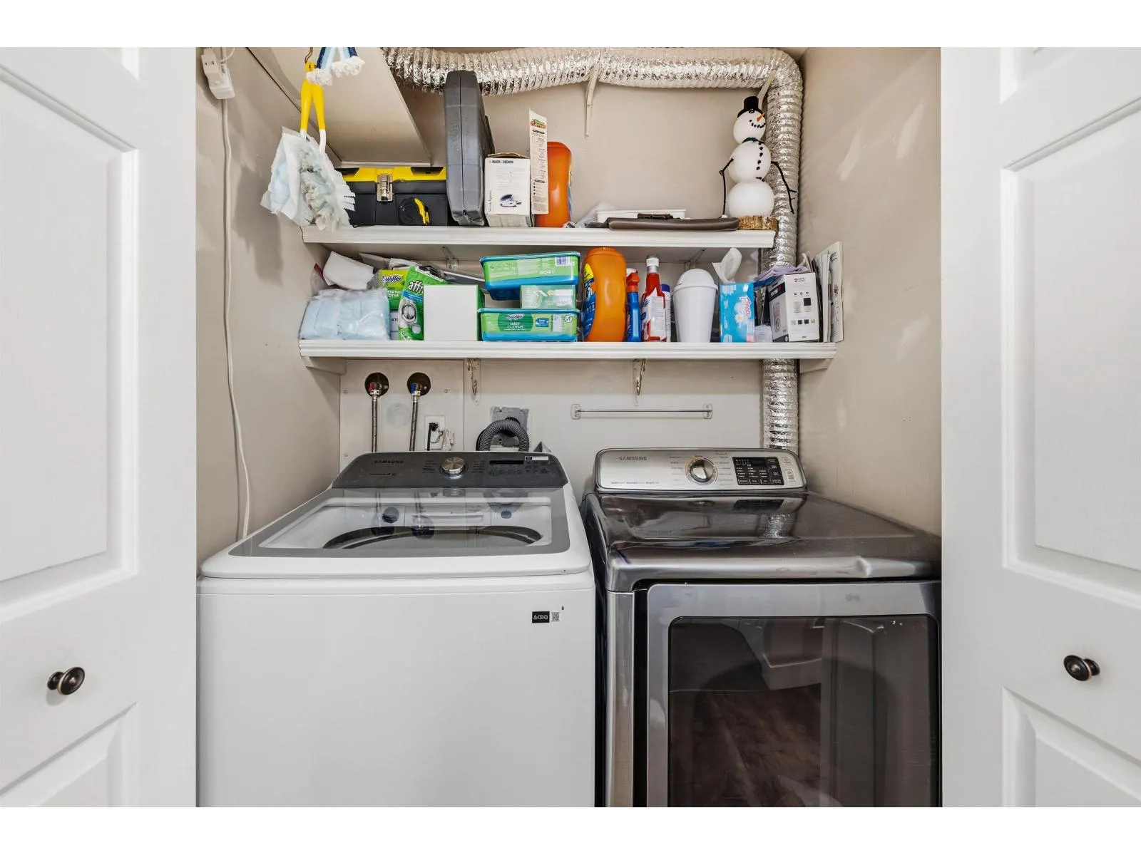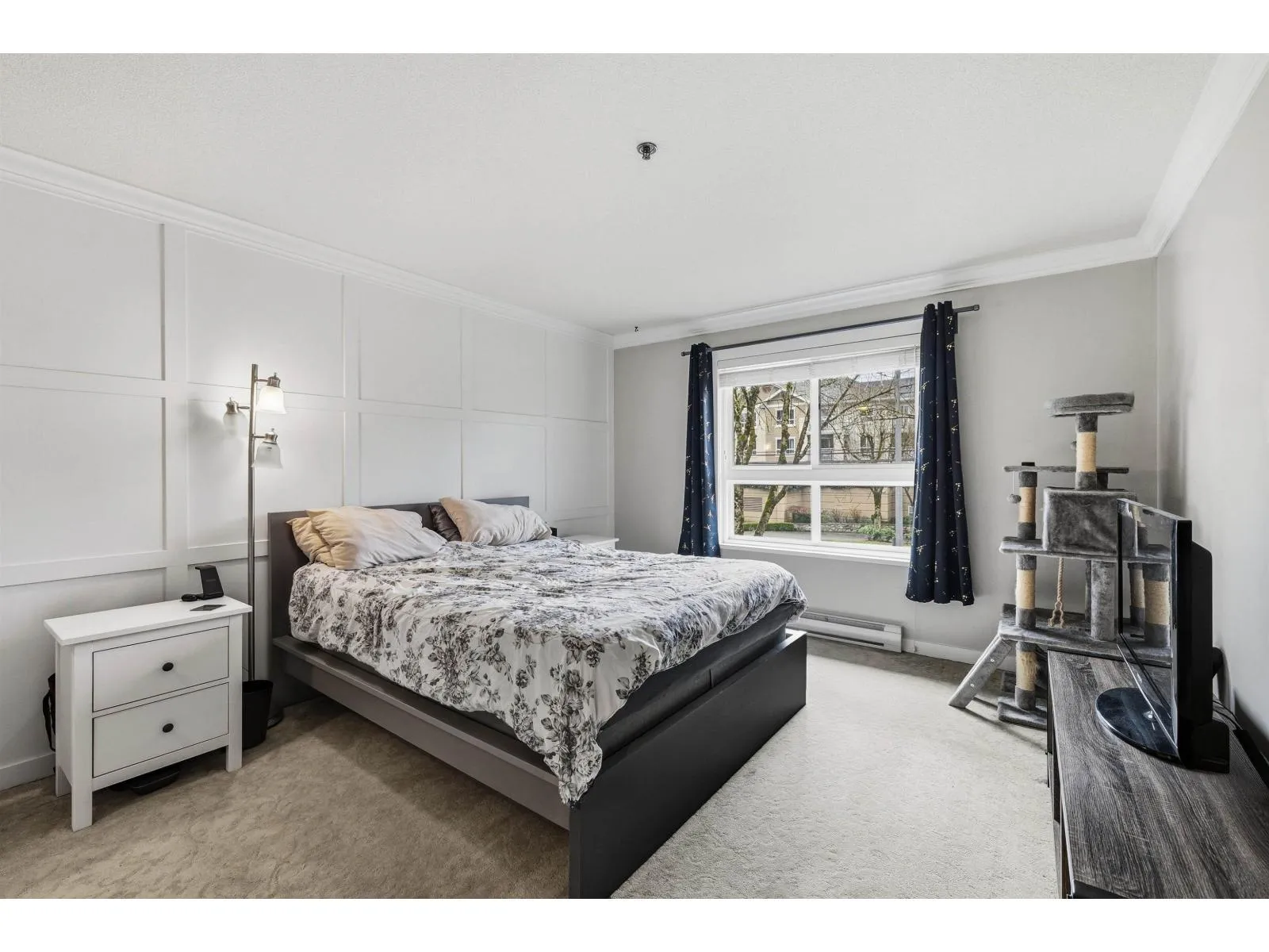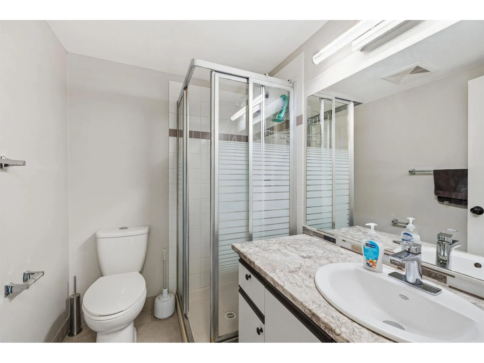Prime location! This beautifully updated 1,087 sq ft, 2 bed, 2 bath home is just steps from everything Langley has to offer. Restaurants, Willowbrook Mall, transit, and the future SkyTrain are all within two blocks of your front door. A welcoming foyer opens into an inviting living area highlighted by a striking stone fireplace. Extensively renovated in 2020, the home features laminate flooring, designer paint colours, an updated kitchen, and elegant crown mouldings throughout. The generous primary bedroom boasts a feature wall, barn door to walk-through closet leading to ensuite. Relax and unwind on the south-facing covered patio, perfect for summer evenings. Complete with in-suite laundry, pet-friendly living, and two parking stalls, storage on the same floor. An exceptional opportunity! (id:27476)