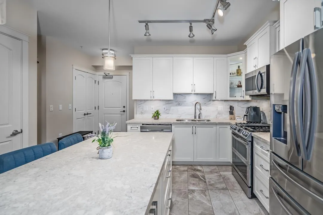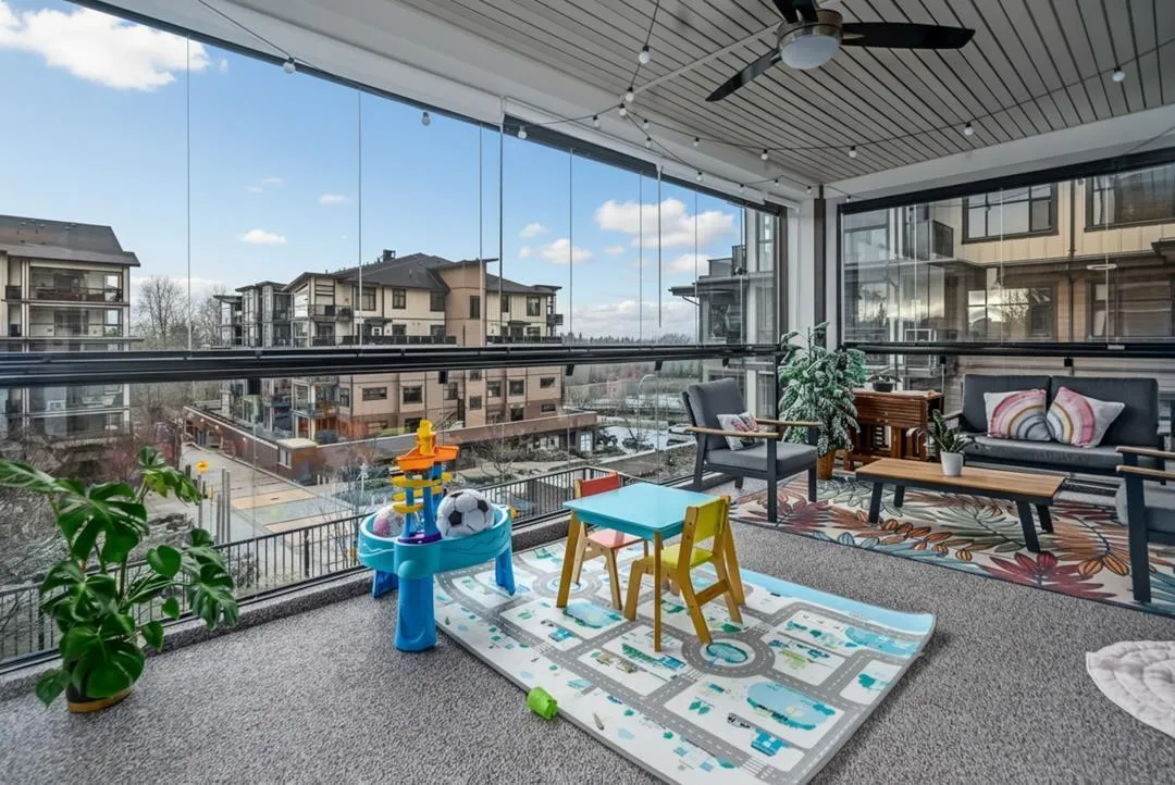YORKSON PARK CENTRAL! This luxurius 3 bed 2 bath 1118 sq.ft. plus 250 sq.ft. solarium/sundeck with collapsible glass door (total 1355 sq.ft). High end Samsung appliances (including 5 burner gas cooktop), stone counter tops,heated flooring & anti fog mirrorsin bathrooms, huge practical iland and lot of cabinet spacein the kitchen, solid wood closets and doors,durable laminate flooring. Safety deposit box in the unit, Energy efficient HEAT PUMP/AC in every room. END/CORNER unit with park & partial mountain view, quiter side of the building, Gas hookup for BBQ, secured 2 parking spots (P3-201 & 202) & storage locker. Carvolth Exchange & easy access to High Way 1. Sellers Motivated! Priced to sell quick! (id:27476)