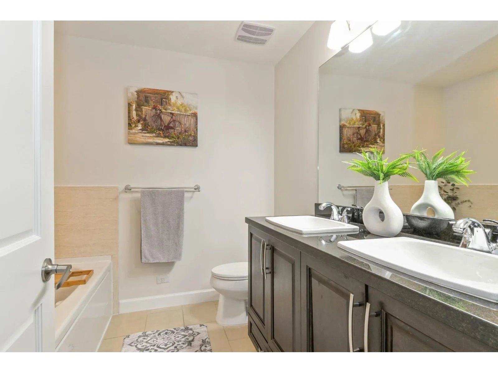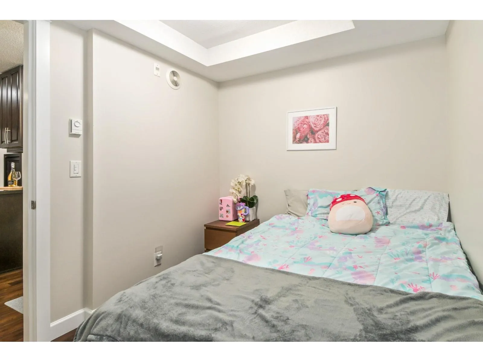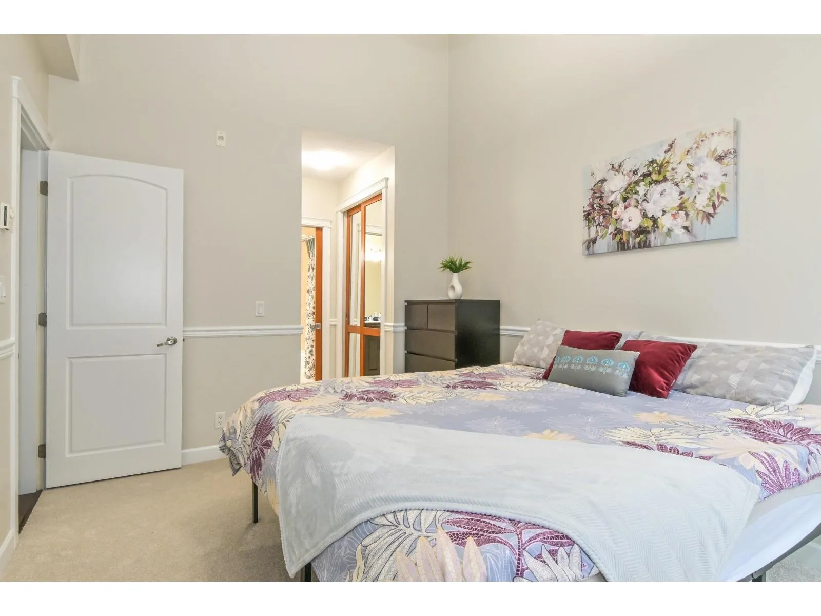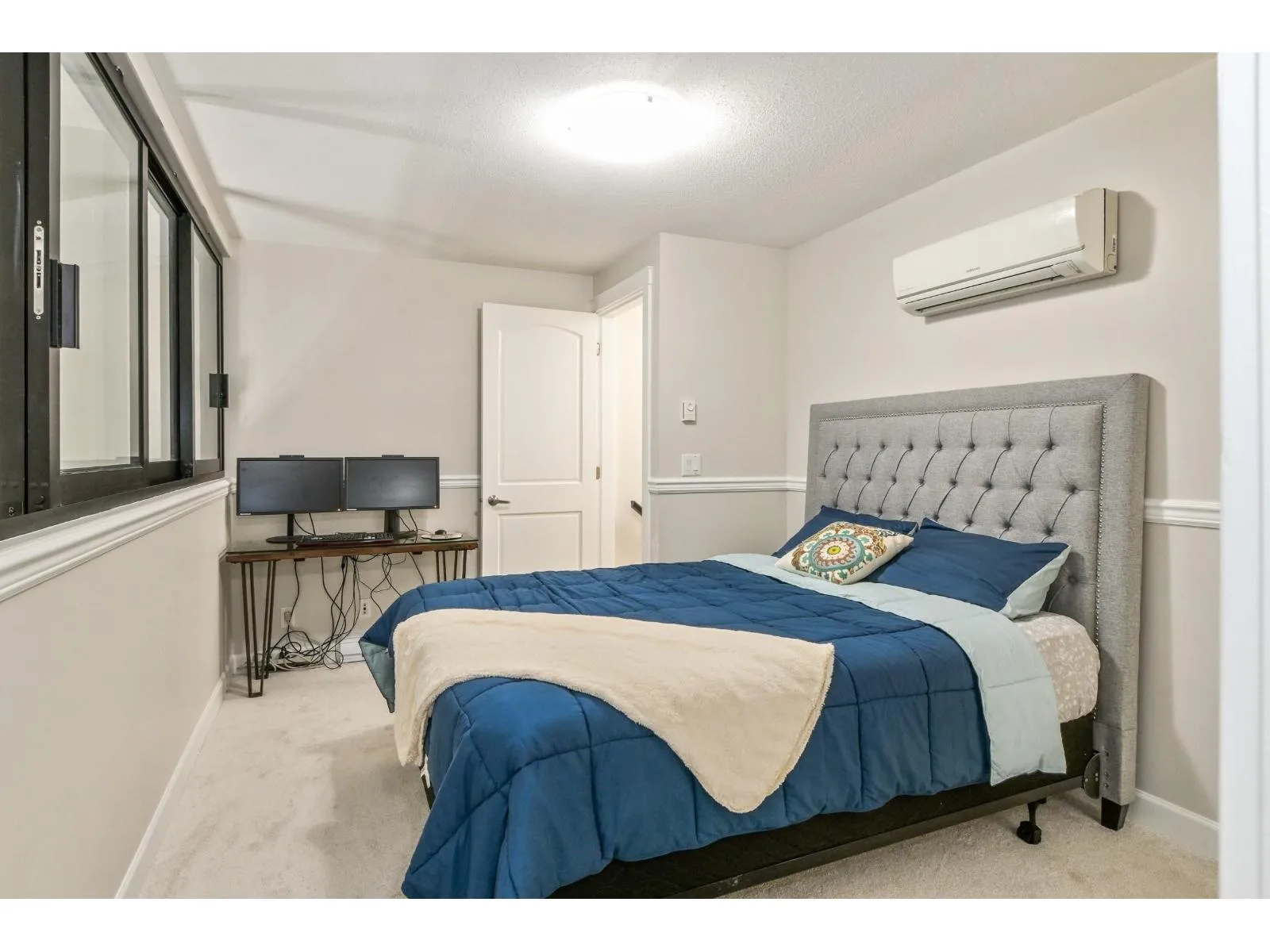 Top floor two-level junior 3 bedroom 2 bath offering townhouse style living. Features a large balcony with mountain views, granite counter tops, self closing cabinetry, new microwave and dishwasher, new carpets, and fresh paint throughout. A/C units in both primary bedrooms that provide move-in ready comfort. The upper level primary bedroom includes an ensuite with double sinks, soaker tub, walk in shower, heated floors, and a walk in closet with built in shelving, and in-suite storage. Includes two parking stalls and storage locker with electrical out for EV charging potential. The building amenities include a gym and a party room. (id:27476)