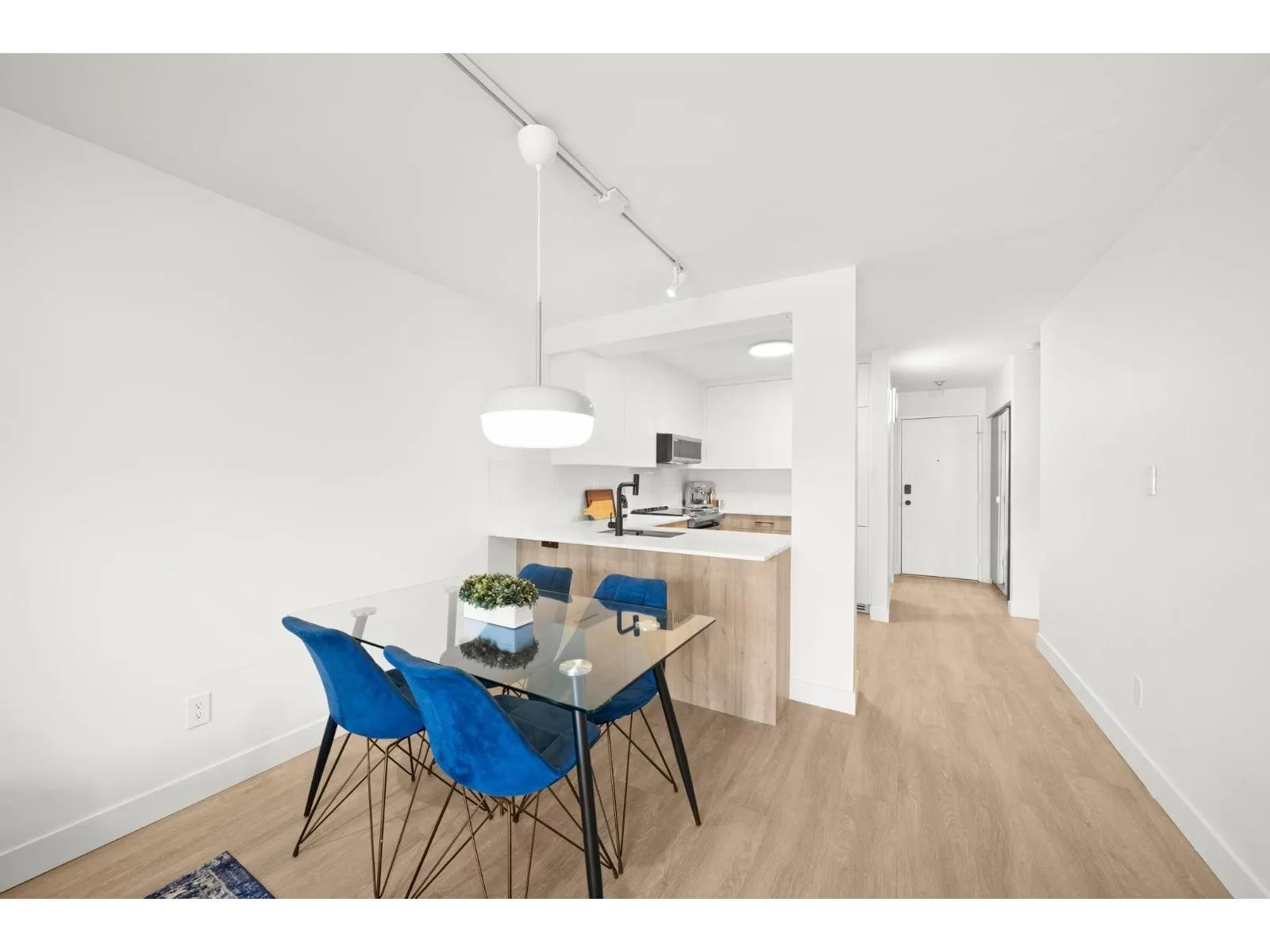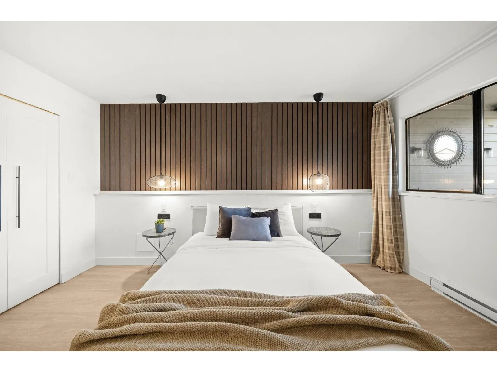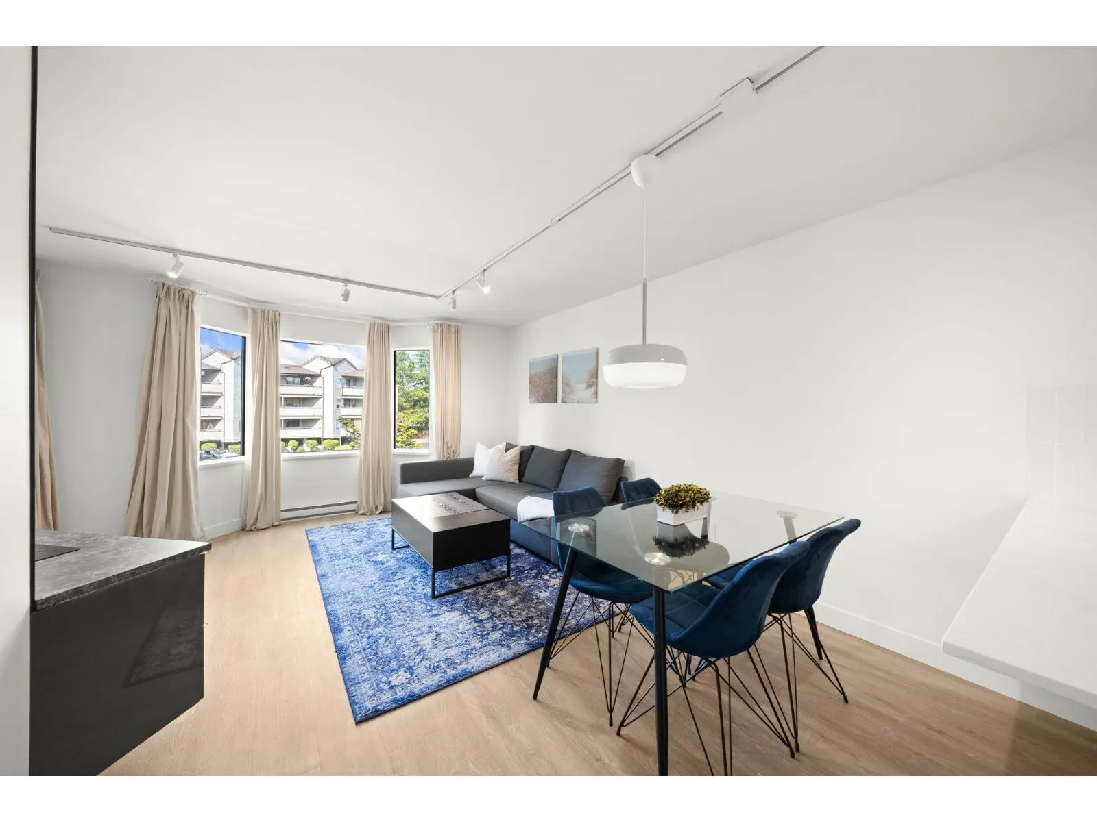 Thoughtfully and thoroughly renovated 1 bed + Den. Feels like a brand new home starting w/ the Open concept kitchen equipped w/new quartz counters, Custom cabinets, appliances, work station sink + integrated panel fridge! Spacious living room w/ beautiful vapour fireplace, built in cabinet, loads of natural light + space for dining area! New Vinyl plank flooring throughout + new front closet/bench! A small Den with storage cabinets and office space ready to use or customize for your needs. Large Bedroom with room for a king bed + a walk in closet! Fully re done bathroom w/ beautiful vanity, mirror cabinets + glass tub/shower. Quiet location on a dead end road. Central location just minutes to future skytrain, parks, walking trails, shopping,restaurants and more! Open Sunday Feb 15th 2-4PM (id:27476)