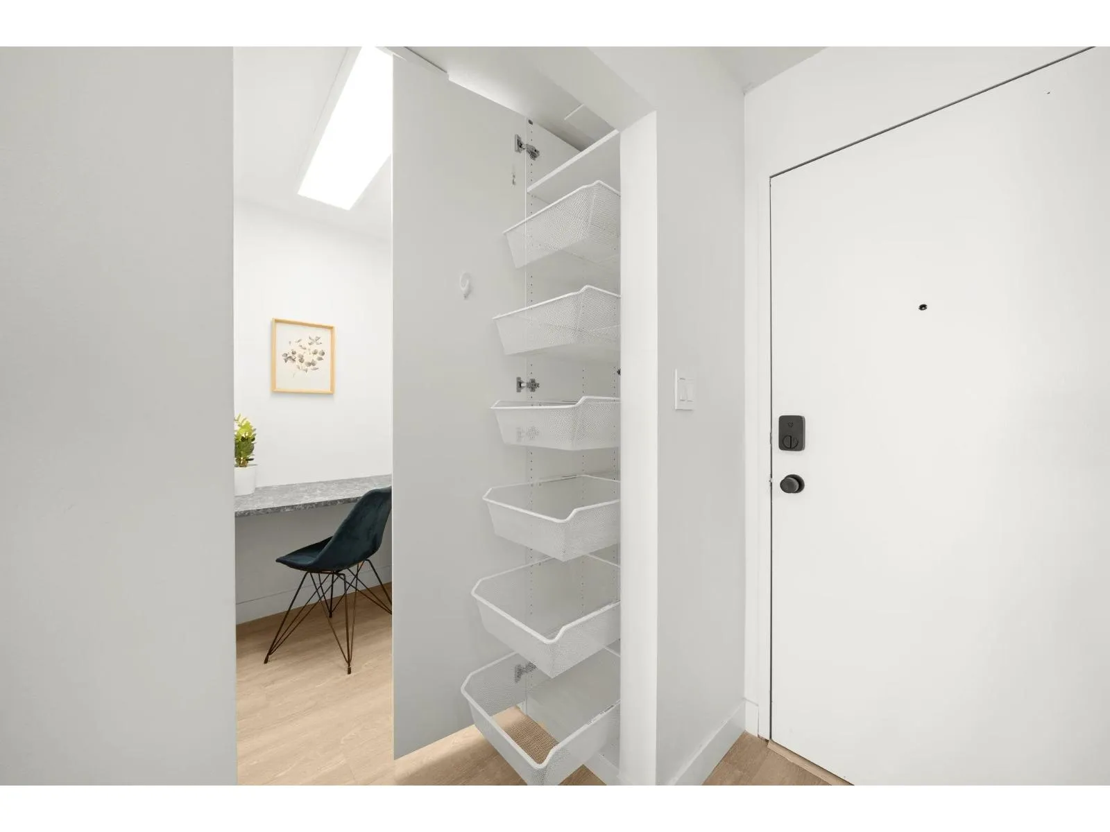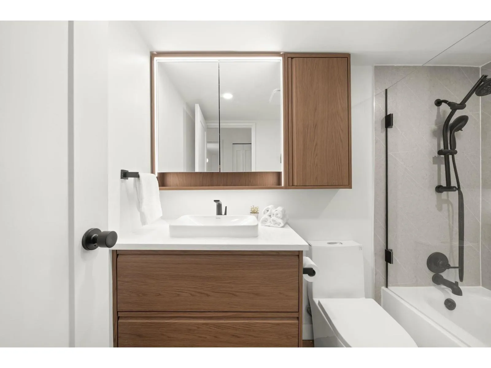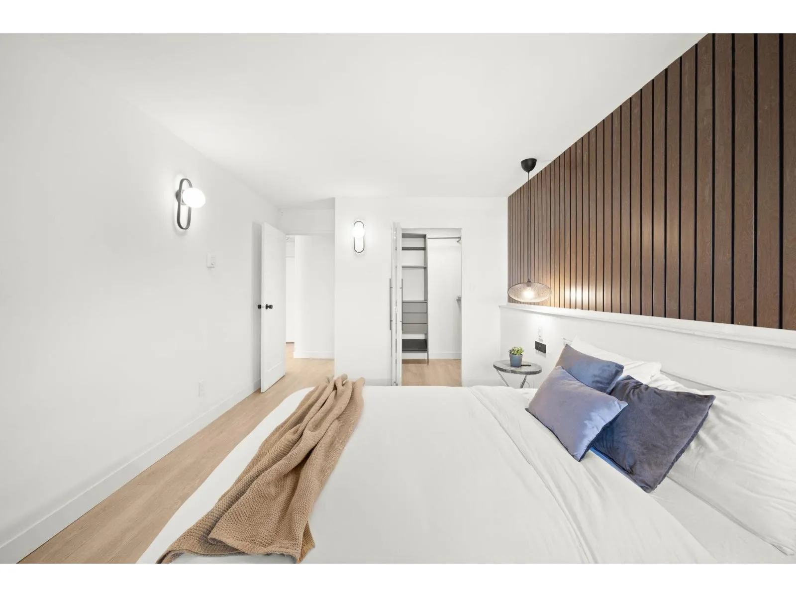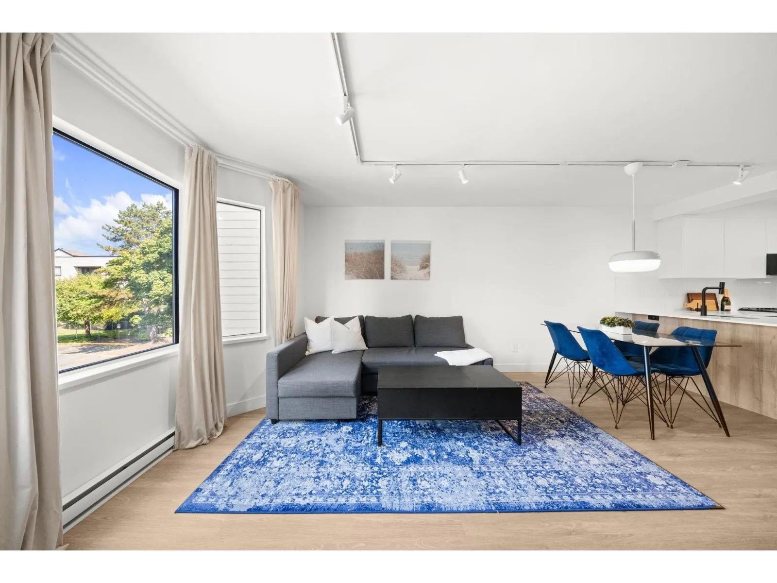 Thoughtfully and thoroughly renovated 1 bed + Den. Feels like a brand new home starting w/ the Open concept kitchen equipped w/new quartz counters, Custom cabinets, appliances, work station sink + integrated panel fridge! Spacious living room w/ beautiful vapour fireplace, built in cabinet, loads of natural light + space for dining area! New Vinyl plank flooring throughout + new front closet/bench! A small Den with storage cabinets and office space ready to use or customize for your needs. Large Bedroom with room for a king bed + a walk in closet! Fully re done bathroom w/ beautiful vanity, mirror cabinets + glass tub/shower. Quiet location on a dead end road. Central location just minutes to future skytrain, parks, walking trails, shopping,restaurants and more! Open Sunday Feb 15th 2-4PM (id:27476)