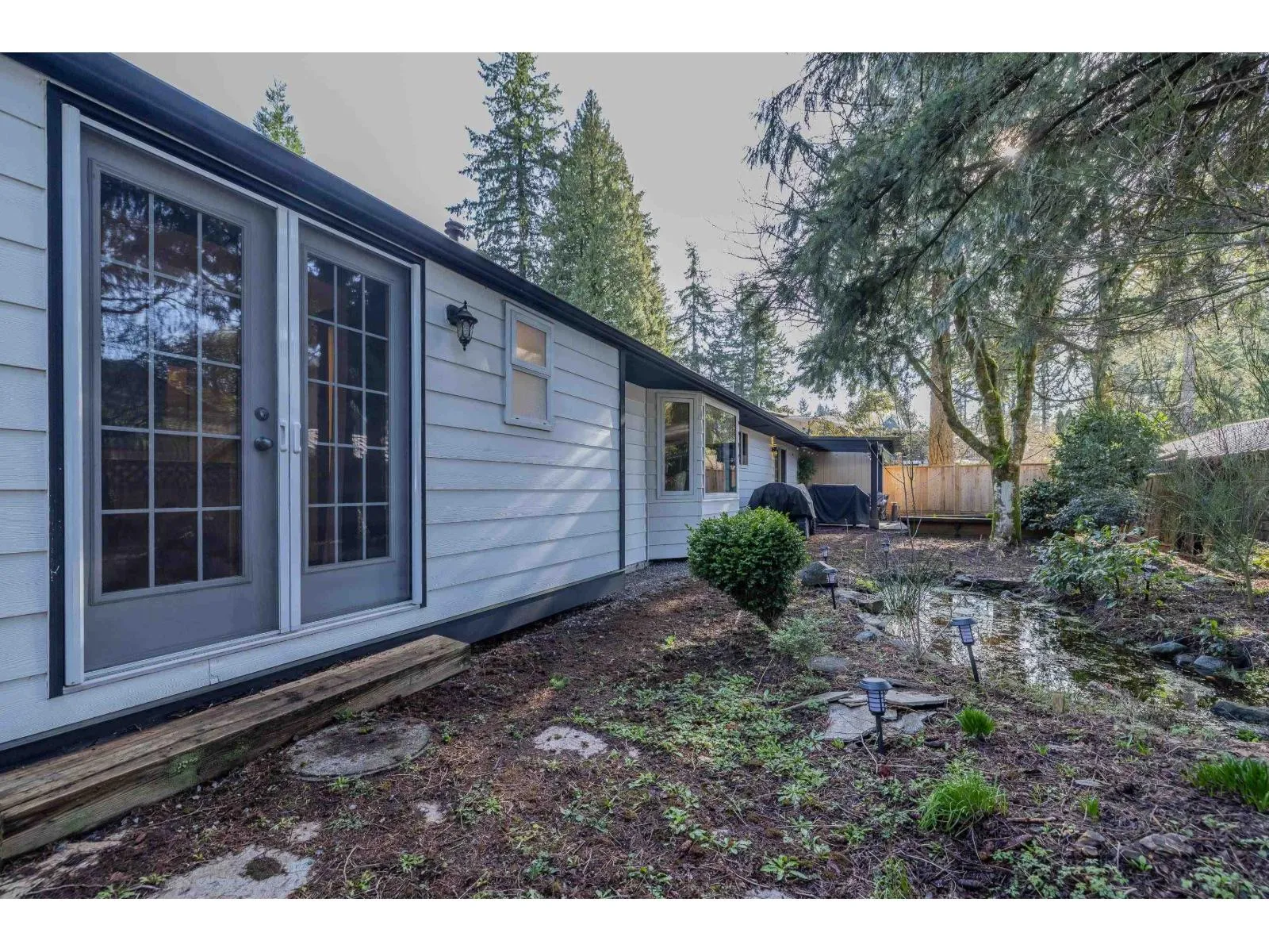 Beautifully maintained rancher in sought-after Mason Heights, Langley City. This 3 Bedroom, 2 Full Bath home features a signature sunken living room with gas fireplace and Douglas fir hardwood flooring in select areas. Set on a 8,712 sq ft privately fenced corner lot, the kitchen with modern appliances opens to a covered patio overlooking the spacious yard and serene pond, ideal for relaxing or entertaining. Double car garage with 220-volt power plus large concrete driveway offers ample parking, including RV space. Conveniently located near shopping, parks, schools and recreation. (id:27476)