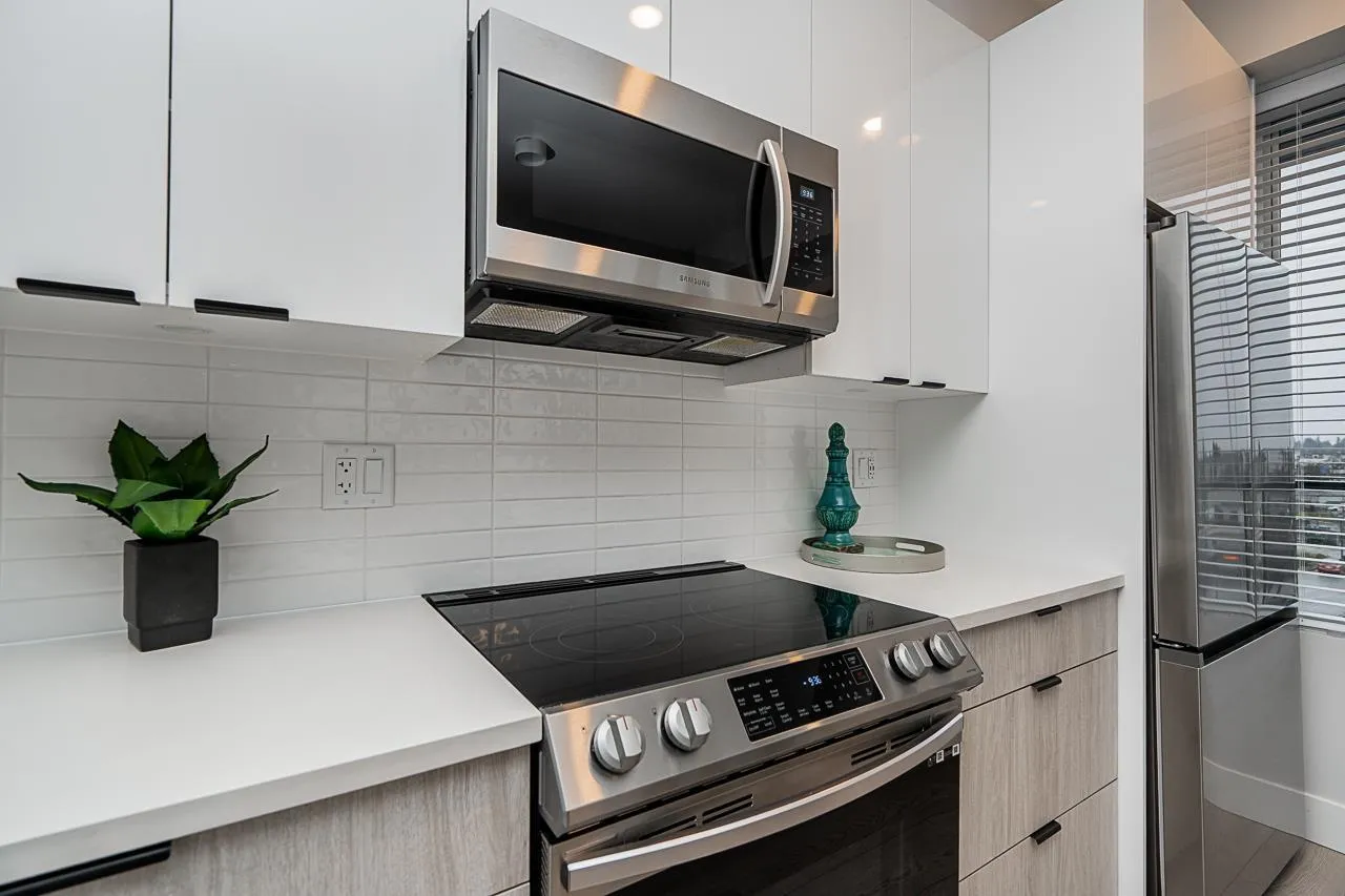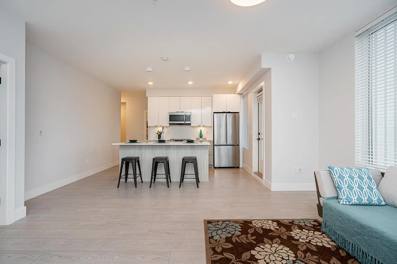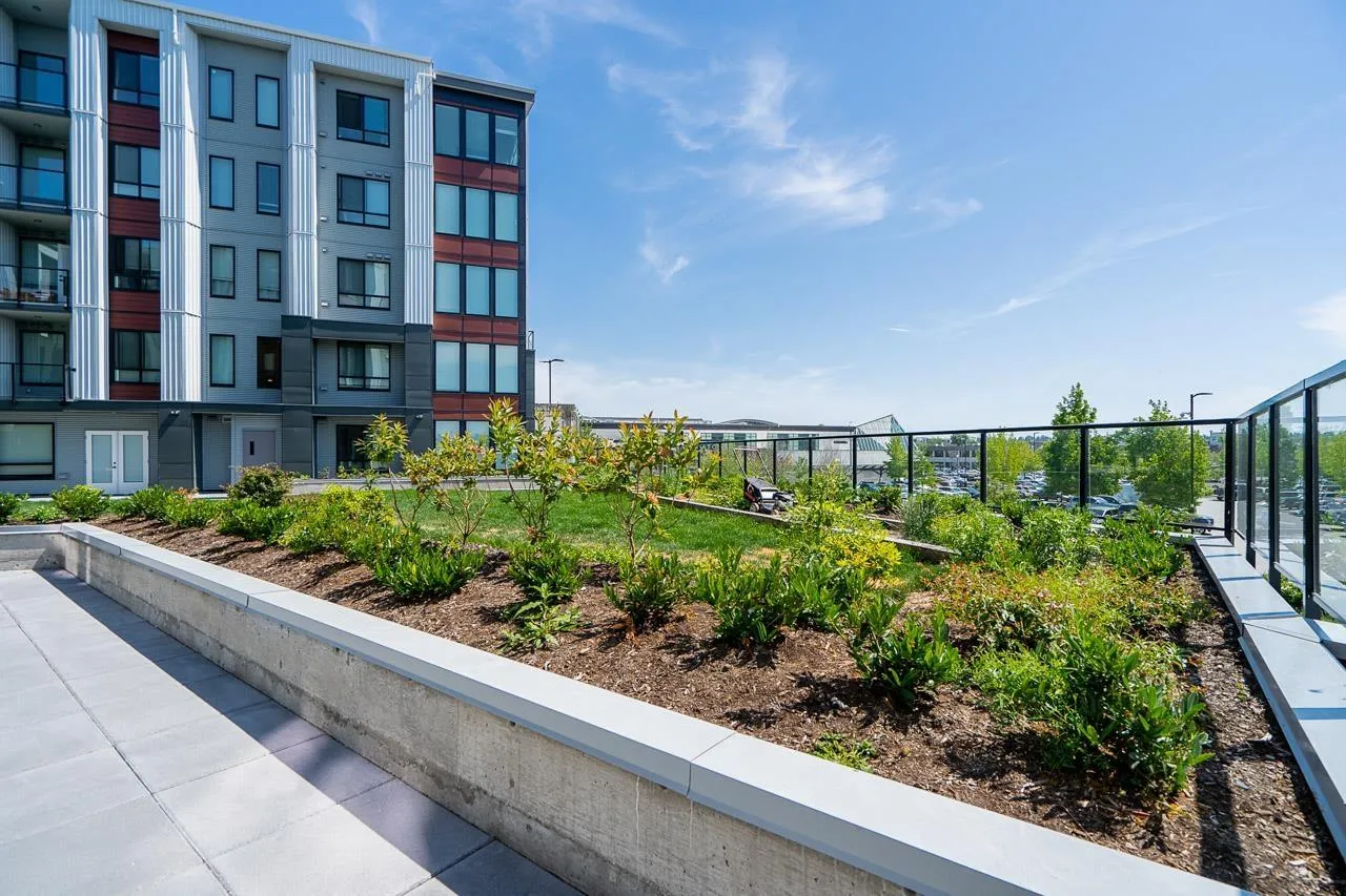 Prime location and immaculate condition! This bright 2-bedroom, 2-bathroom corner unit at Genesis is a commuter's dream. The home features extra windows for natural light, a spacious kitchen with S/S appliances, large island/eating bar, and a functional dining/desk nook. Bedrooms are well-sized with ample storage. Enjoy the gym, amenity room, and lush garden area complete with a putting green. Unbeatable walkability to shops, breweries, and restaurants. With the Skytrain expansion arriving soon, this is a fantastic opportunity to buy into a growing neighborhood. Comes with 2 parking spots and a storage locker. Your strata fees include hot water. (id:27476)