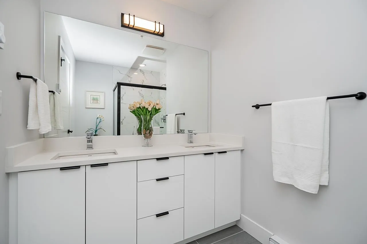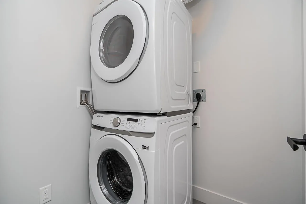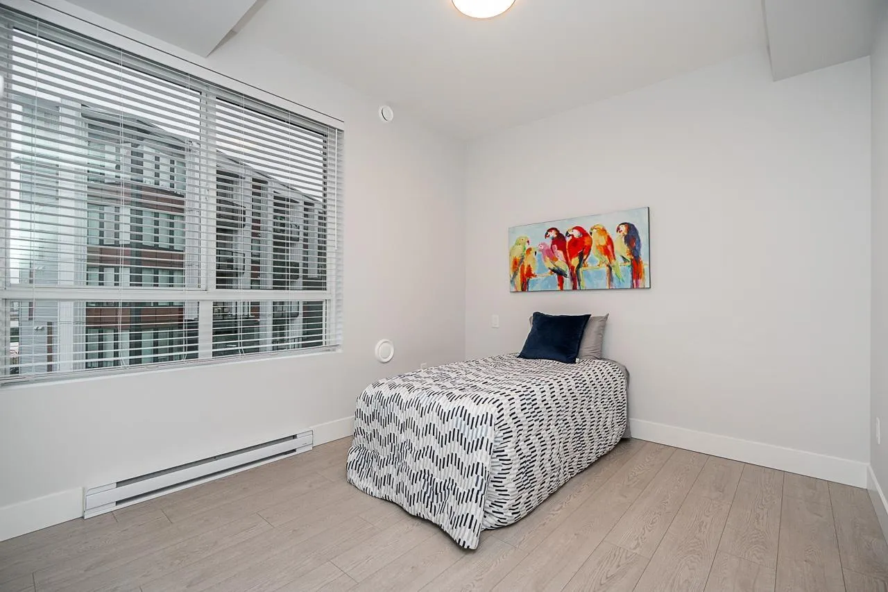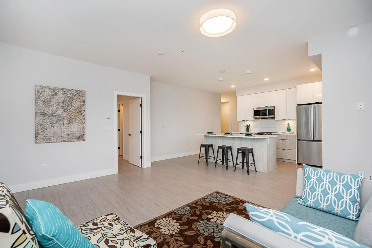 Prime location and immaculate condition! This bright 2-bedroom, 2-bathroom corner unit at Genesis is a commuter's dream. The home features extra windows for natural light, a spacious kitchen with S/S appliances, large island/eating bar, and a functional dining/desk nook. Bedrooms are well-sized with ample storage. Enjoy the gym, amenity room, and lush garden area complete with a putting green. Unbeatable walkability to shops, breweries, and restaurants. With the Skytrain expansion arriving soon, this is a fantastic opportunity to buy into a growing neighborhood. Comes with 2 parking spots and a storage locker. Your strata fees include hot water. (id:27476)